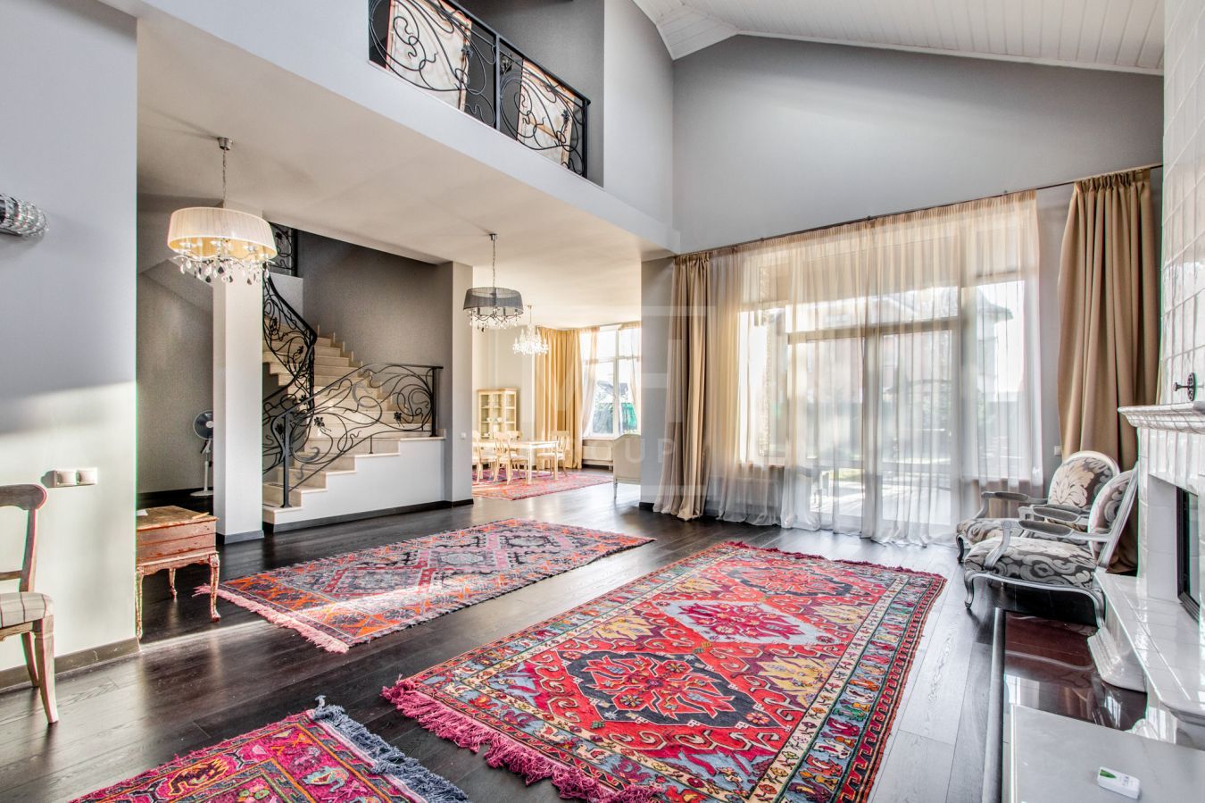 Этаж 1: Холл, гостиная с камином, кухня-столовая, гостевая спальня, с/у, гараж на 2 машины, прачечная, котельная.