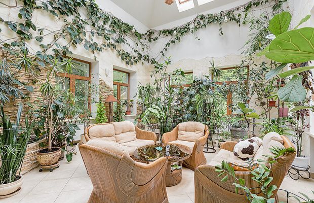 Этаж 1: холл, с/у, гардероб, кухня, кладовая, столовая, гостиная, кабинет, зимний сад, терраса, лифт