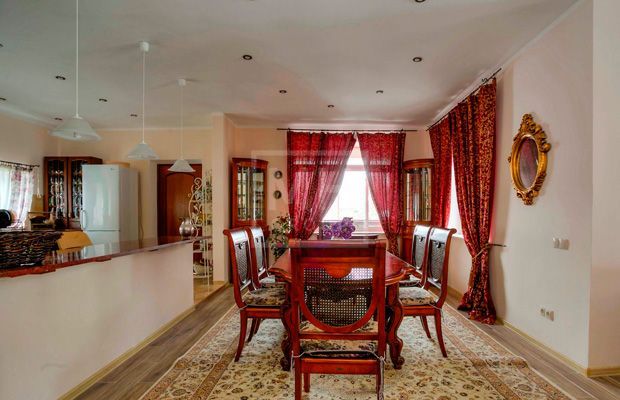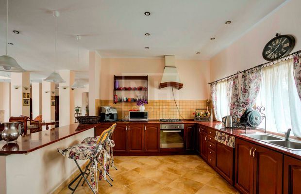 Этаж 1: Гостиная с камином, кухня, столовая, гостевой с/у, спальня, кладовая.