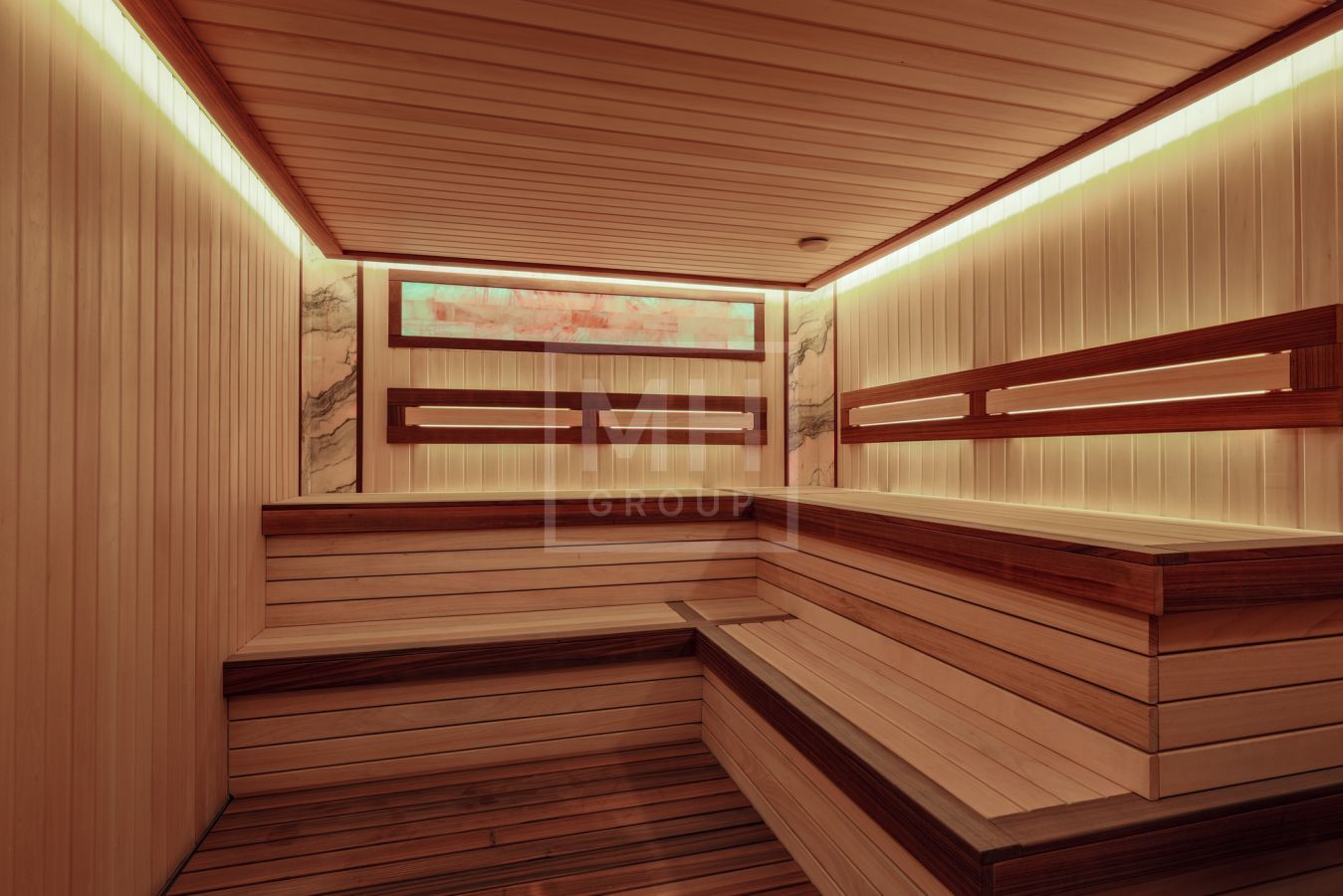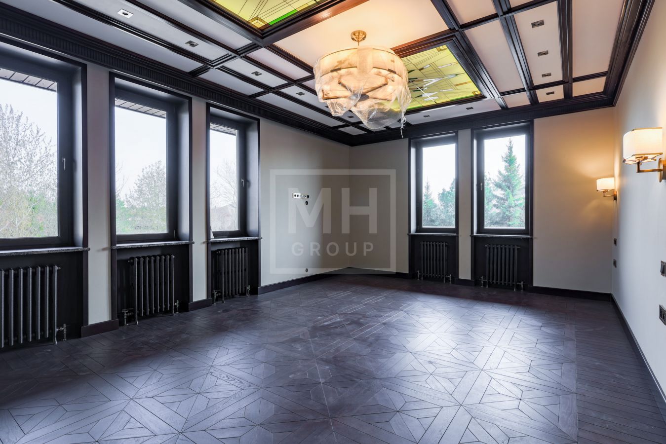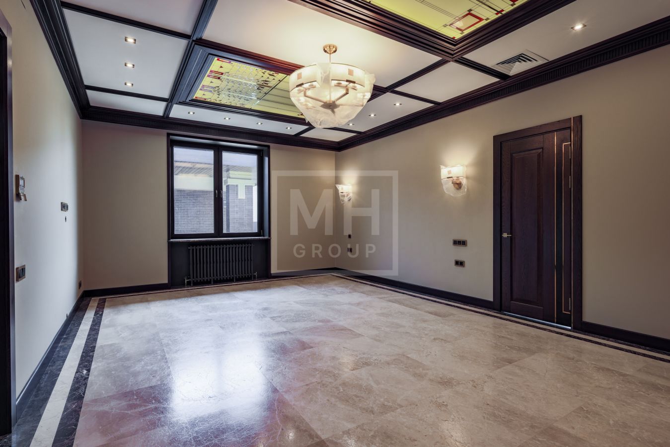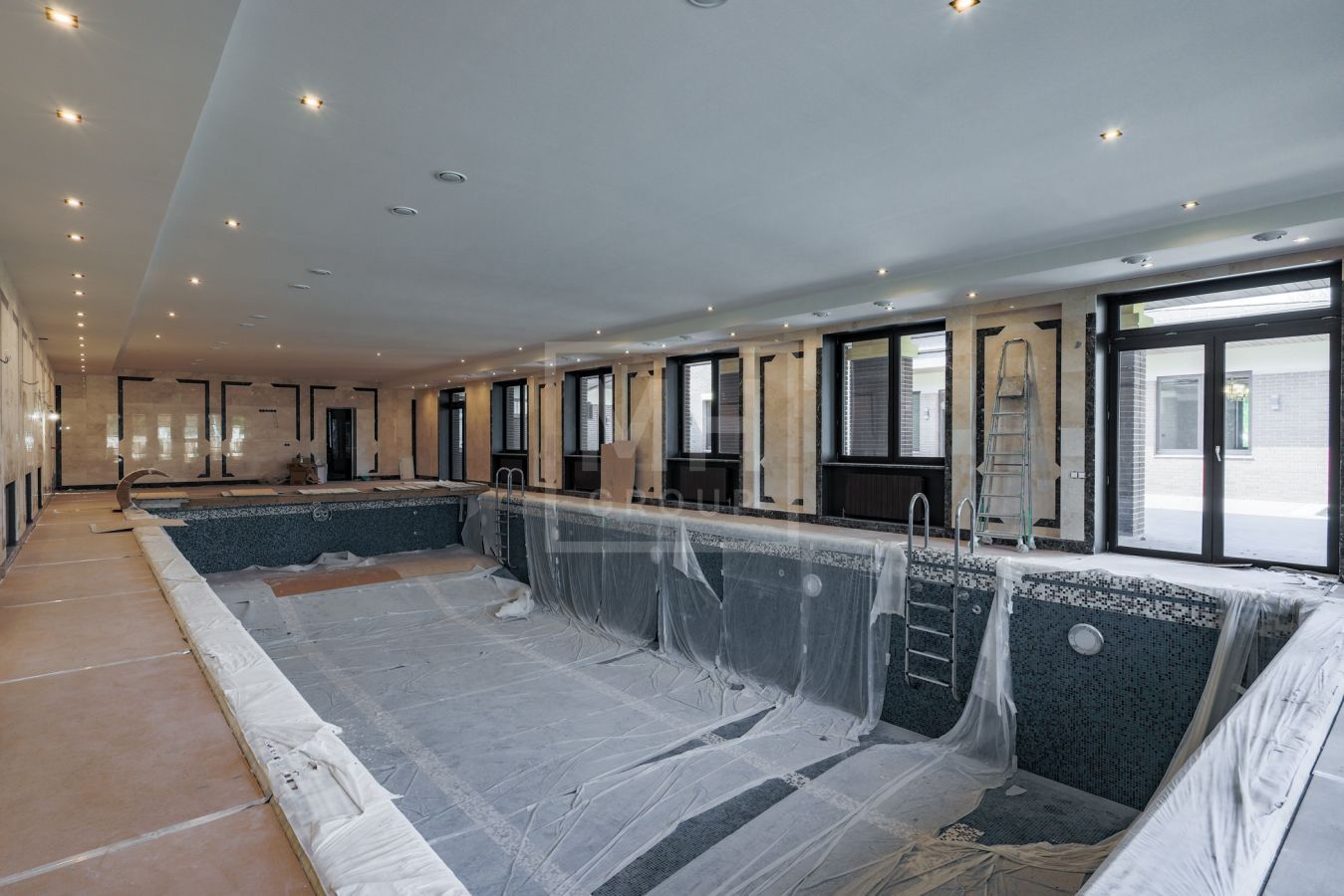 Этаж 1: прихожая, с/у, гардеробная, гостиная с камином, кухня, столовая, выход на террасу с джакузи и зоной барбекю, библиотека, гостевая спальня с с/у и гостиной, переход в спа-зону: комната отдыха, с/у, бассейн (15х6м), выход на террасу, сауна, хамам, купель;