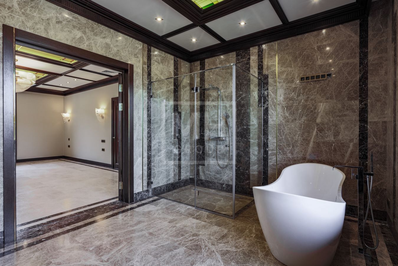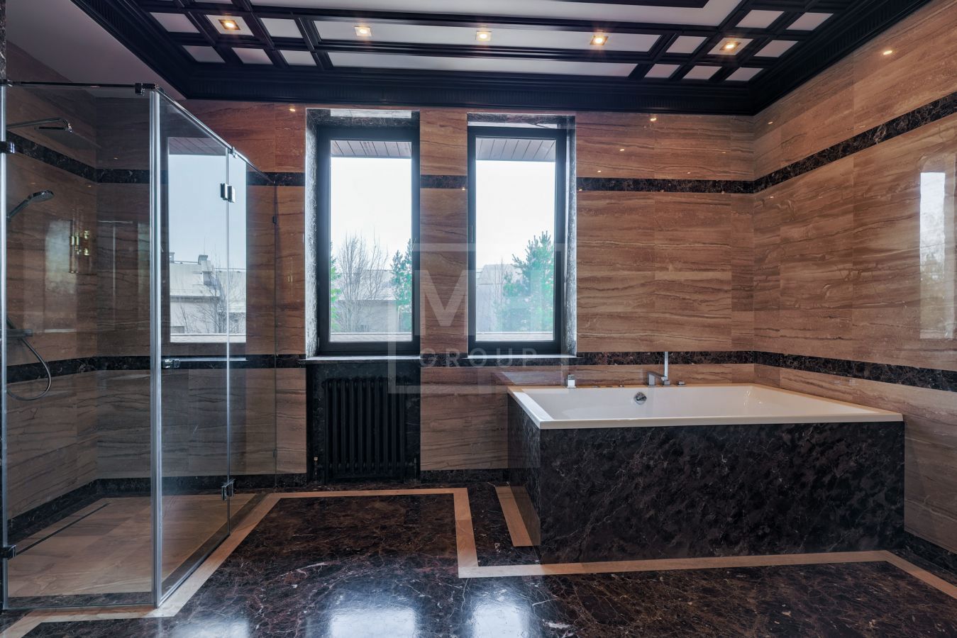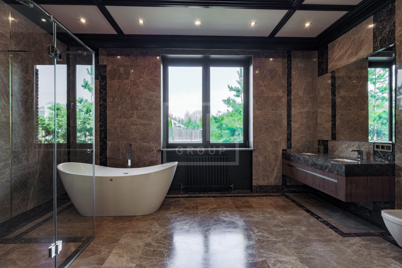 Дом строился "для себя", в отделке интерьеров используются качественные и натуральные материалы (мрамор, массив дерева, мозаика, дорогие чугунные батареи и др.).