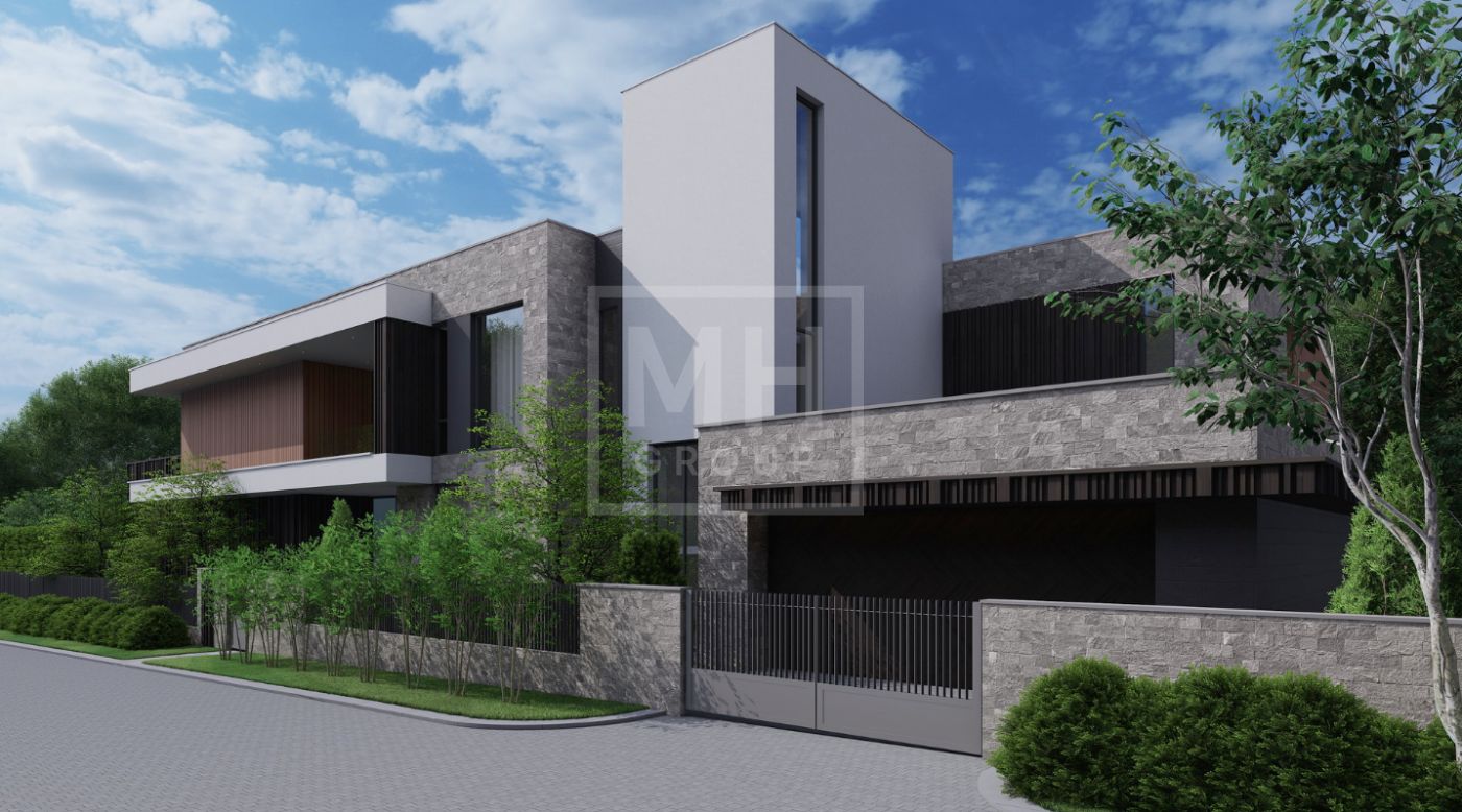 Этаж 1: Прихожая, гардеробная, кухня, кладовая, столовая, гостиная, кабинет, с/у, спальня с с/у, блок персонала, гараж