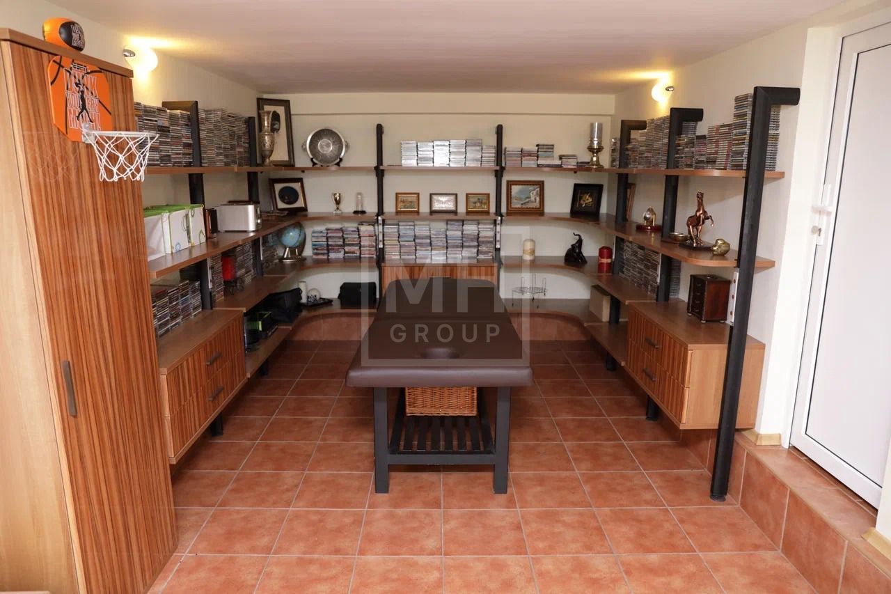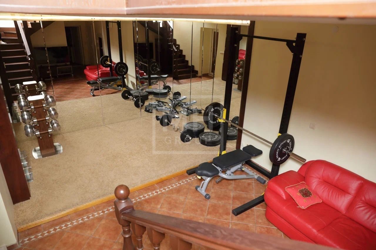 Цоколь: SPA-зона (бассейн с противотоком, сауна), тренажерный зал, массажный кабинет, с/у, постирочная, винный погреб, котельная, мастерская.