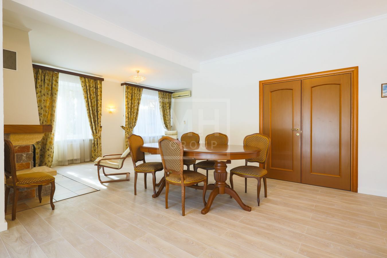 Этаж 1: Прихожая, гардеробная, спальня, гостиная с камином, гостевая спальня, гостевой с/у, кухня, столовая, выход на летнее патио