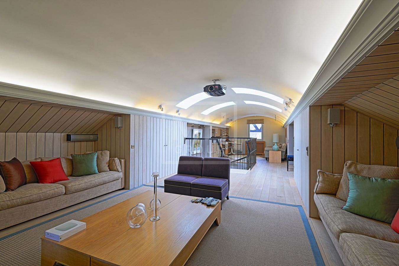 Мансардный этаж — это универсальное пространство площадью около 60 квадратных метров. Высота потолков позволяет свободно передвигаться по всей площади. Здесь можно обустроить игровую комнату, домашний кинотеатр, студию для занятий творчеством или гостевое помещение. На этом уровне также предусмотрен санузел и система вентиляции, обеспечивающая постоянный приток свежего воздуха.
