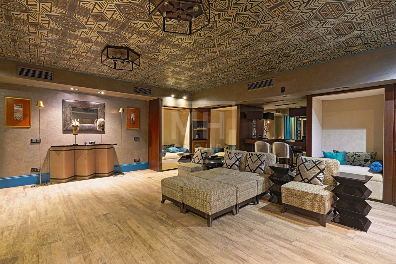 Отдельно стоит отметить столовую зону с выходом на просторную террасу — идеальное место для завтраков под открытым небом, вечерних ужинов при свечах или отдыха с чашкой кофе в лучах утреннего солнца. Терраса выполнена из высококачественной древесины, устойчивой к перепадам температур и влажности, и дополнена стильными светильниками, создающими уютную атмосферу в вечернее время.