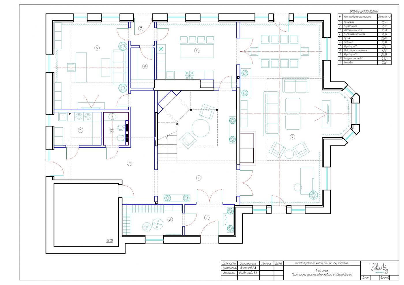Этаж 1: Холл, прихожая, гардеробная, гостиная-каминная, кухня-столовая, кабинет, с/у, постирочная, бойлерная, терраса