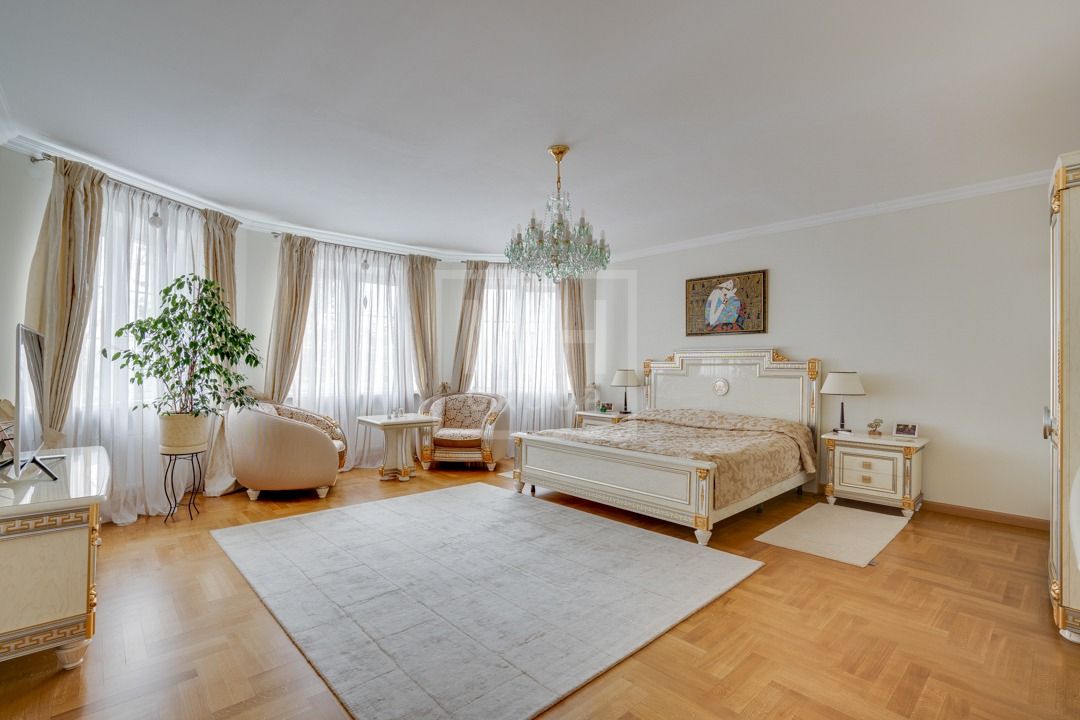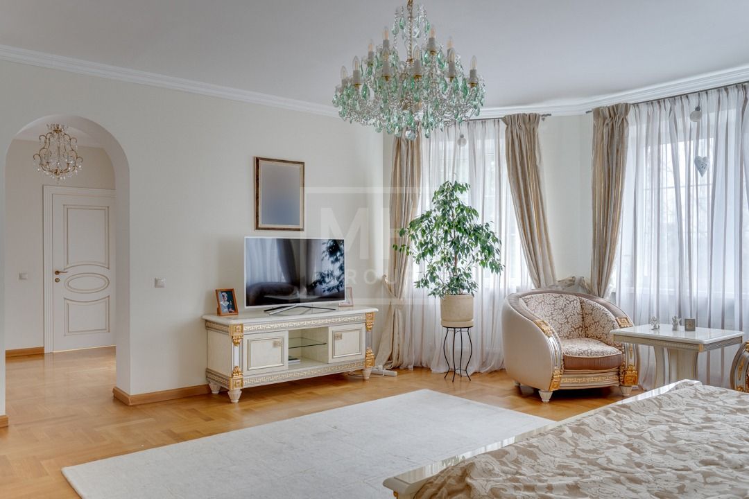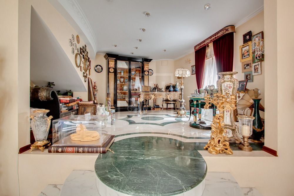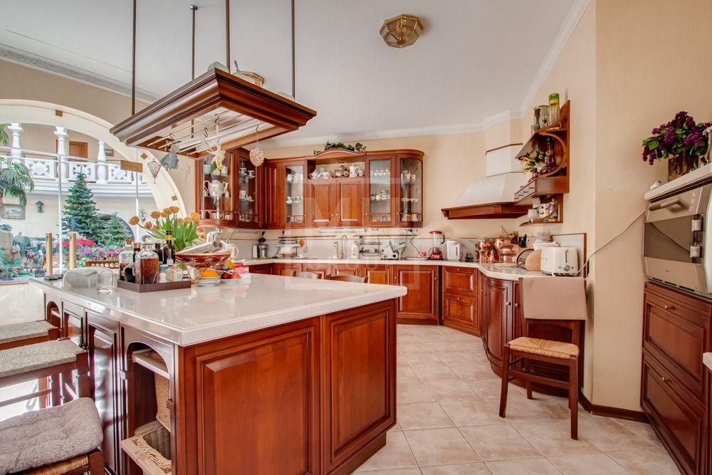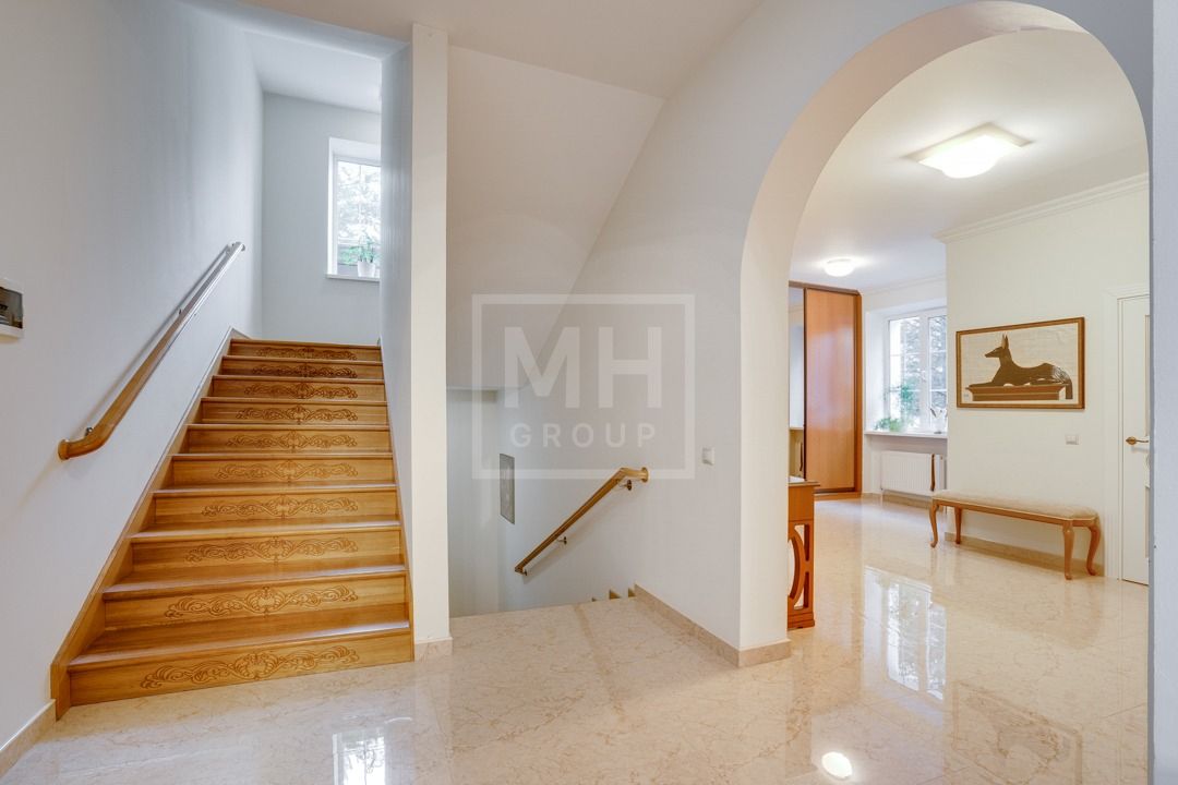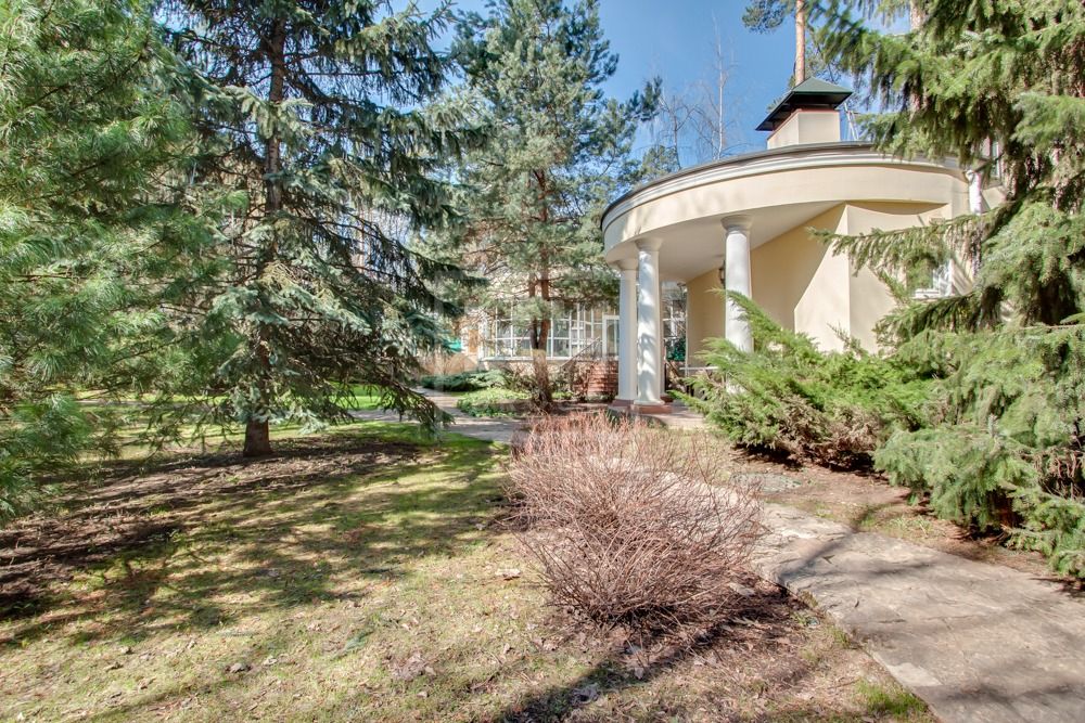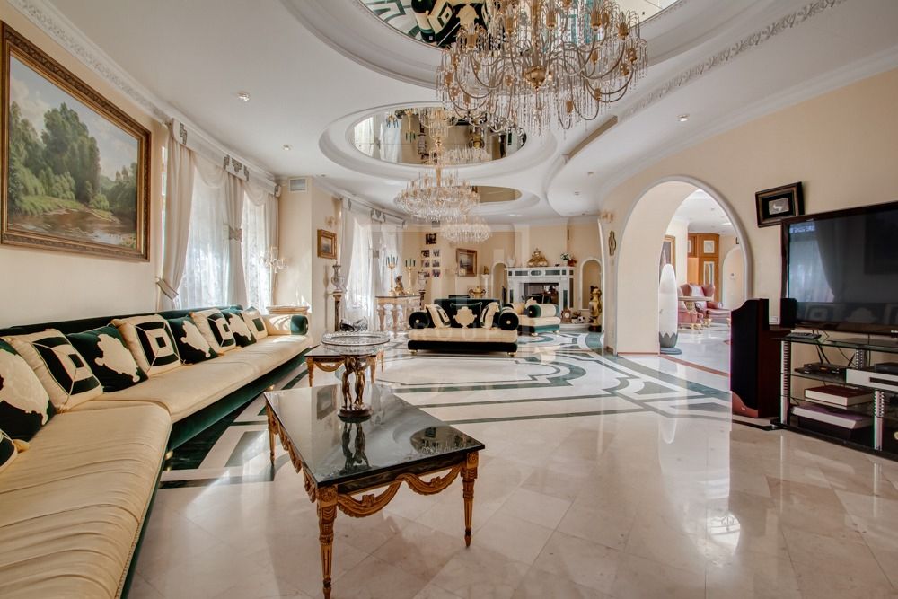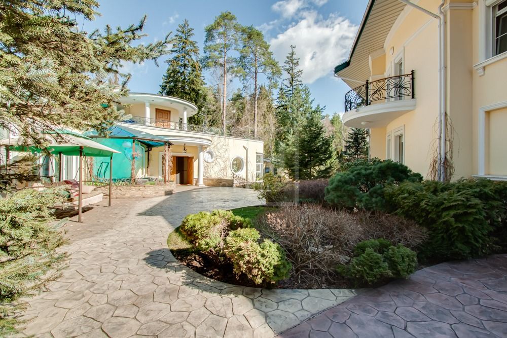 Рублево-Успенское шоссе, 9 км.от МКАД. КП Жуковка-3 Четырёхуровневый загородный особняк площадью 1352,3 кв. м.Дом построен по эксклюзивному индивидуальному проекту, расположенный на великолепном лесном участке 41,4З сотки, с дорогим ландшафтным дизайном и хвойными многолетними деревьями.