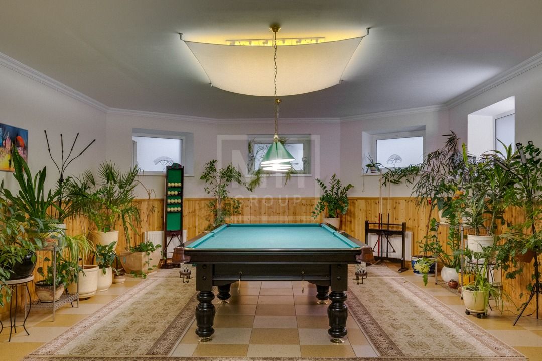Цоколь: домашний кинотеатр, бильярдная с камином, винный погреб, холодная комната, зона отдыха с барной стойкой, 1 санузел, холодная комната, вентиляционная, лифтовая, щитовая и 3 кладовые комнаты;