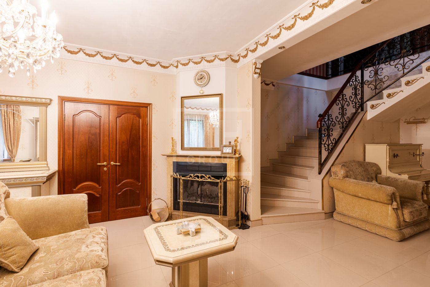 Трех-уровневый дом на Рублево-Успенском ш., 25 км от Москвы, площадью 600 кв м с отделкой под ключ, полностью меблирован, на участке 15 соток - готов к заселению. Планировка дома: кухня, гостиная c камином, домашний кинотеатр, 6 спален, 4 сан. узла, сауна, а также пристройка с отделкой под ключ площадью 120 кв. м, где установлена чаша под бассейн 15кв. м и проложены все коммуникации, которая при желании может использоваться как бассейн или зимний сад.В строительстве и внутренней отделке дома использовались высококачественные материалы из камня и дерева (толщина кирпичных стен 50см). На третьем этаже бильярдная, бар, кальянная, с/у, игровая зона, помещение свободного назначения.