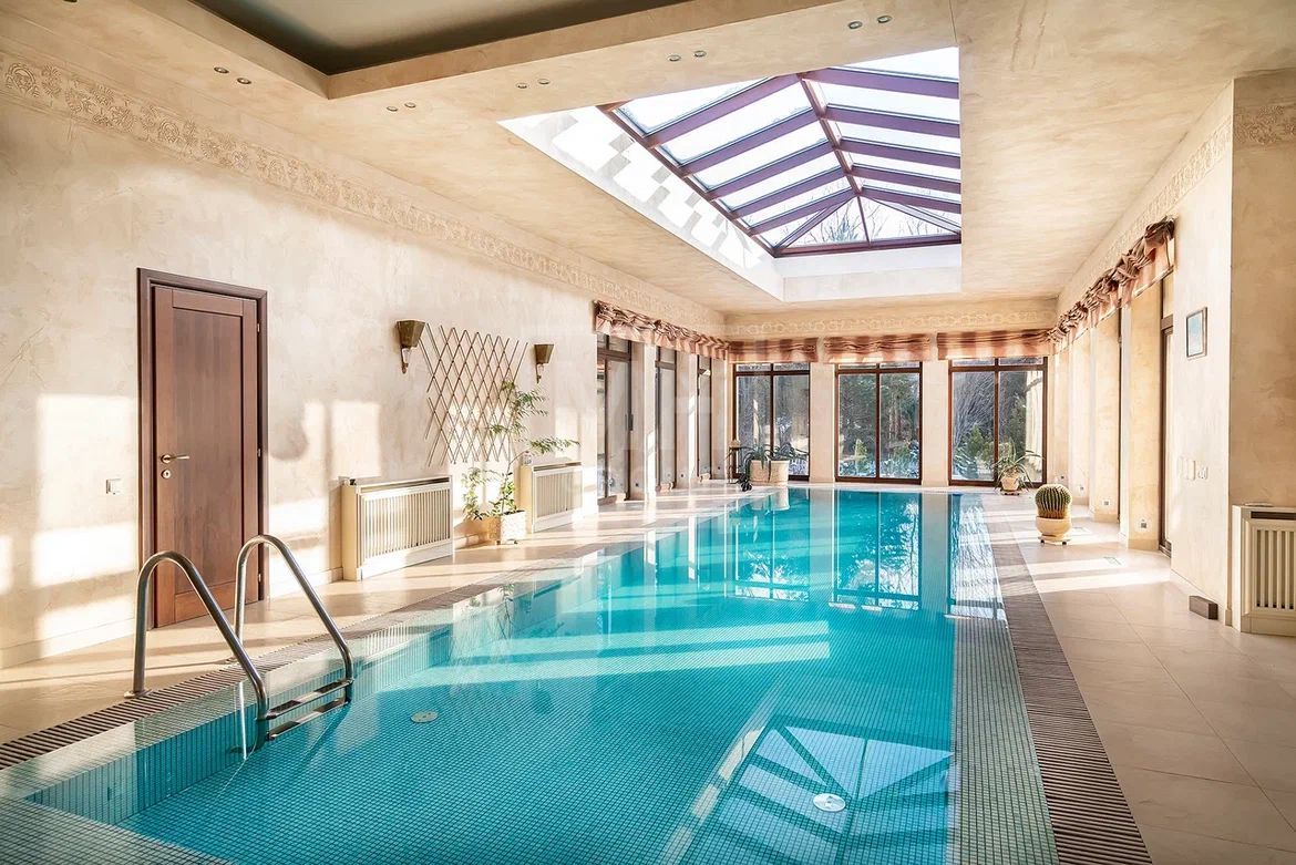 Этаж 1: холл, гардеробная комната, гостевой с/у с душевой, гостиная с камином и выходом на террасу, кухня-столовая, кабинет, гостевая спальня, зимний сад, бильярдная, сезонная гардеробная, SPA-зона : бассейн, хамам, с/у, душевая с выходом на террасу, котельная, постирочная, гараж на 2 м/м.