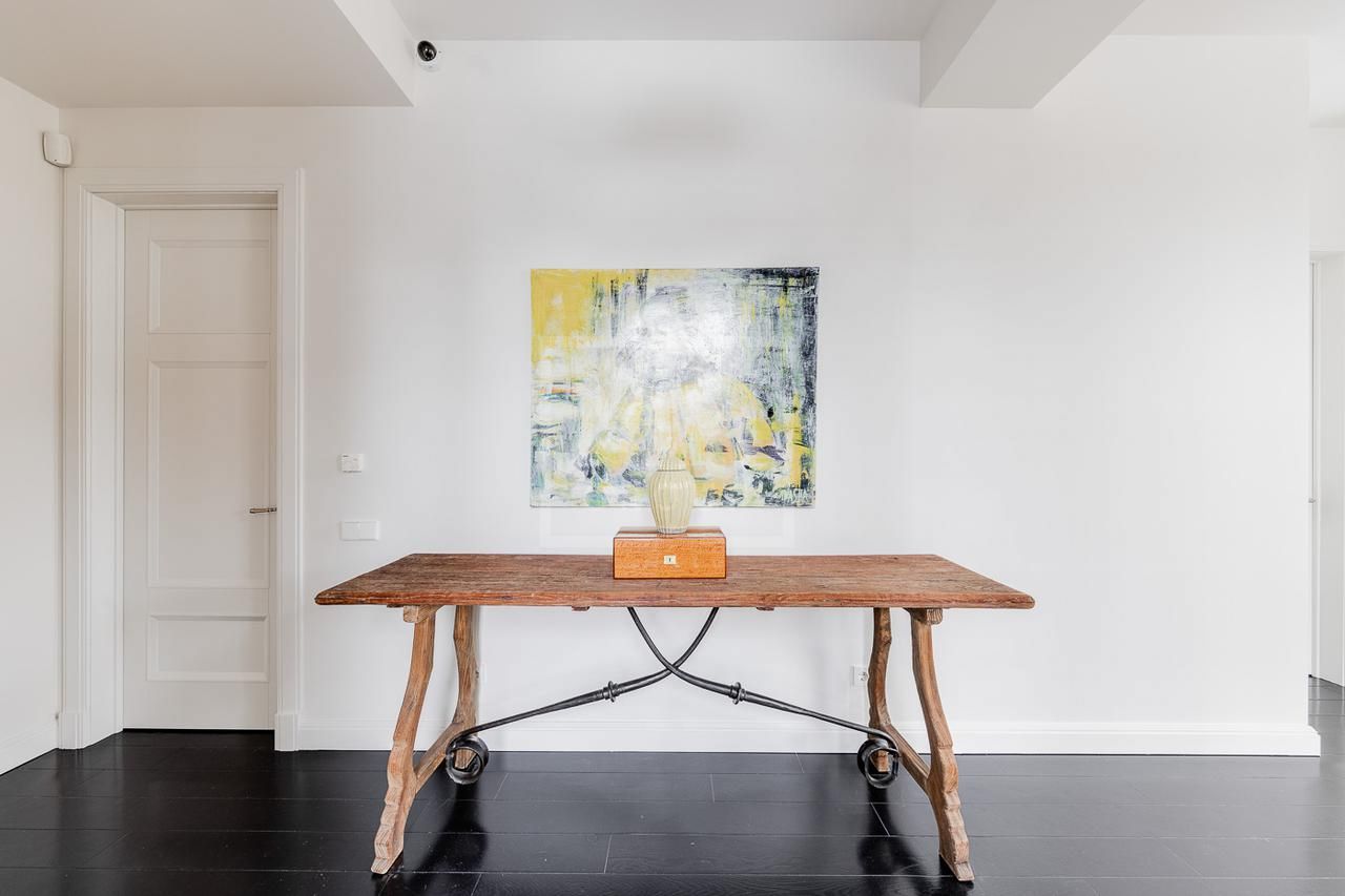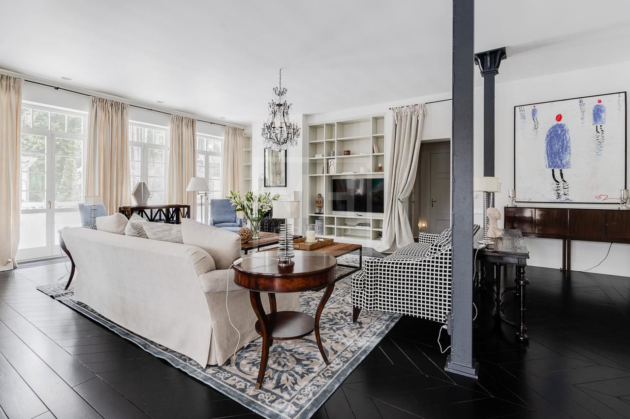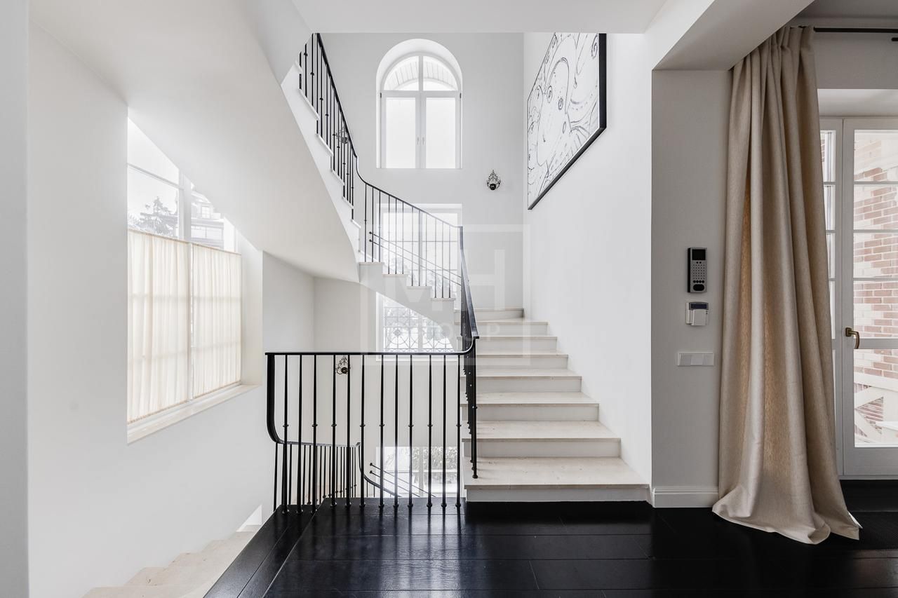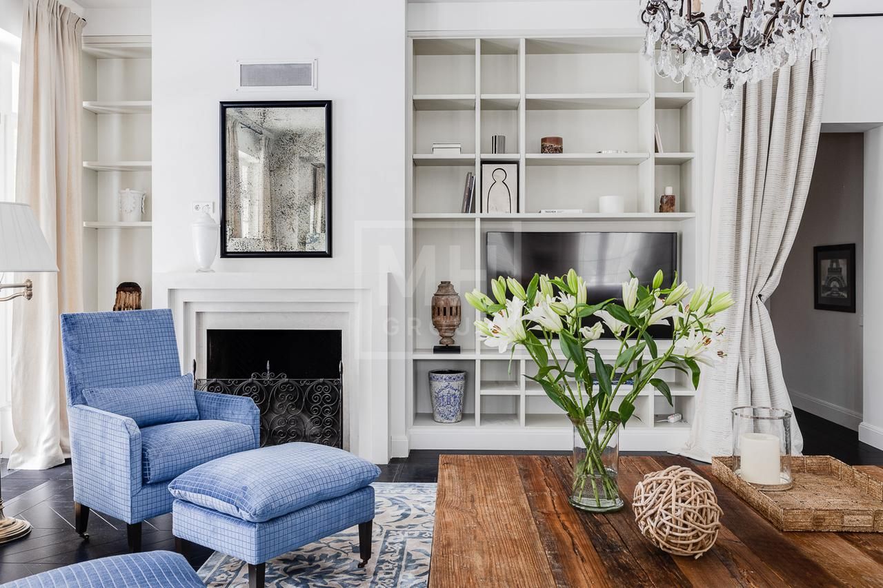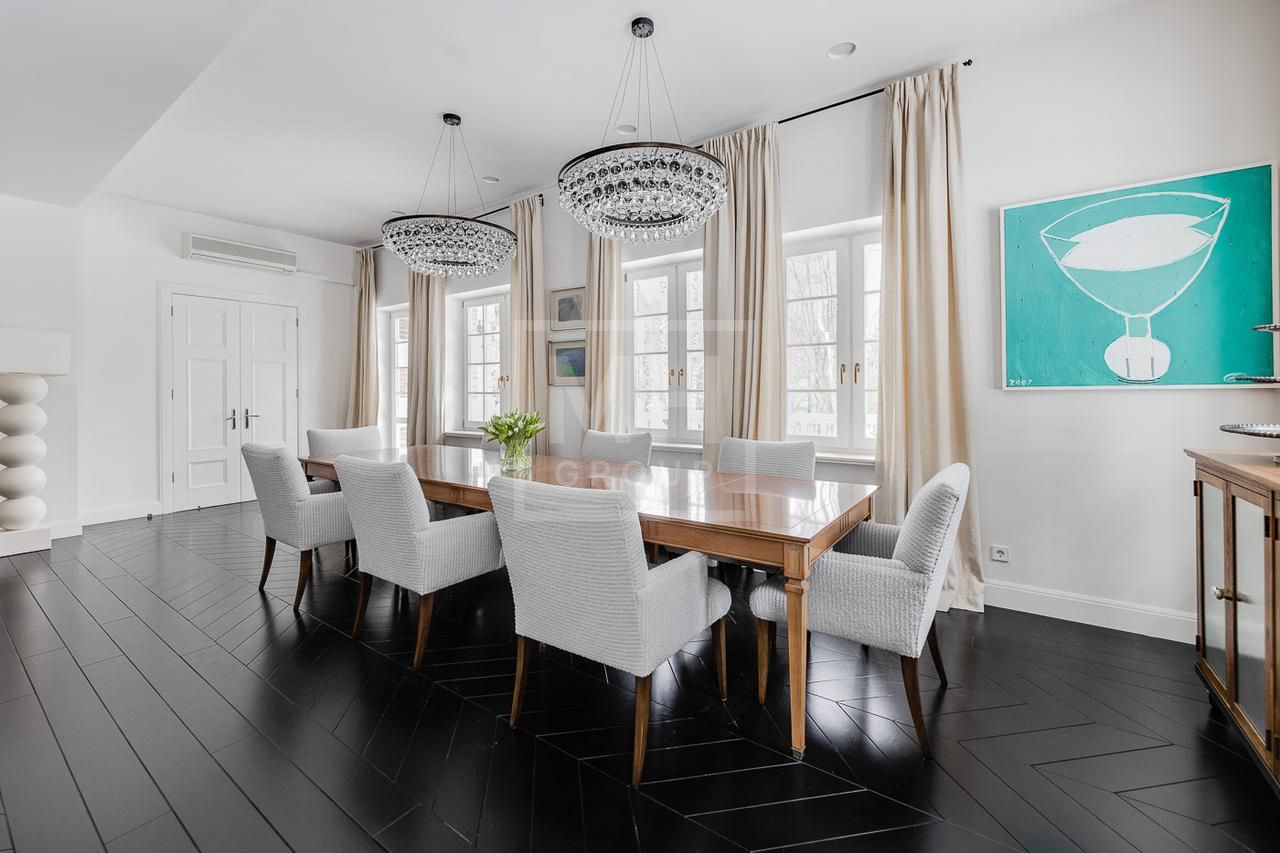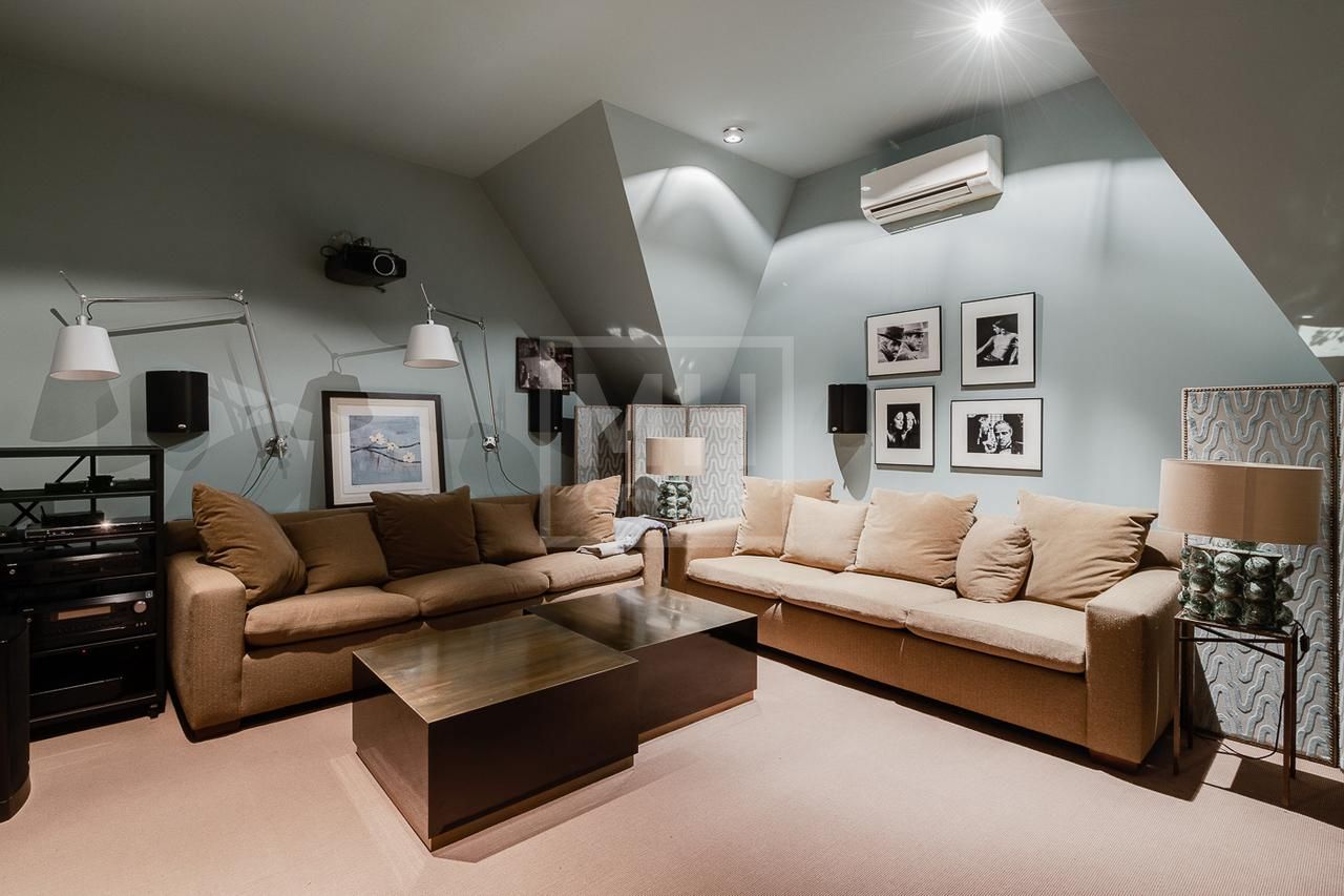 Эксклюзивный дом в поселке «Довиль» в 10 км от МКАД по Минскому шоссе. Коттеджный поселок расположен в 10 км от Москвы на берегу лесного озера сказочной красоты. Великолепный пейзаж, близость к столице и одновременно уединенность парка привели к идее создания поселка с единой, четко выверенной архитектурной концепцией. Прообразом комплекса стал фешенебельный французский город-курорт Довиль.В дизайне преобладает нормандский стиль, а излишне декоративный облик дома нивелирован лаконичным и изысканным интерьером, в котором работают холодный нейтральный фон и нежная палитра цветов. Высокие потолки, большие окна, светлые тона, простор и легкость в каждой детали дома настроят жильцов на комфорт и уединение. В интерьере в унисон звучат винтажная мебель от ведущих дизайнеров и антикварные предметы декора. Ralph Lauren Home, Grange, Baker, Ochre, Fdc, Porta Romana – это только малая часть брендов, исключительные экземпляры которых украшают дом. Тщательно подобраны мебель и текстиль, освещение ипредметы декора от ведущих мировых производителей. Вгостиной журнальные столики со столешницами из антикварных досок гармонично сочетаются с диванами и столиками Ralph Lauren. Каминный портал выполнен назаказ на фабрике Artishock из известняка и мрамора, а экрандля камина является винтажным наследием из Испании. Мебель на кухне со столешницей из матового гранита выполнена мастерами Rod Punkt, подвесные светильники – Summer Hill, а бра – Urban Archeology. Уникальные предметы декора и картины в доме выполнены художником, архитектором и мультипликатором Петром Бронфиным.
