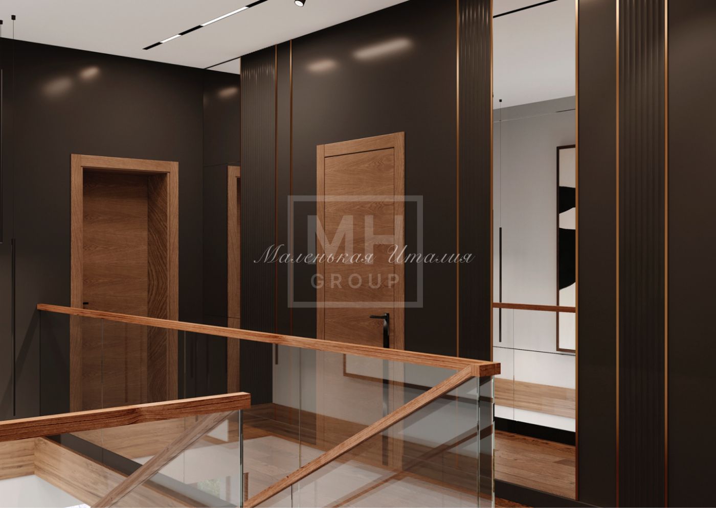 Этаж 2: Холл, мастер спальня с ванной комнатой и гардеробной, детская со своим санузлом и гардеробной, 2 детские спальни и ванная комната.