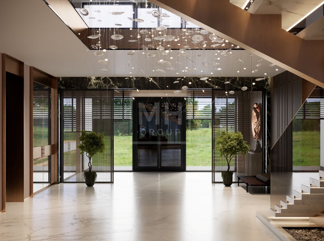 Этаж 1: Прихожая, гардеробная, кухня- столовая-гостиная, с/у, гостевая спальня с с/у, кабинет с с/у, спа-зона с бассейном, сауной, с/у, гараж