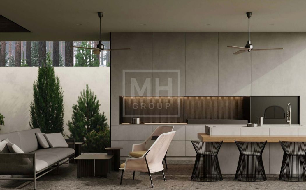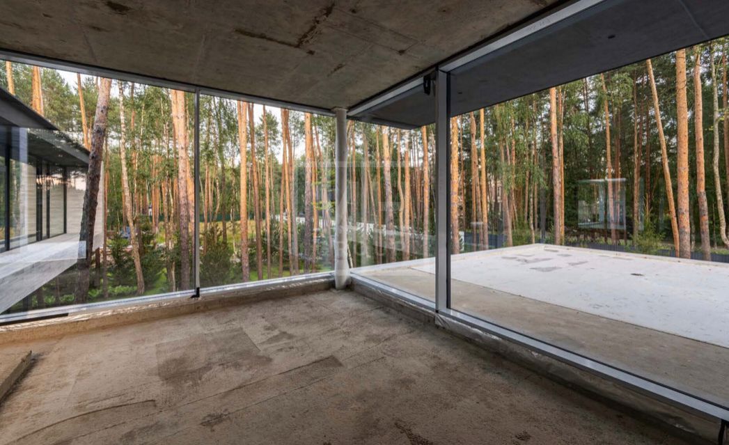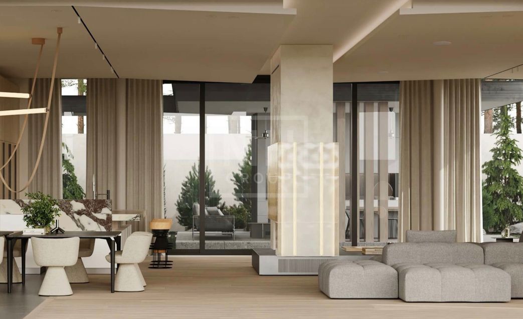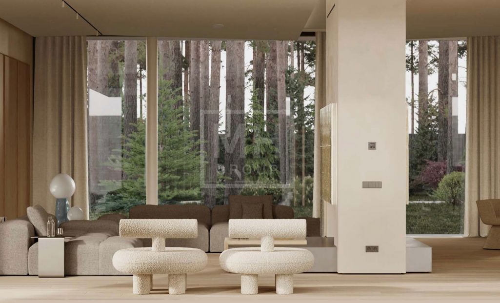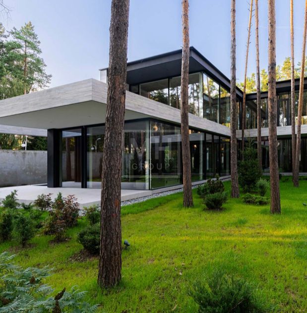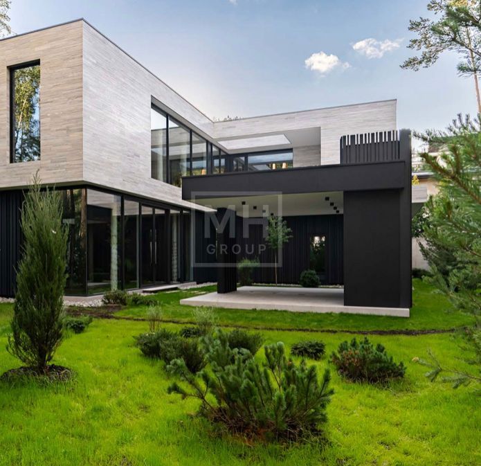 К продаже представлен новый дом с фасадом из греческого мрамора, остекление дома занимает 50% площади фасада.Дом расположен на лесном участке с вековыми соснами.