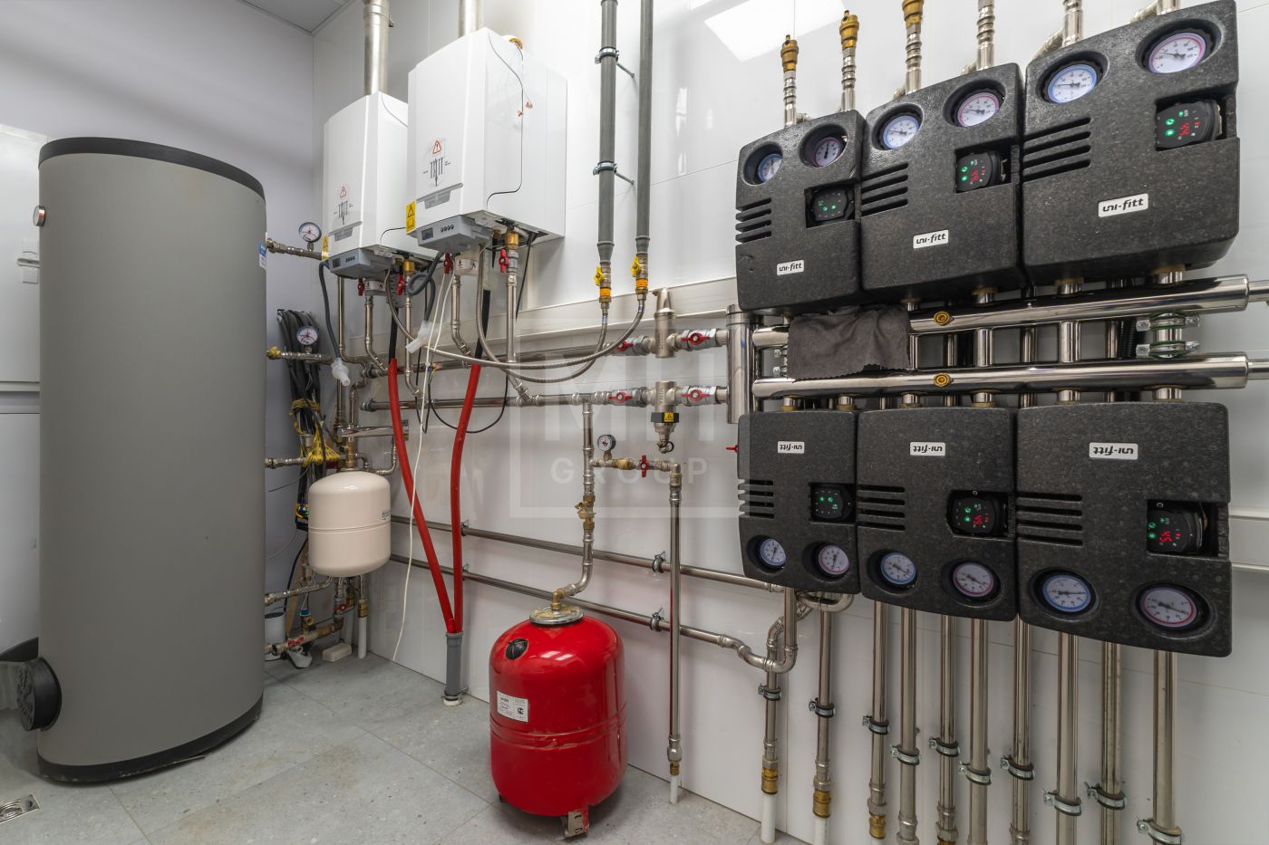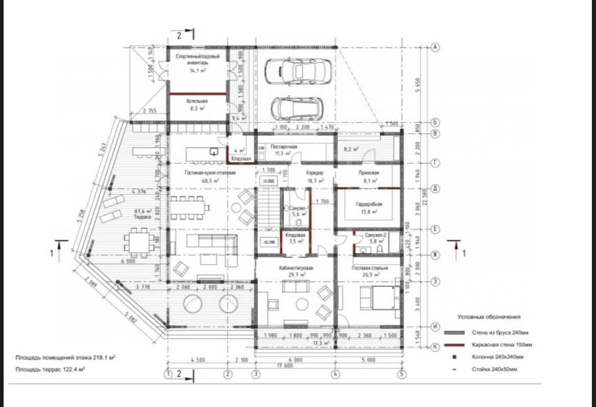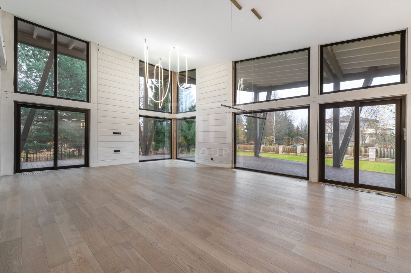 Этаж 1: Прихожая, большая гардеробная, гостевой санузел, кухня-столовая- гостиная с выходом на террасу 90м2, постирочная, кабинет, гостевая спальня с санузлом, котельная, кладовая для спортивного и садового инвентаря, навес для авто.