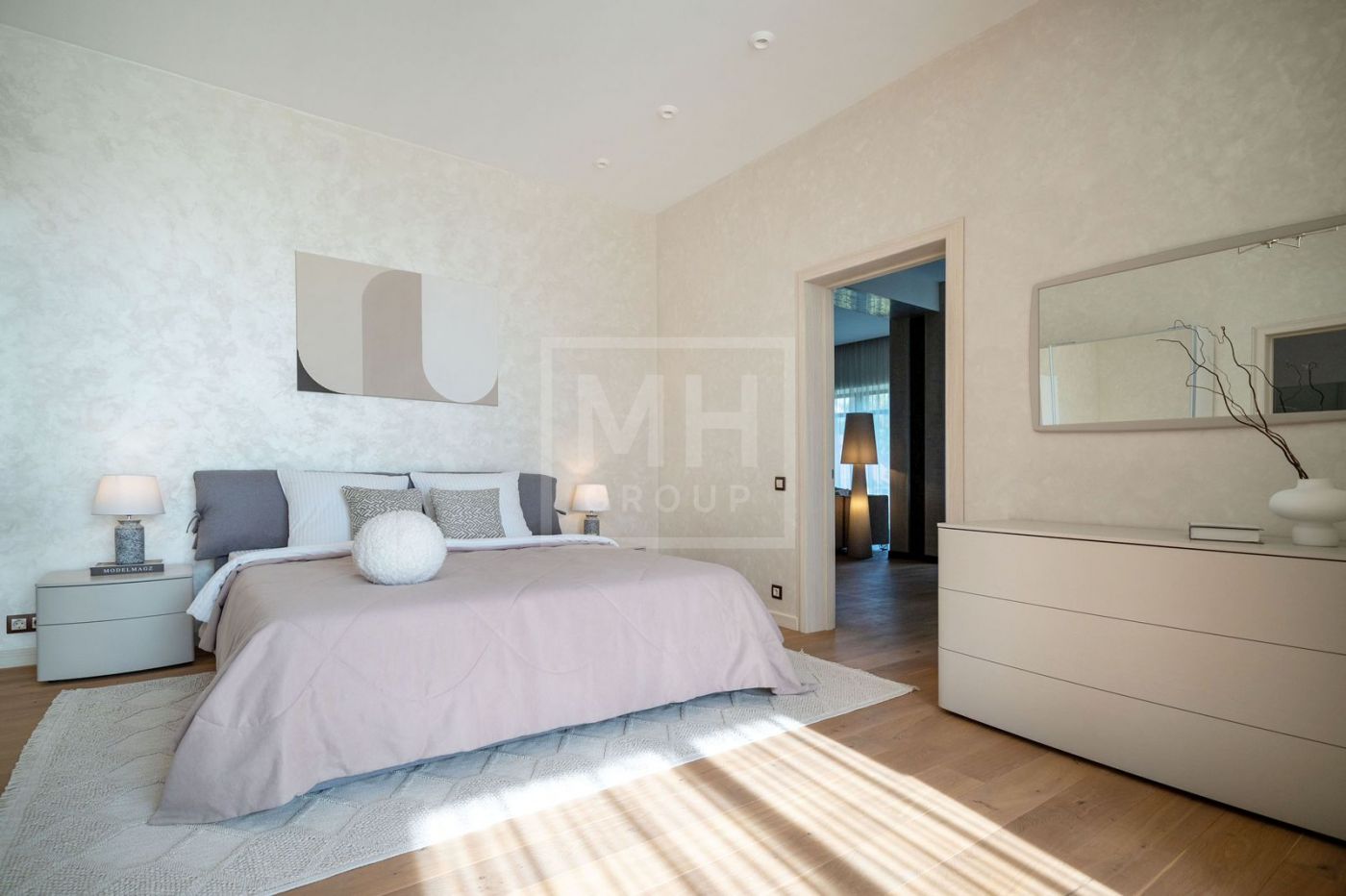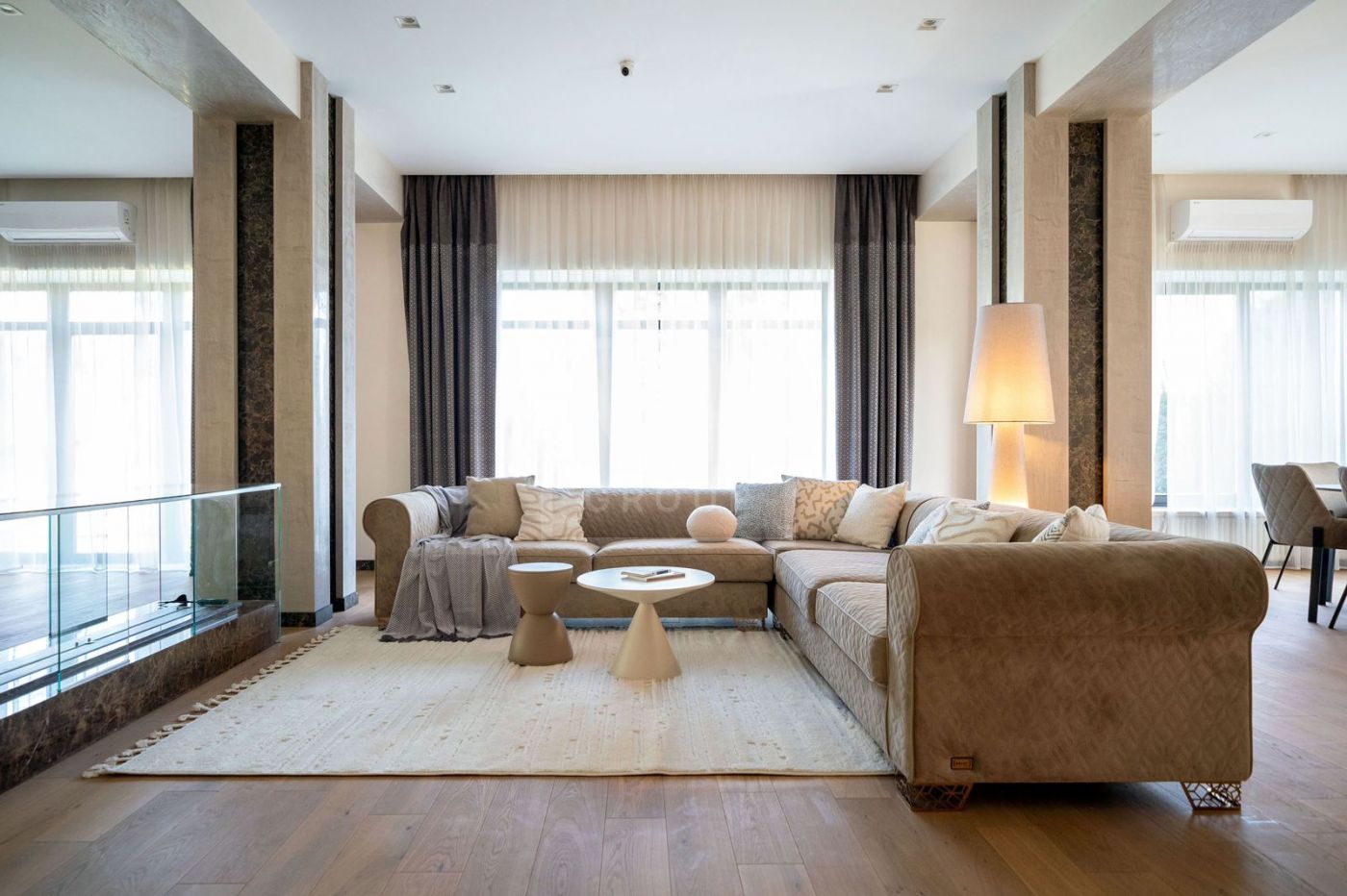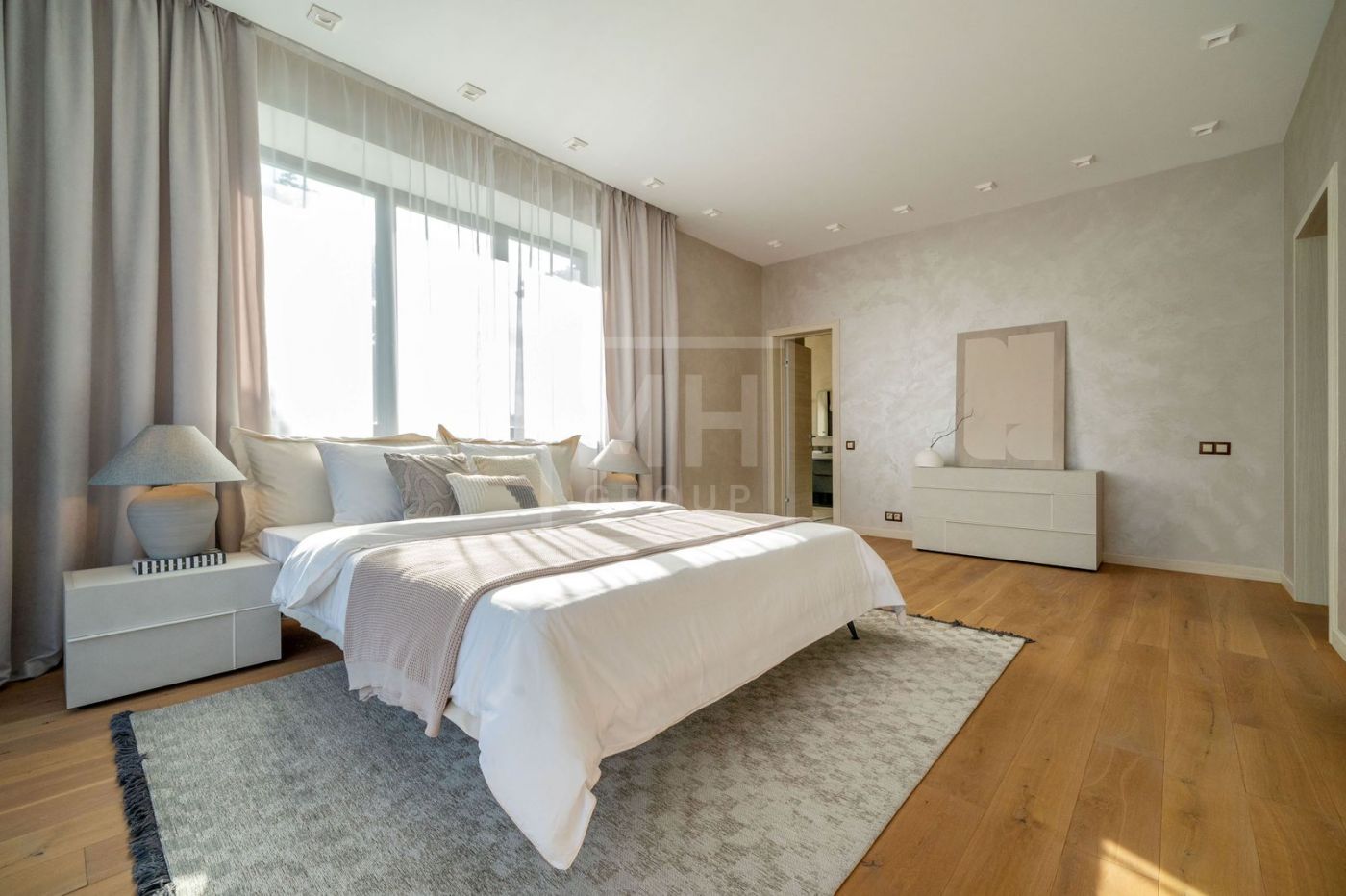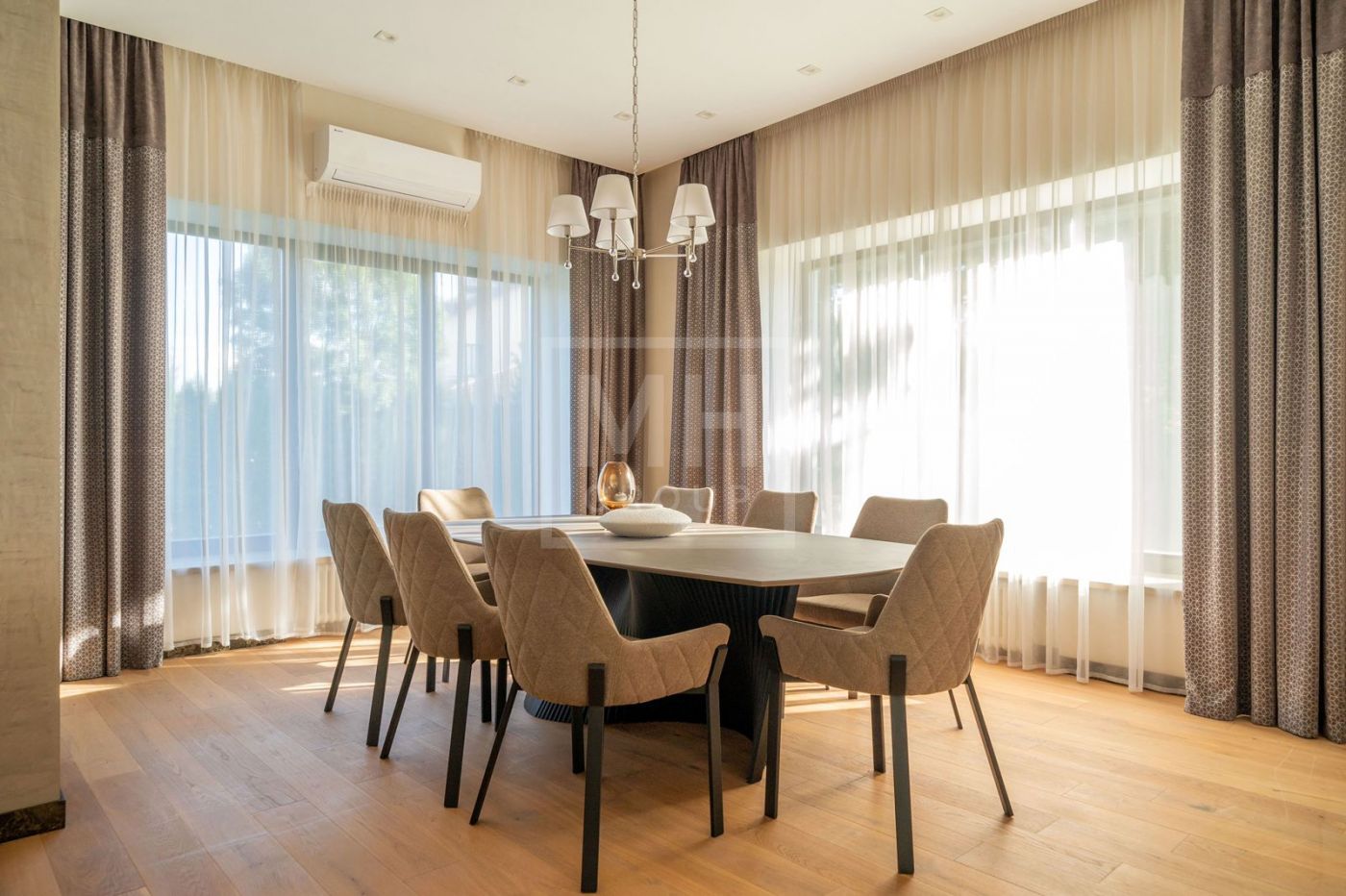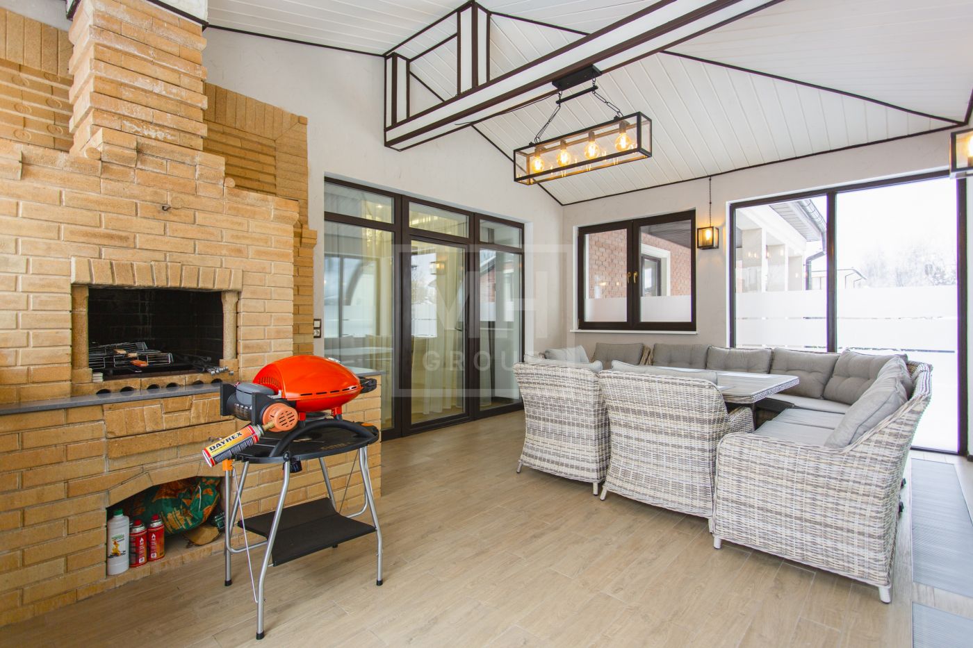 К продаже представлен новый дом 593 м2, на приватном участке 19 соток. В отделке использовались натуральные современные материалы высокого качества, кухонная техника Neff, сантехника Geberit, телевизоры Sony в каждой спальне. Тщательно спроектированное планировочное решение, каждая деталь продумана для идеального качества жизни: гостиная, объединенная с кухней - столовой. Кинотеатр с зоной отдыха с сауной и хамам. Второй этаж полностью занимают 4 спальни со своими санузлами. Домовладение примыкает к декоративному водоему поселка. На участке расположены двухэтажный отапливаемый гараж с помещениями для персонала на втором этаже и беседка с мангалом. В пешей доступности пруд и лес.