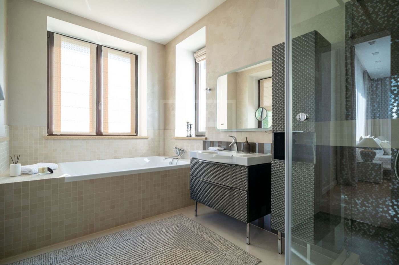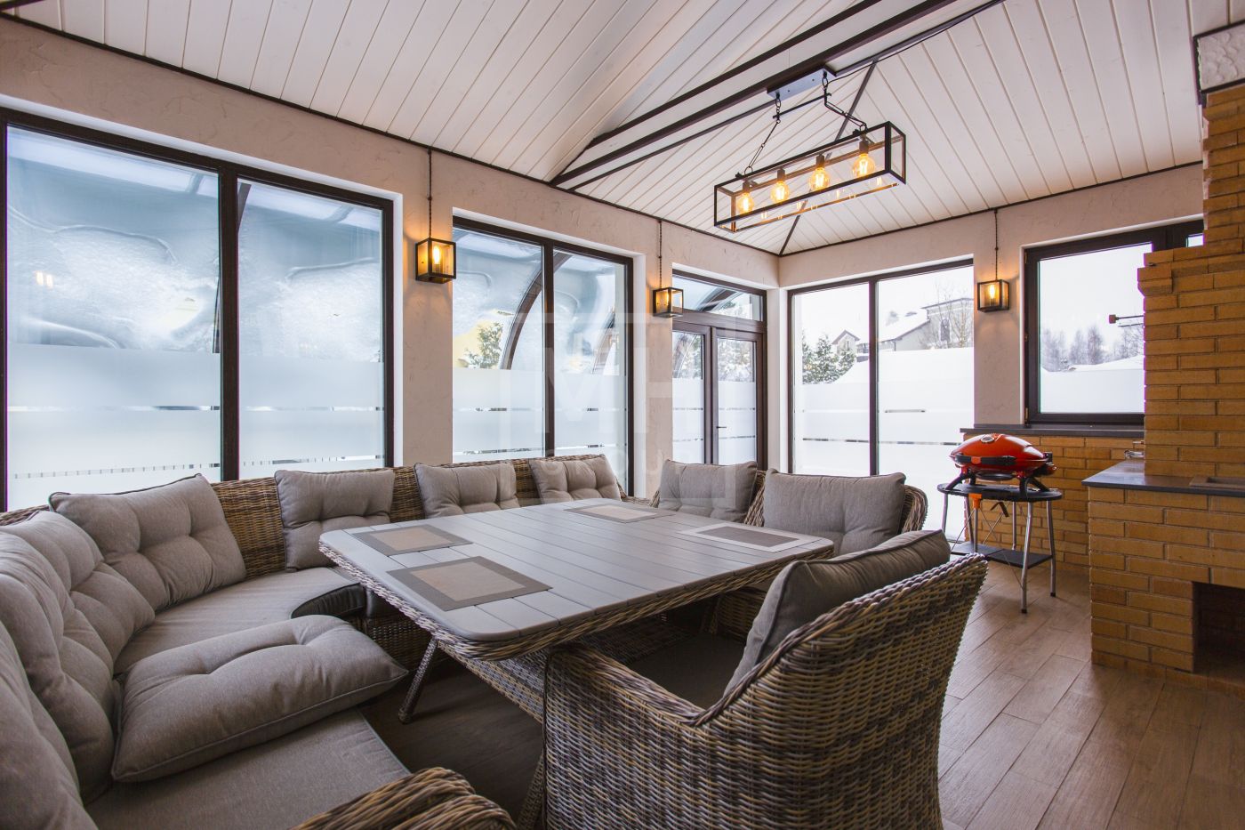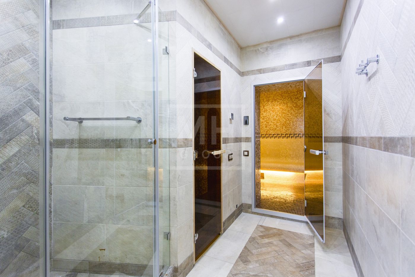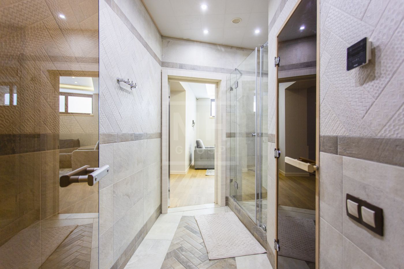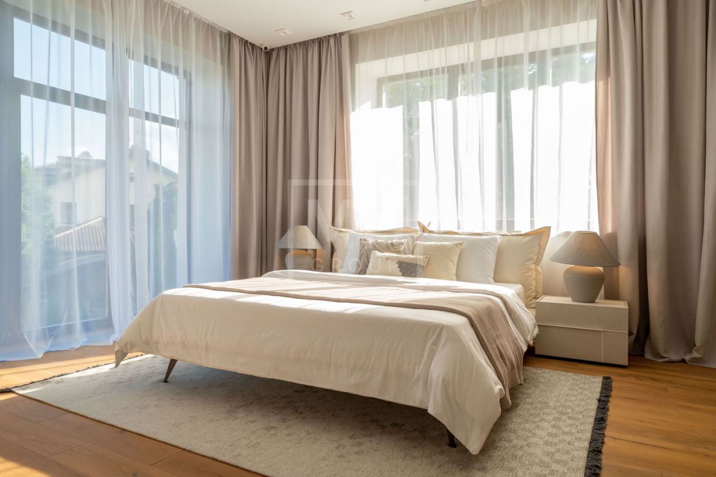 К продаже представлен новый дом 593 м2, на приватном участке 19 соток. В отделке использовались натуральные современные материалы высокого качества, кухонная техника Neff, сантехника Geberit, телевизоры Sony в каждой спальне. Тщательно спроектированное планировочное решение, каждая деталь продумана для идеального качества жизни: гостиная, объединенная с кухней - столовой. Кинотеатр с зоной отдыха с сауной и хамам. Второй этаж полностью занимают 4 спальни со своими санузлами. Домовладение примыкает к декоративному водоему поселка. На участке расположены двухэтажный отапливаемый гараж с помещениями для персонала на втором этаже и беседка с мангалом. В пешей доступности пруд и лес.