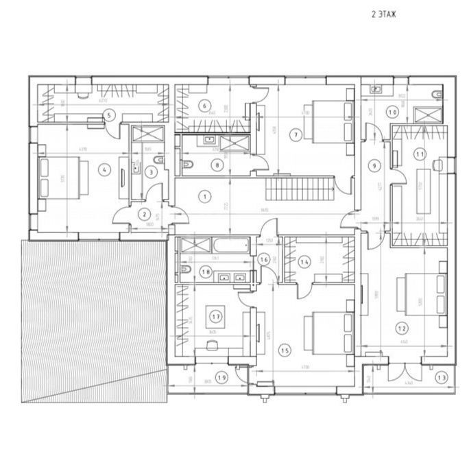 Этаж 2: Мастер спальня с ванной комнатой и гардеробной, 3 спальни со своими гардеробными и санузлами.