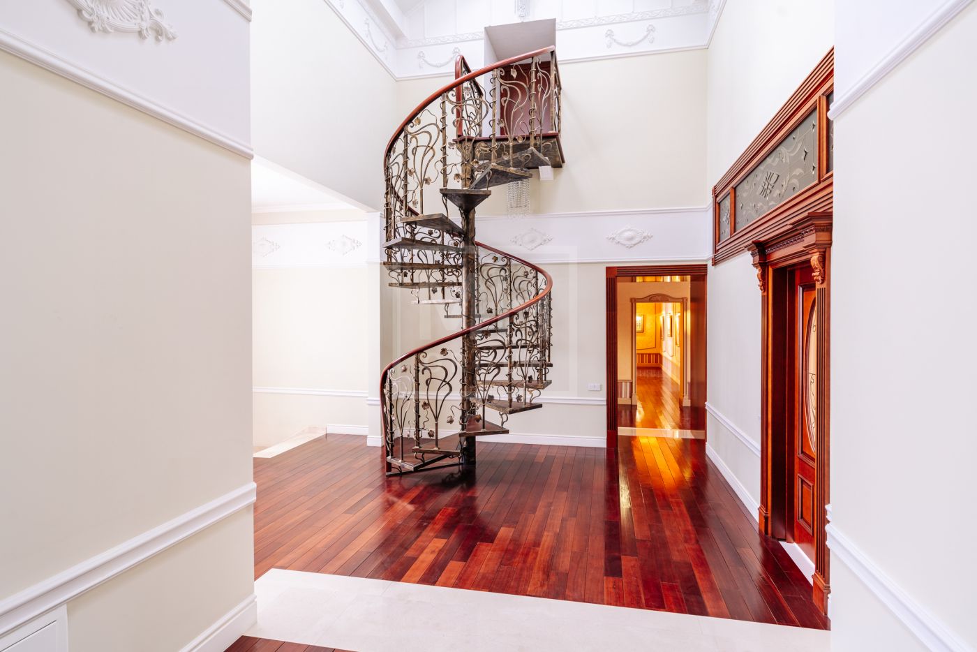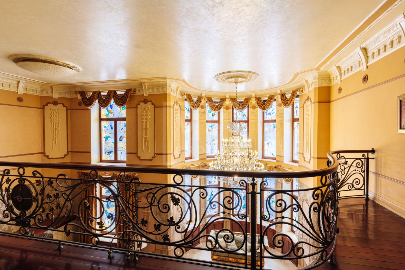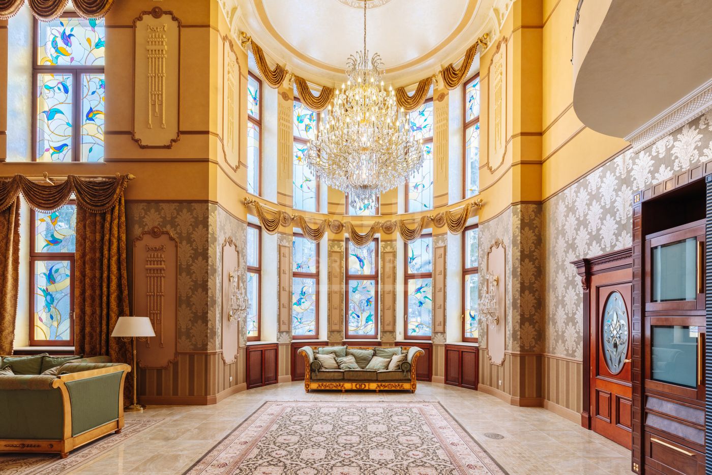 Этаж 1: 2 гостиные, 2 столовые, кухня, 2 гардеробные, SPA-зона с 2-мя бассейнами, хамамом, сауной, комнатой отдыха и массажной, тренажерный зал, кинотеатр, зал для танцев.