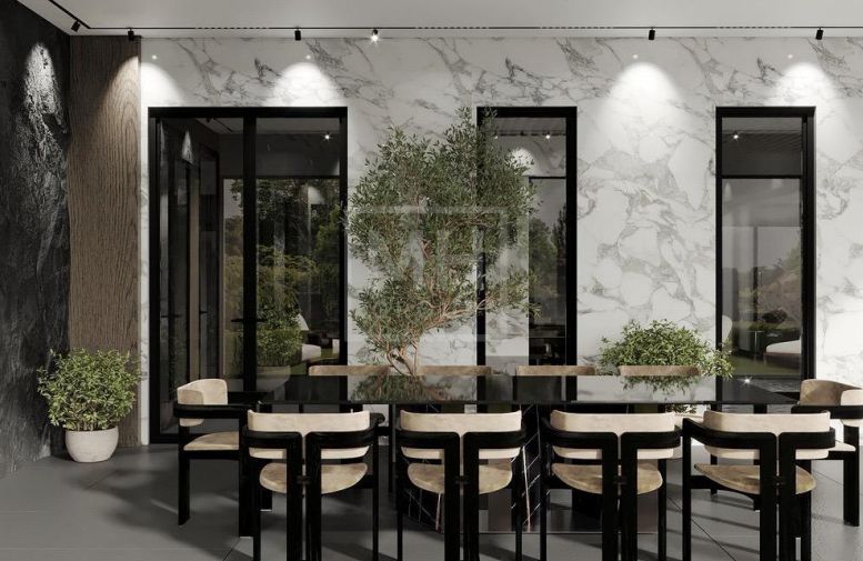 Этаж 1: Прихожая, гардеробная, с/у, кухня, столовая, гостиная, каминный зал, кабинет с с/у, спальня с с/у