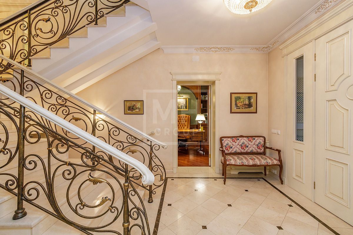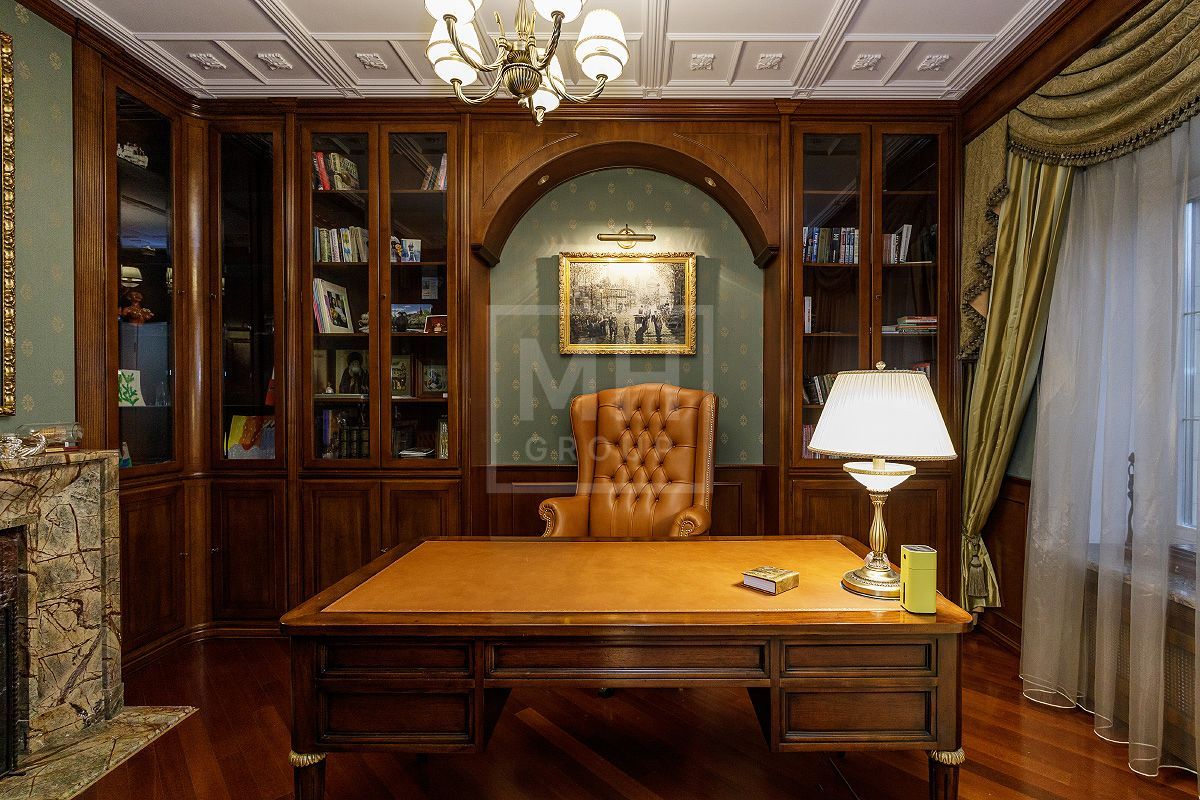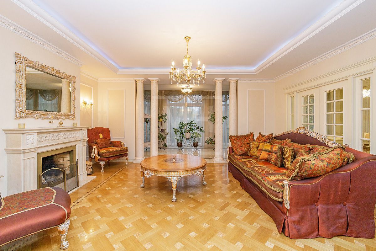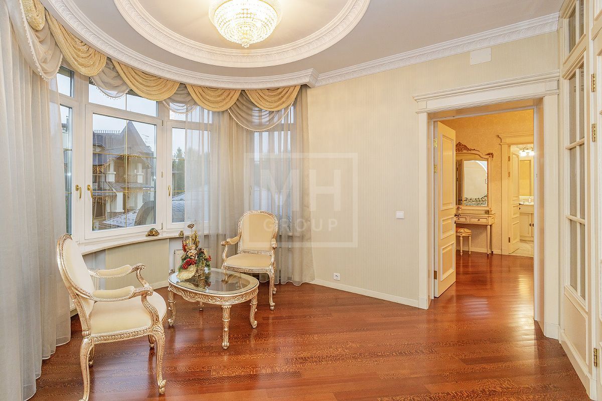 Этаж 2: мастер - спальня с ванной комнатой, гардеробной, будуаром, камином и эркером, большая гостиная с зимним садом, две спальни с гардеробными комнатами и индивидуальными ванными комнатами