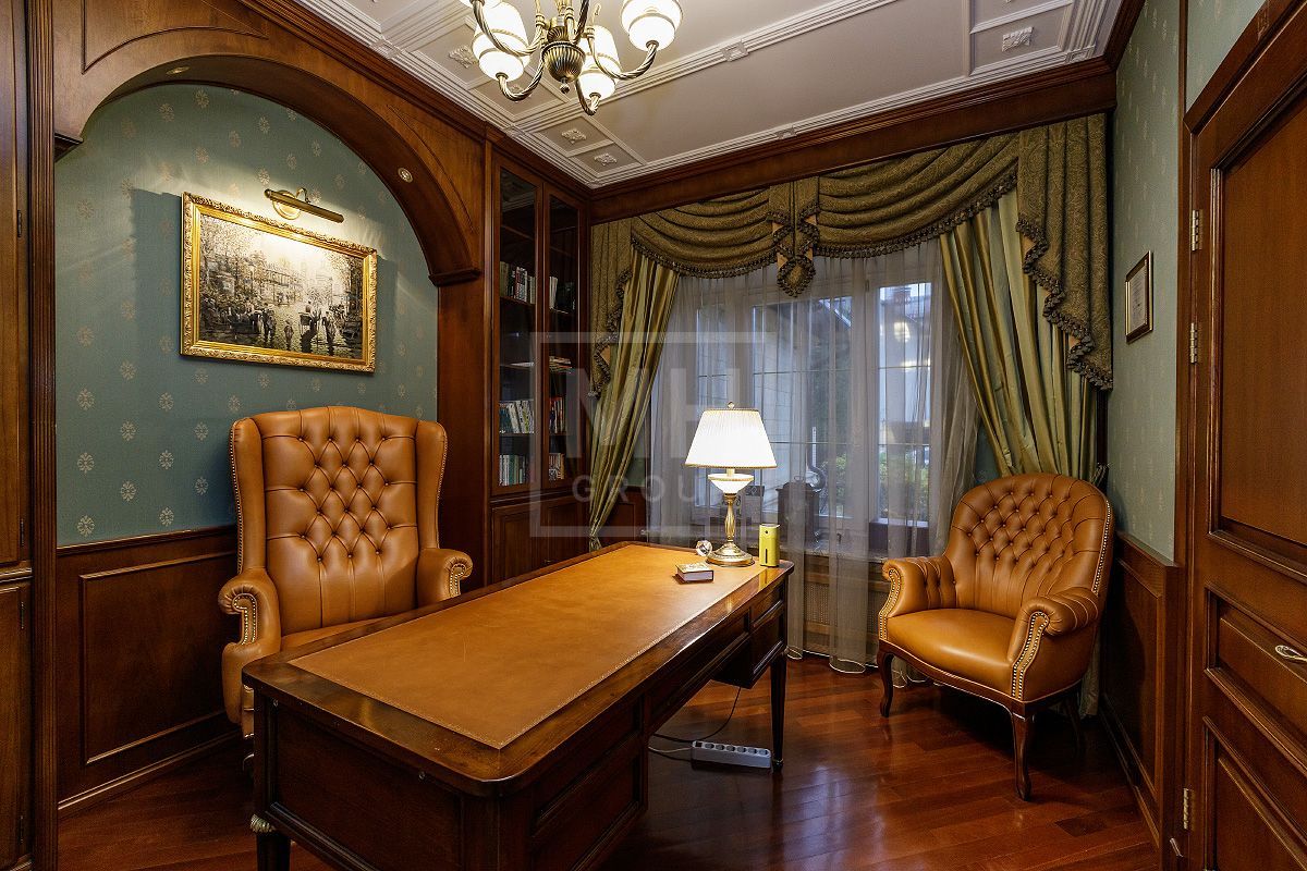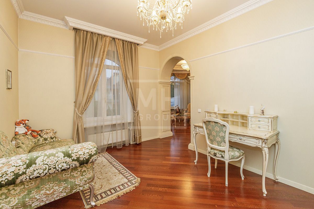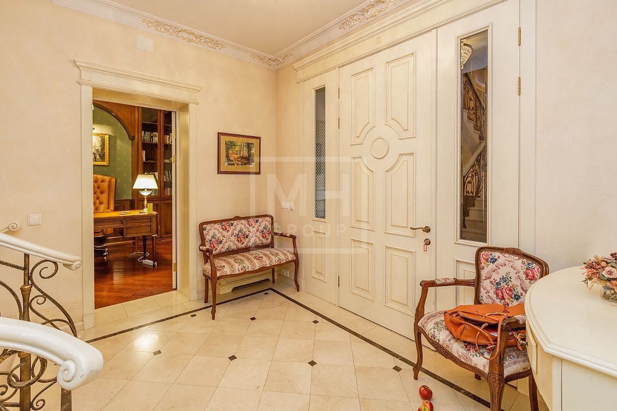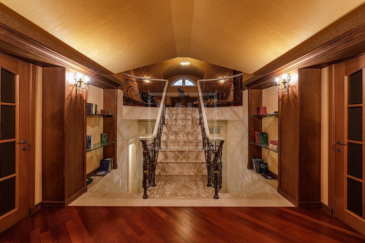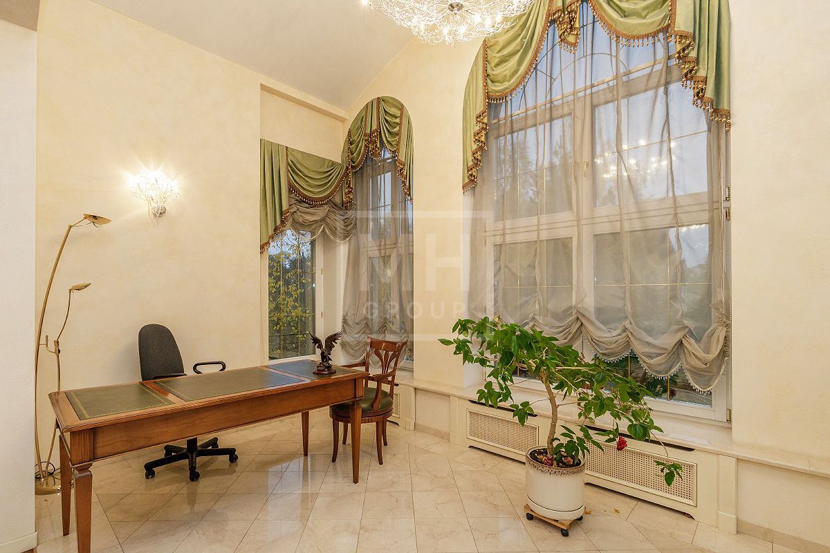 Этаж 2: мастер - спальня с ванной комнатой, гардеробной, будуаром, камином и эркером, большая гостиная с зимним садом, две спальни с гардеробными комнатами и индивидуальными ванными комнатами