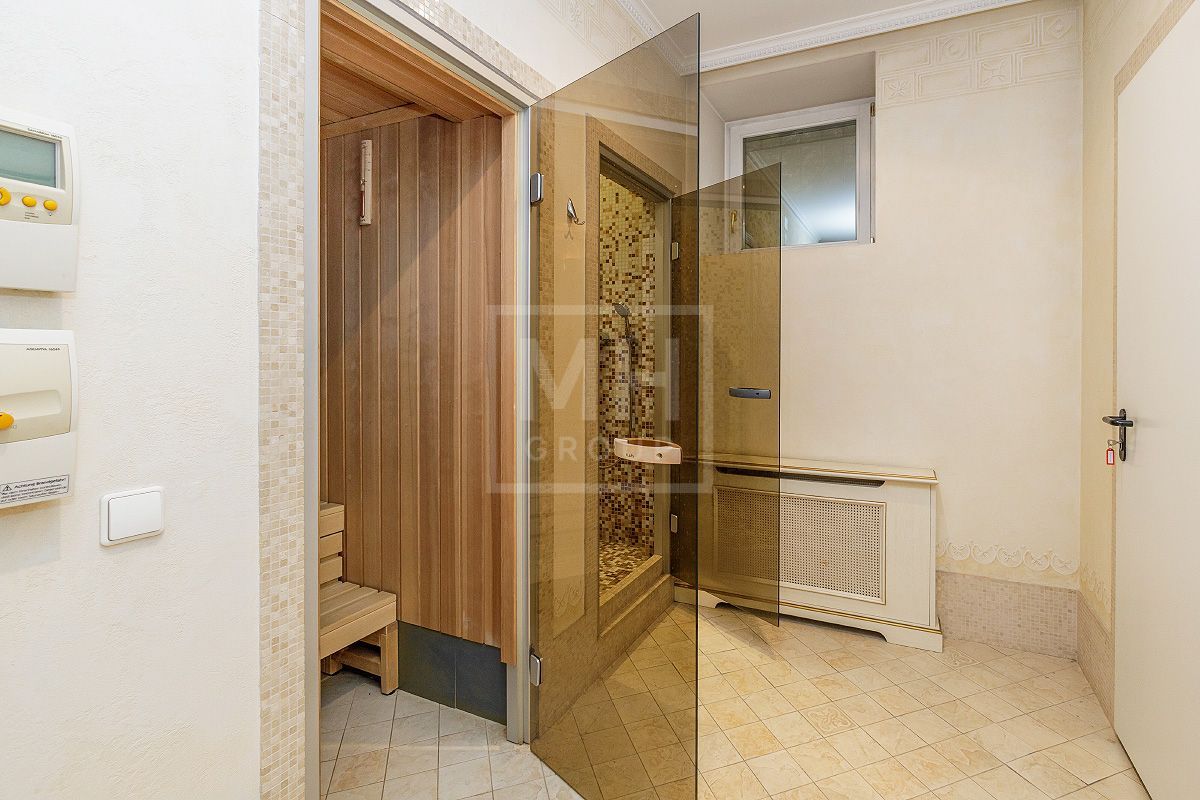 Цоколь: сауна KLAFS, хамам, душевая с гидромассажем, спа, тренажерный зал, домашний кинотеатр, гардеробная комната, прачечная, с/у, котельная
