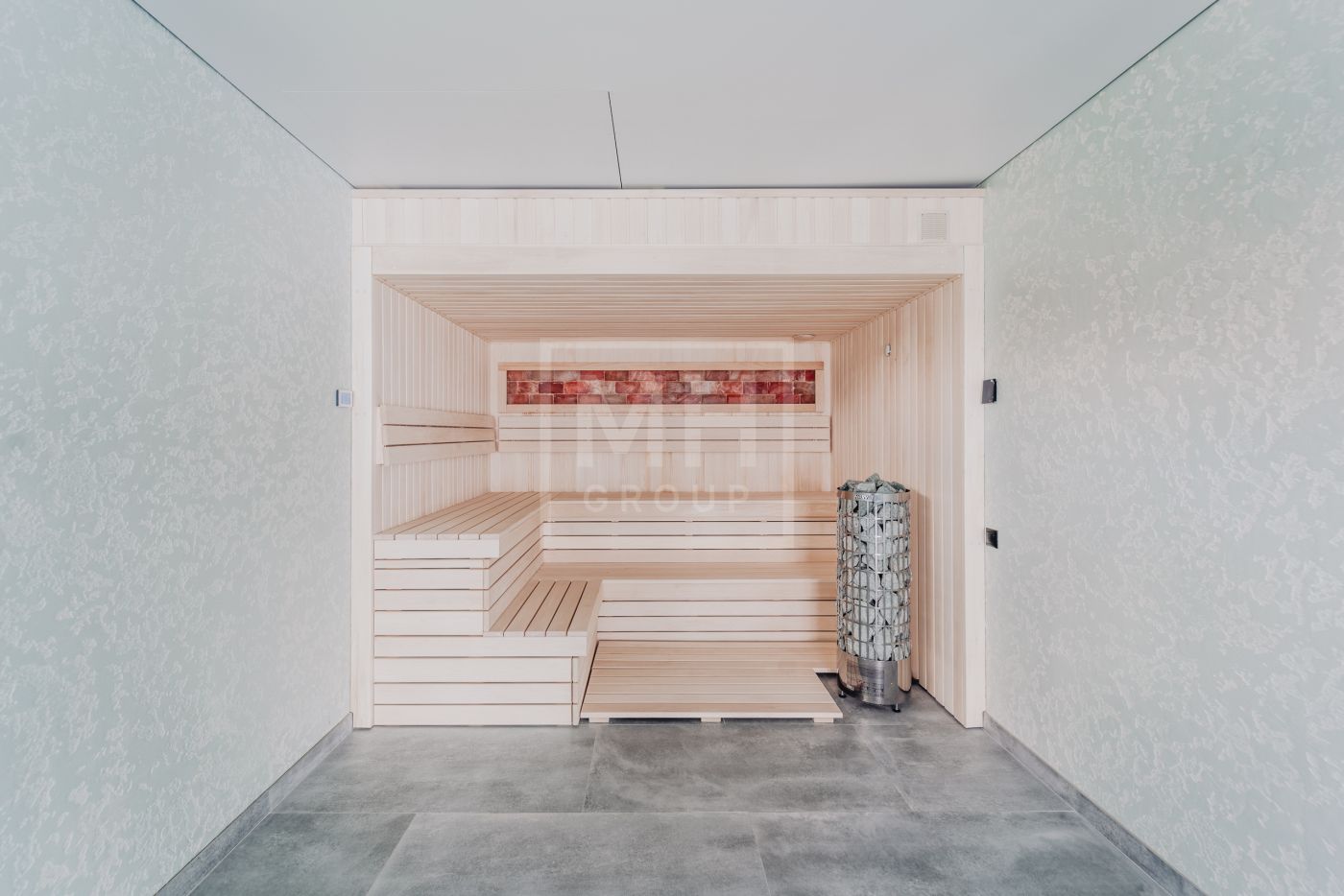 Этаж 1: прихожая, холл, кухня, столовая гостиная, спальня с с/у и гардеробной, бассейн, котельная, сауна