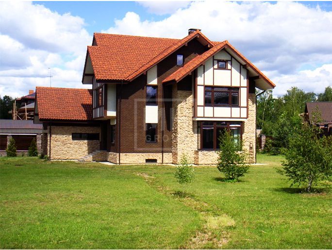 Дом расположен в охраняемом клубном поселке Горки -6 , в котором находятся 9 домовладений. Уникальное месторасположение: 5 км от Москвы, рядом особо охраняемая территория природного парка "Лохин остров", 300м до р. Москва.Дом выполнен по классической технологии: стены кирпич, перекрытия монолит, кровля-керамическая черепица, фасад в стиле шале. Степень готовности позволяет выбирать разные стилистические решения для оформления внутренней отделки.