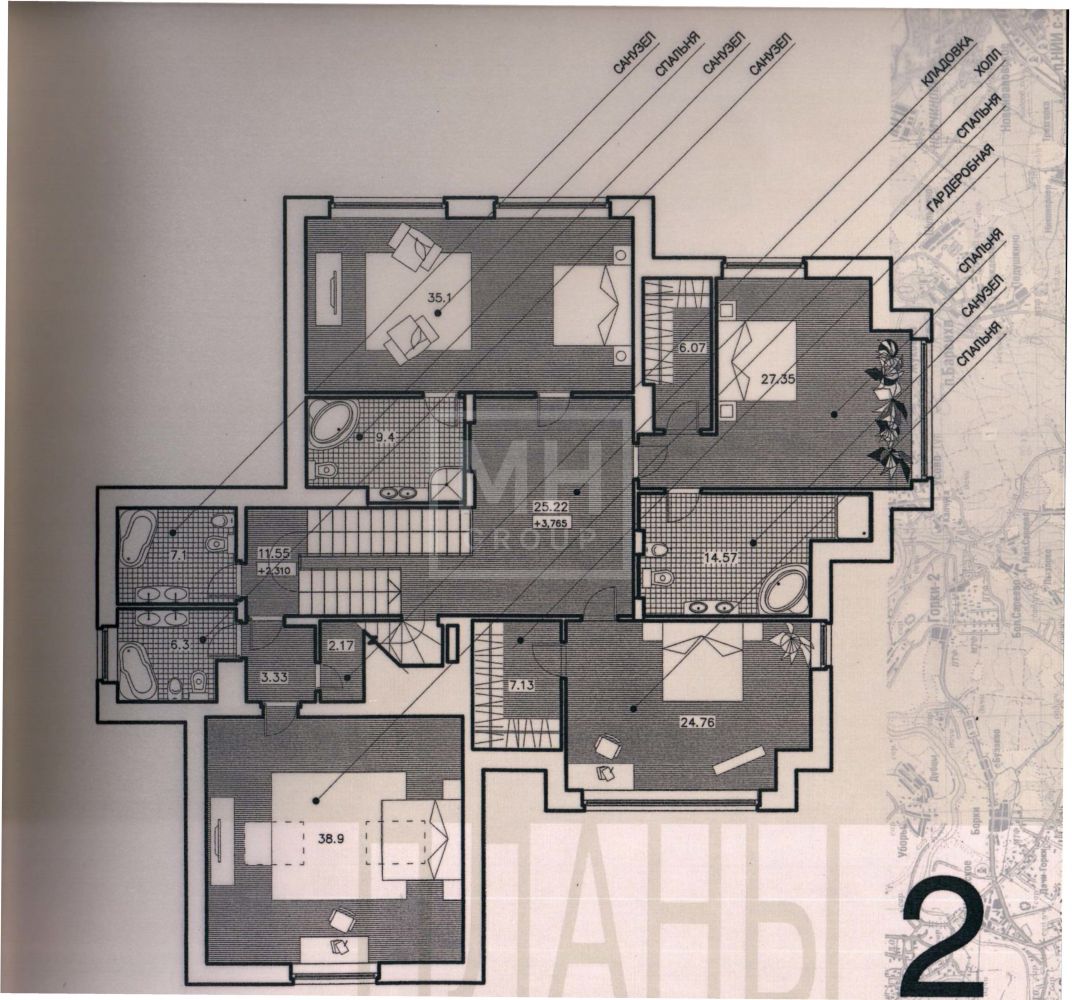 Этаж 2: 4 спальни с с/у, 2 гардеробные
