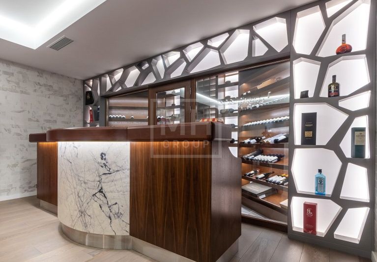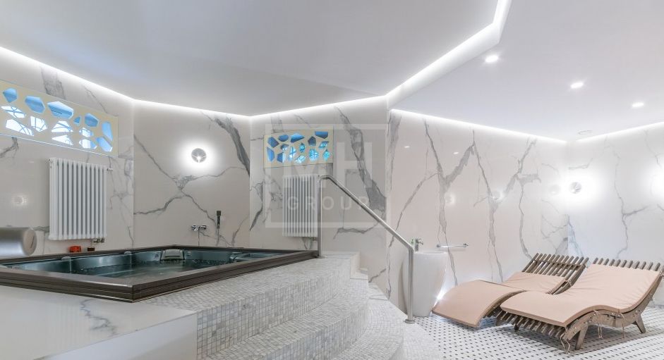 Цоколь: Зона отдыха с домашним кинотеатром, винная комната, бар; тренажерный зал, Спа-зона с джакузи, душем и хамамом, прачечная, подсобные помещения