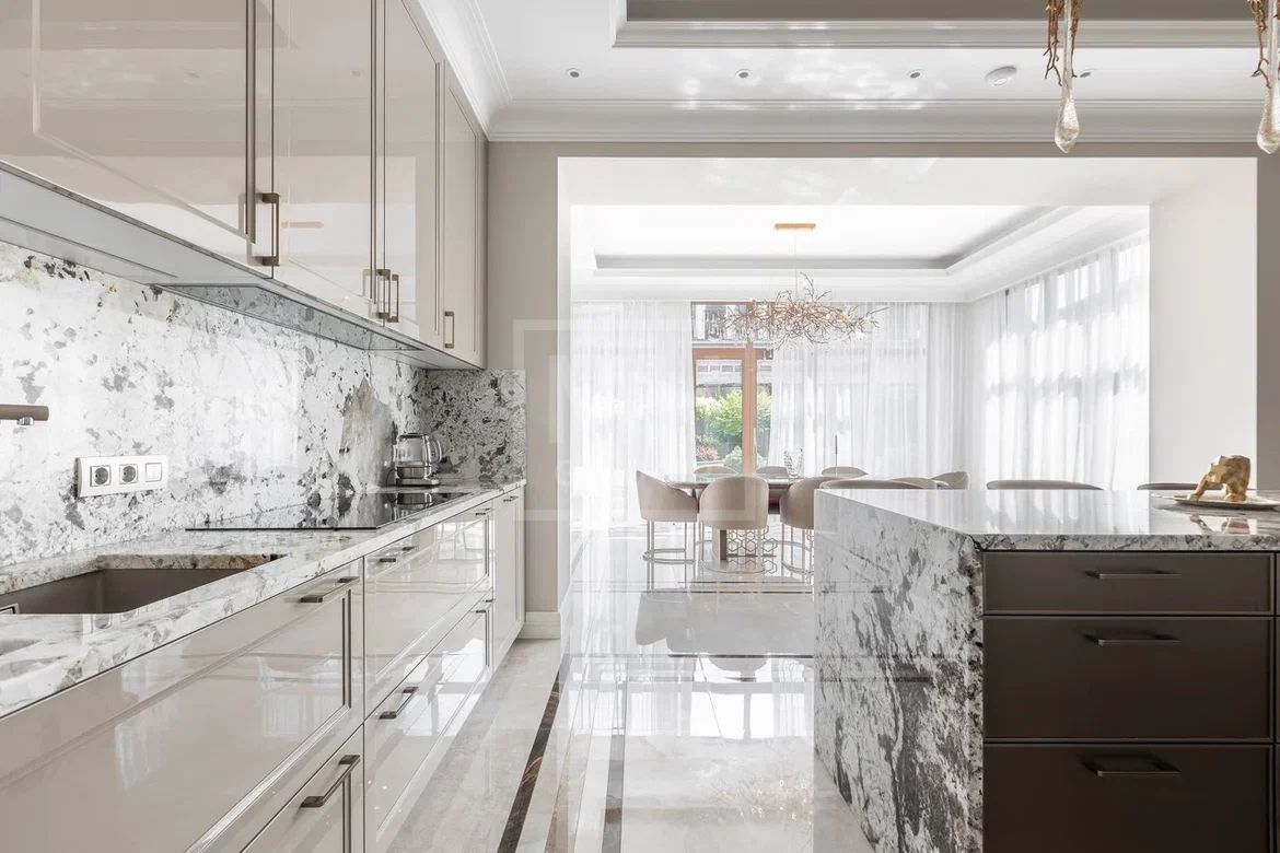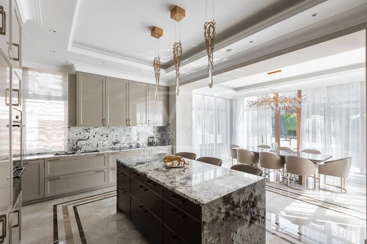 К продаже представлен стильный дом 2020 года постройки, с новой высококачественной отделкой по проекту известного архитектурного бюро в стиле модной современной классики. Мебель подобрана по дизайн-проекту под заказ, европейских и американских брендов. Техника на кухне – VZUG. Мебель: Daytona. Каждая деталь продумана для идеального качества жизни: зона столовой, гостиная с действующим дровяным камином, гостевой с/у, гостевая спальня с собственным с/у, гардеробная, постирочная. На втором этаже располагается: мастер спальня с гардеробом и с/у, зона кабинета, 2 детские с гардеробом и с/у. В отделке использован эксклюзивный мрамор, натуральное дерево, натуральный камень. В отдельной постройке - SPA-зона с сауной, с/у, комнатой отдыха и выходом на открытую террасу. Участок с ландшафтным дизайном (уникальные деревья и кустарники были доставлены из питомников различных регионов), сделан дренаж, автополив, освещение участка.