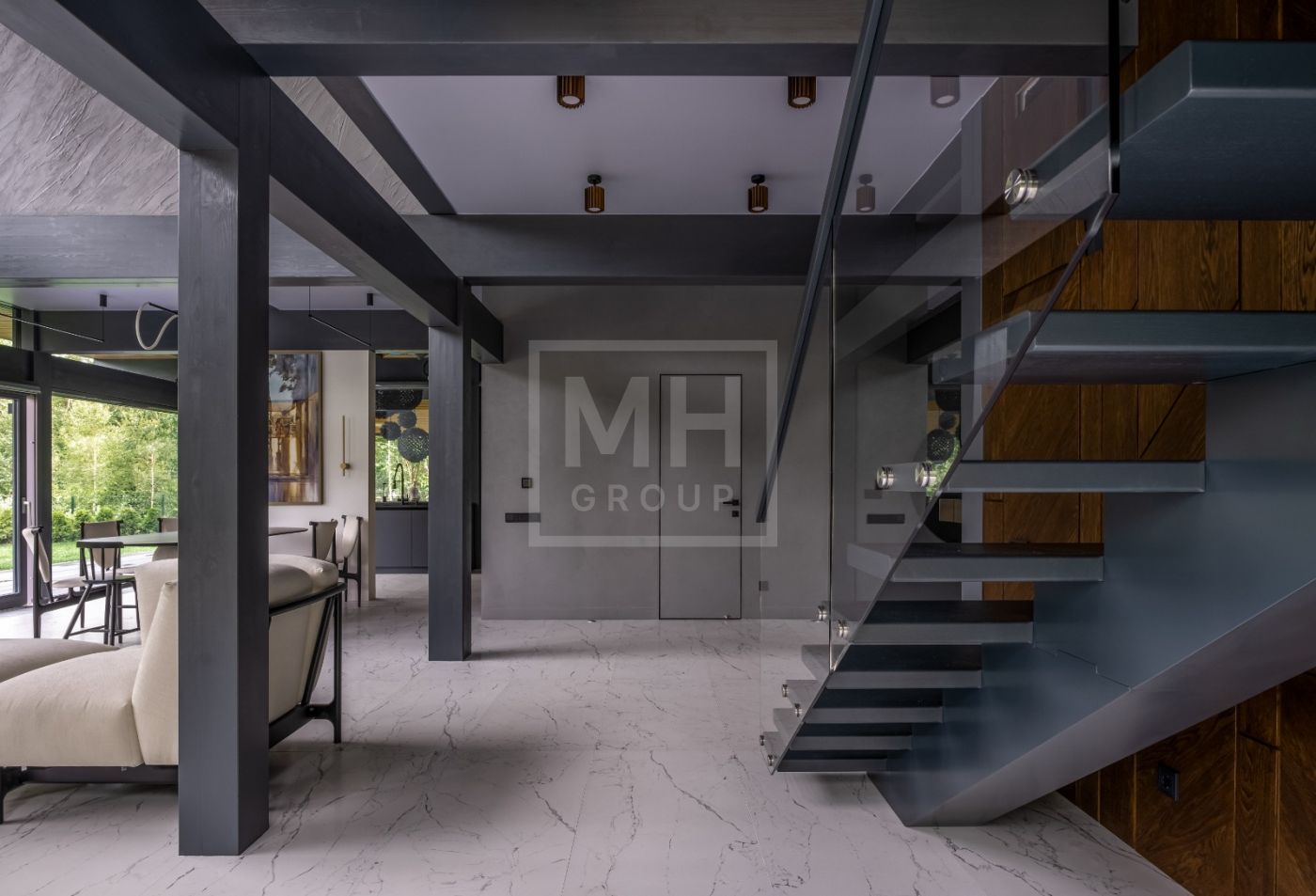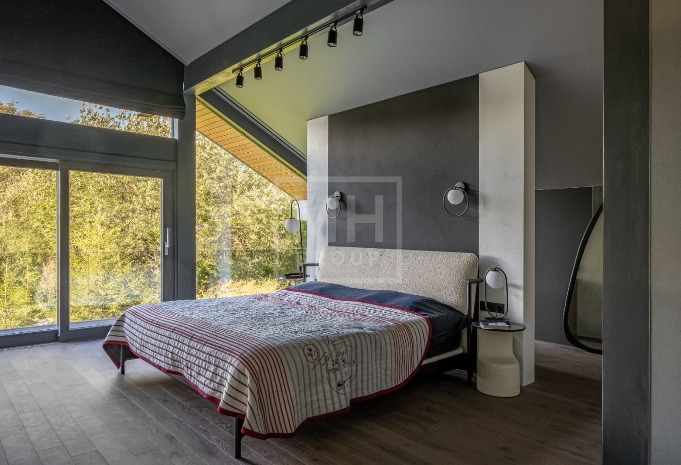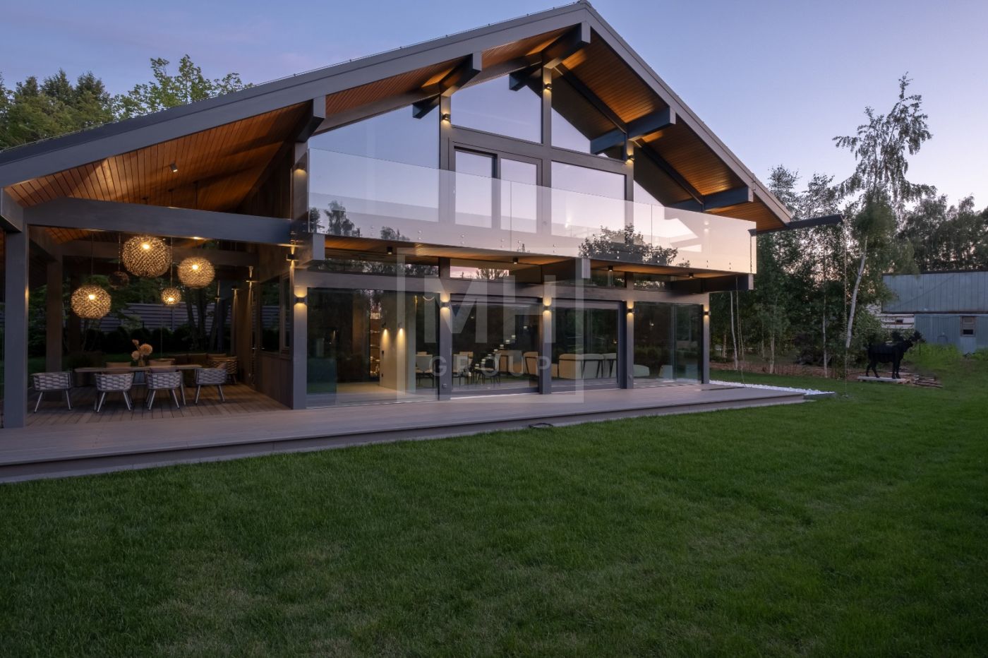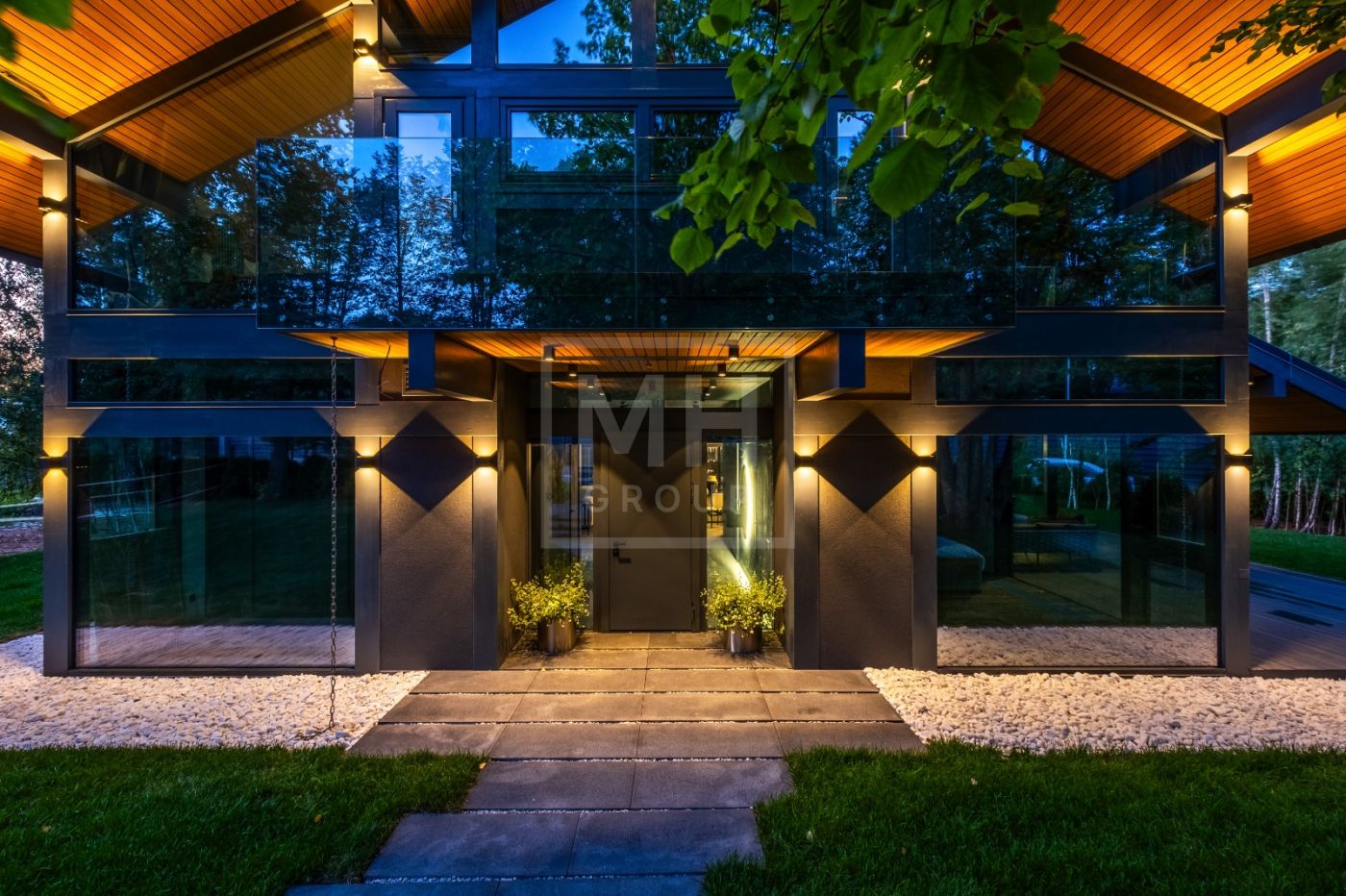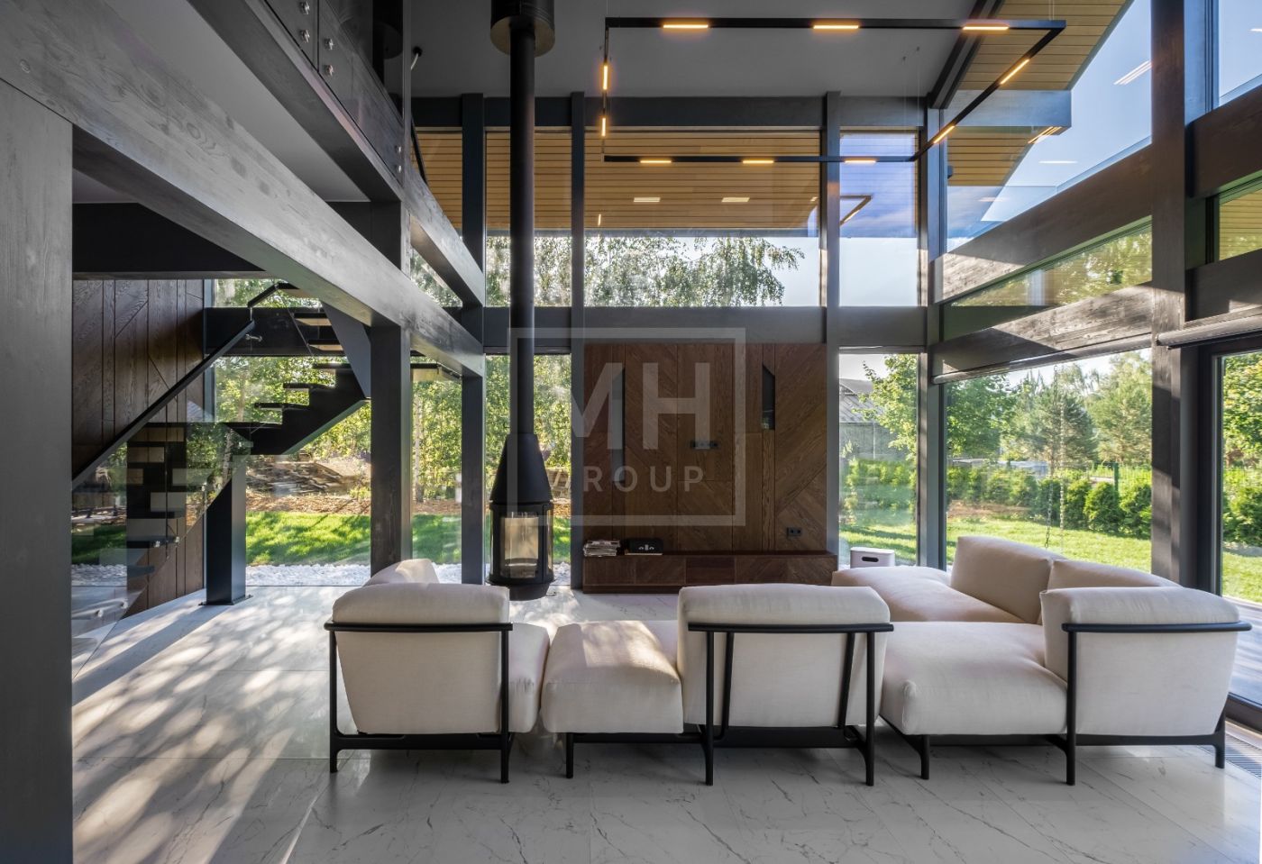 Удобная планировка с качественной внутренней отделкой. Панорамное остекление, второй свет, камин. Интересный современный дизайн интерьера и экстерьера.