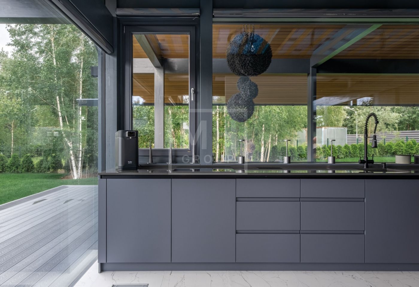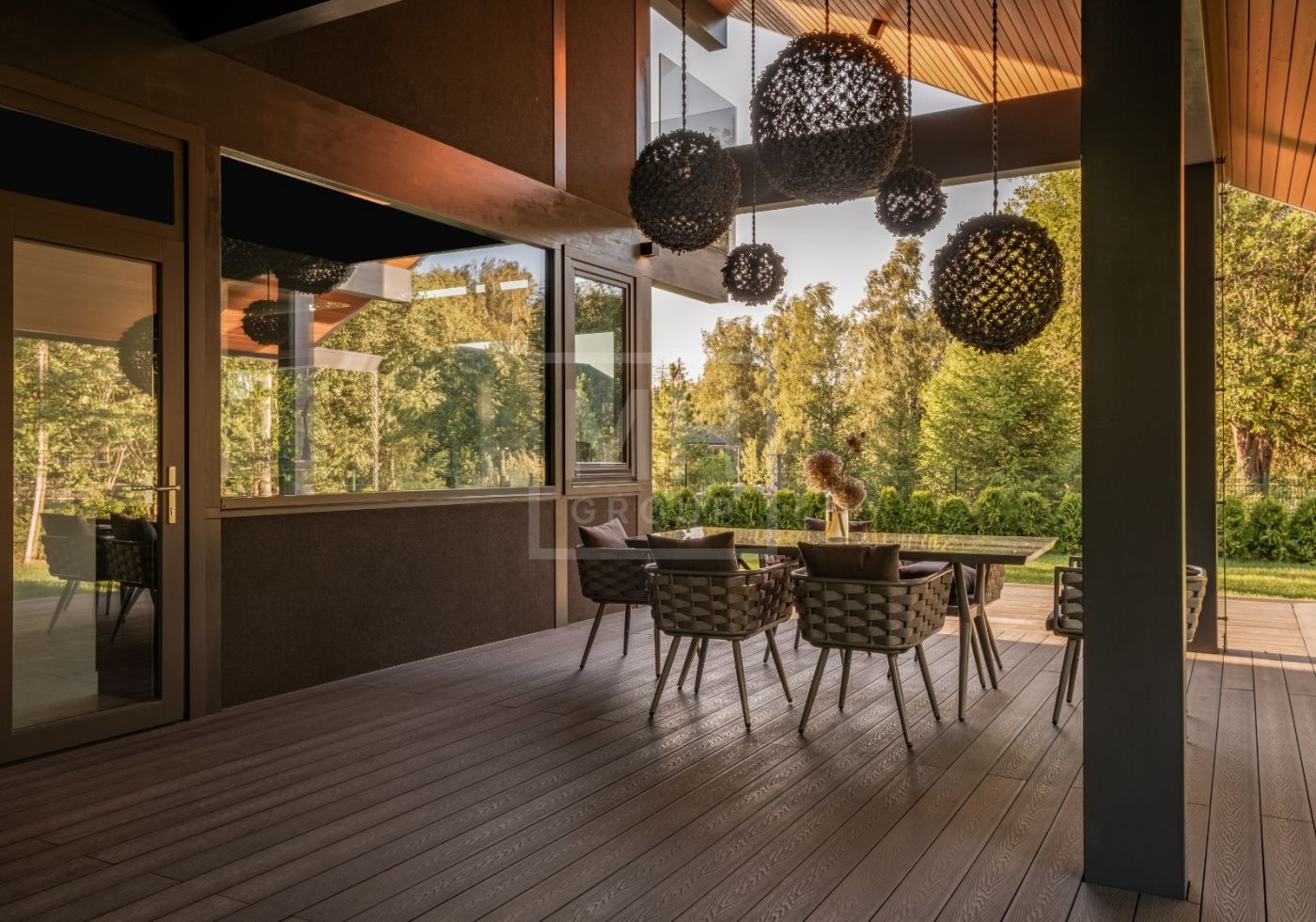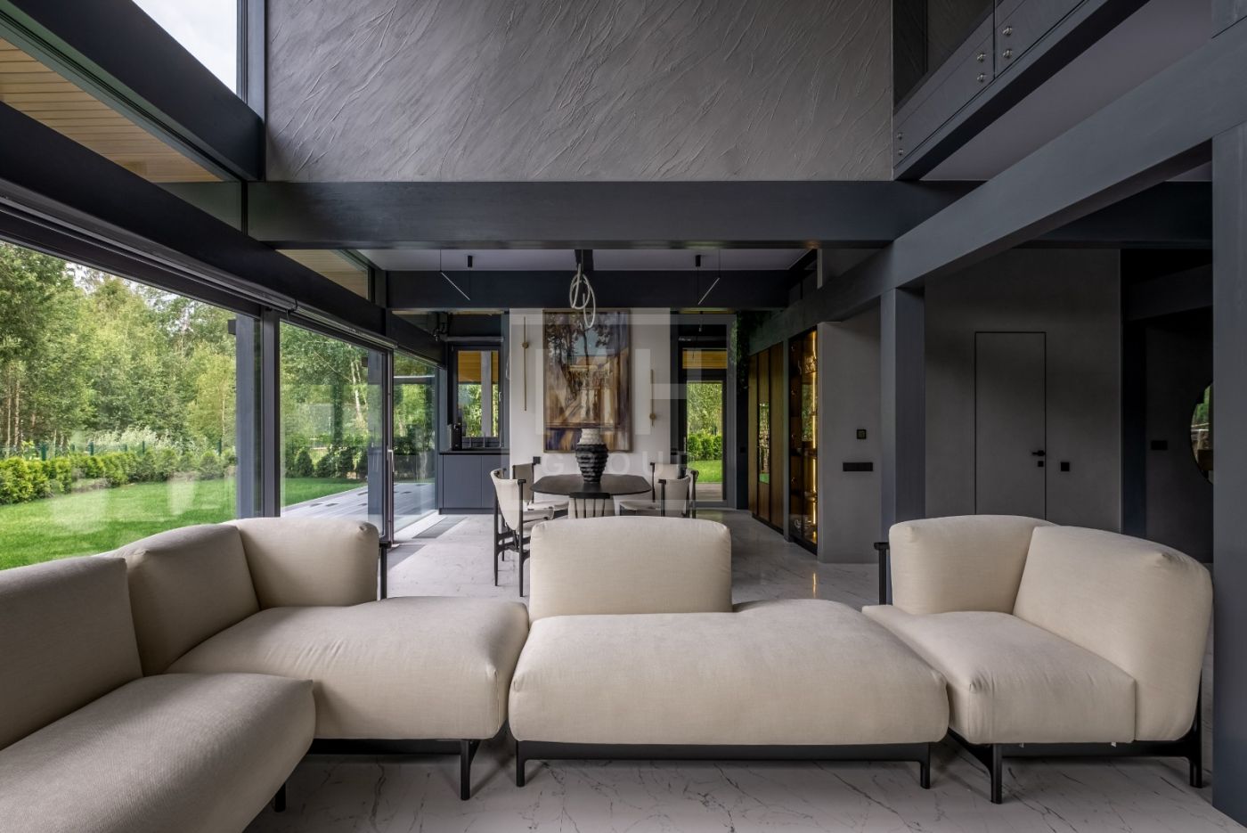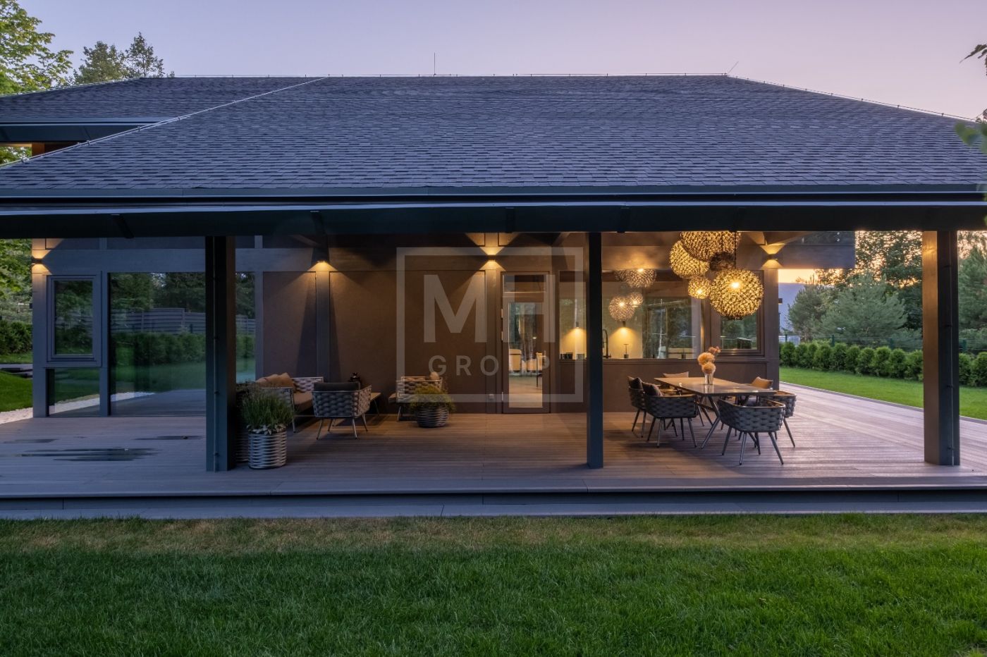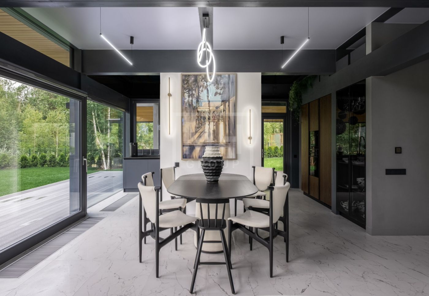 Удобная планировка с качественной внутренней отделкой. Панорамное остекление, второй свет, камин. Интересный современный дизайн интерьера и экстерьера.