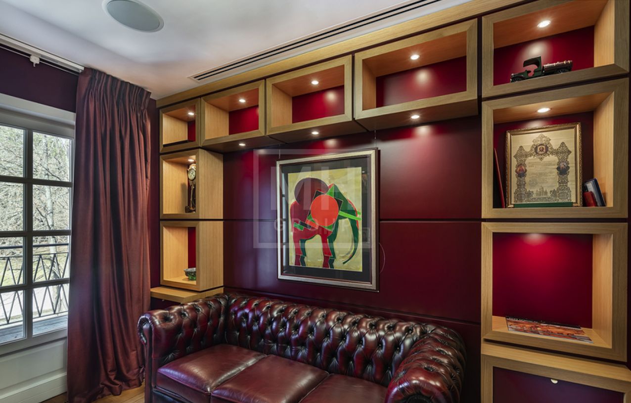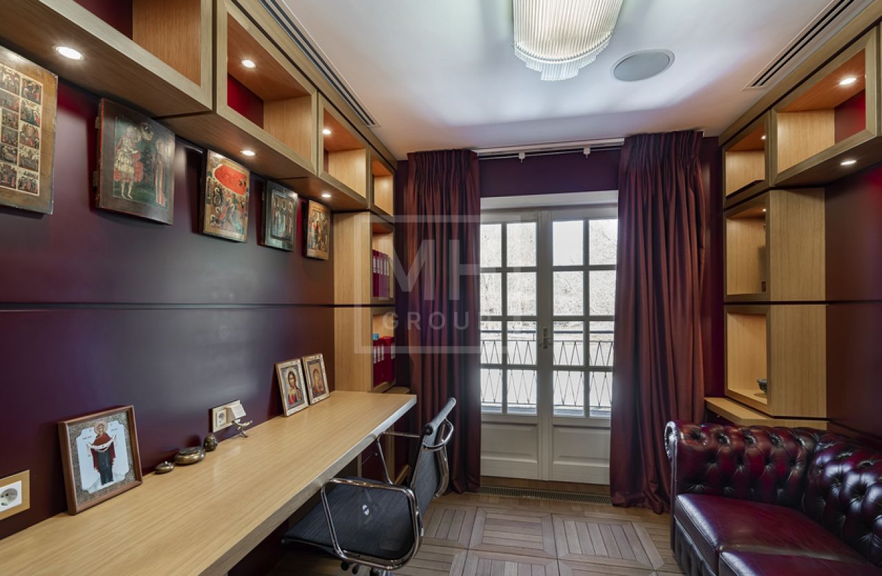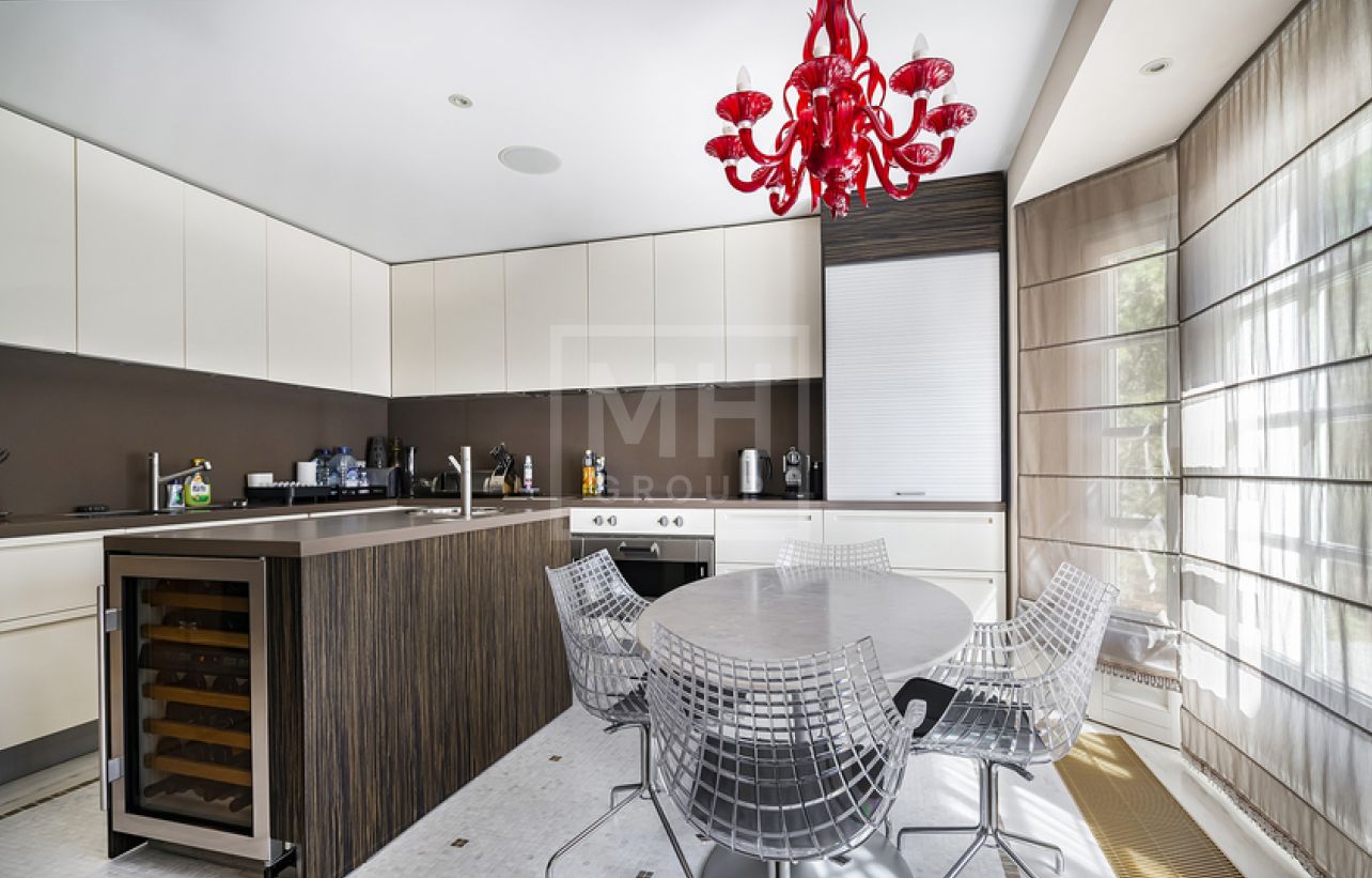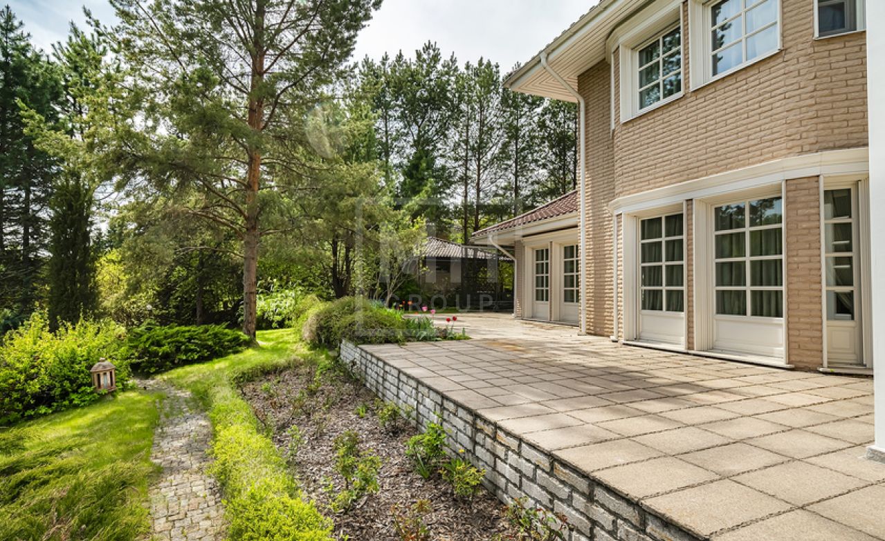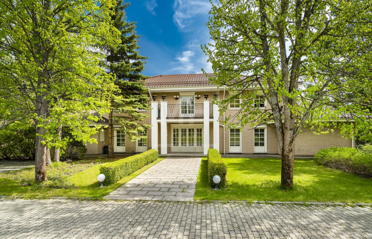В закрытом, строго охраняемый приватный поселок на 8 домов с единой архитектурной стилистикой предлагается на продажу дом с авторским ремонтом на живописном участке. Южно-европейский стиль дома подчеркивает светлый фасад, черепичная крыша и наличие колон. Из основных помещений дома открывается вид на рельефный, ухоженный и шикарный участок,В доме предусмотрено все для комфортной загородной жизни - просторная гостиная с камином, кухня с современной техникой, светлая столовая с уютной кофейной зоной и выходом в сад. 4 спальни, ванные комнаты, кабинет и большая библиотека с мягкой диванной группой..