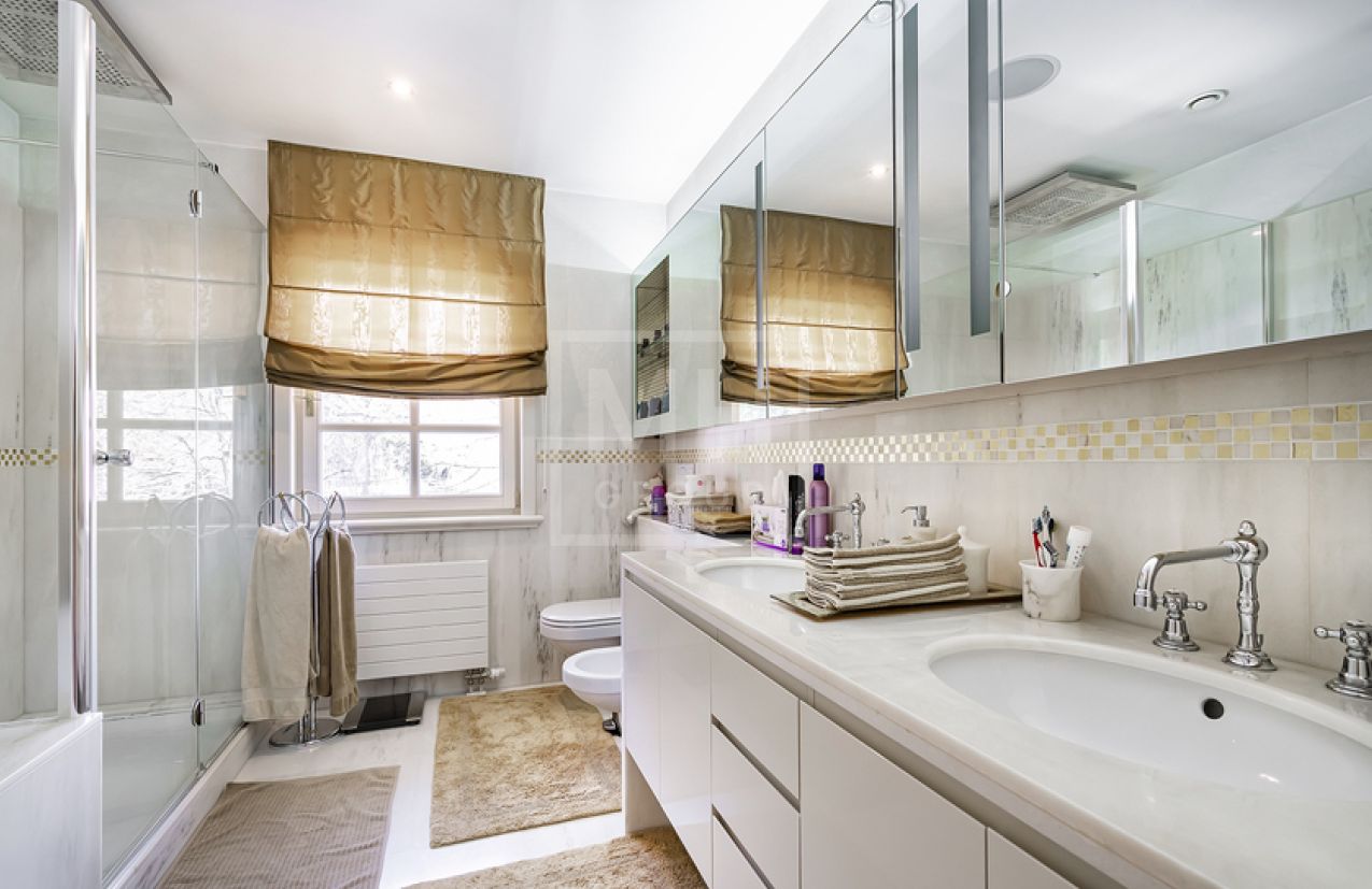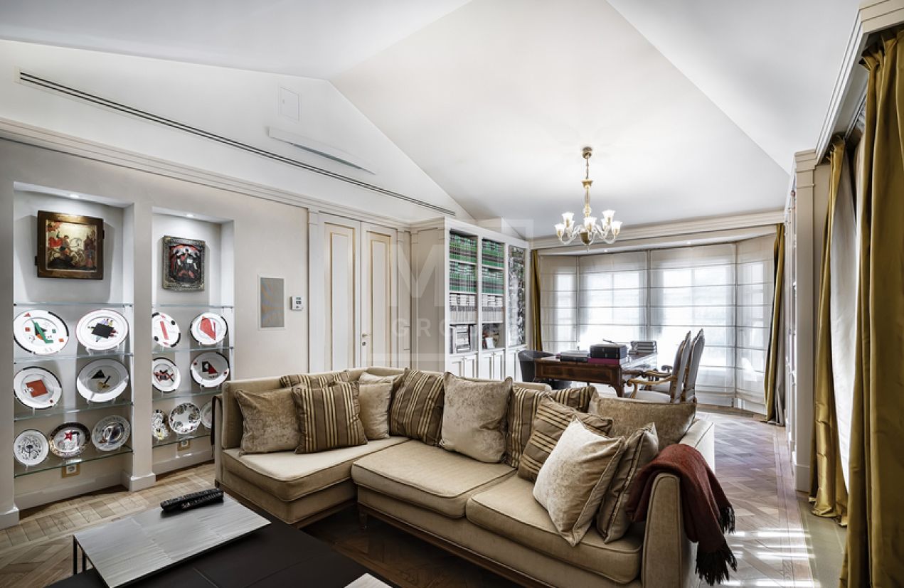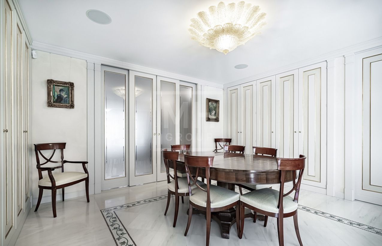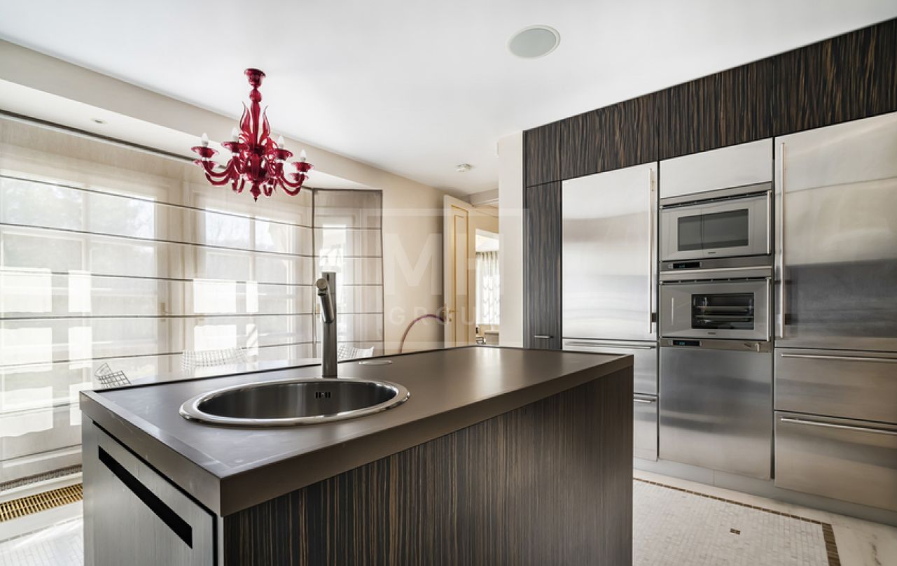 В закрытом, строго охраняемый приватный поселок на 8 домов с единой архитектурной стилистикой предлагается на продажу дом с авторским ремонтом на живописном участке. Южно-европейский стиль дома подчеркивает светлый фасад, черепичная крыша и наличие колон. Из основных помещений дома открывается вид на рельефный, ухоженный и шикарный участок,В доме предусмотрено все для комфортной загородной жизни - просторная гостиная с камином, кухня с современной техникой, светлая столовая с уютной кофейной зоной и выходом в сад. 4 спальни, ванные комнаты, кабинет и большая библиотека с мягкой диванной группой..