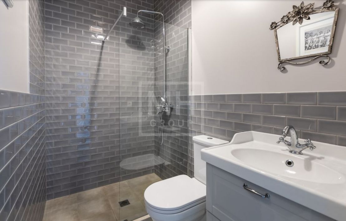 Этаж 1: Прихожая, гардеробная, светлая гостиная с высокими окнами и выходом на террасу, объединенная с кухней и столовой, спальня с с/у и гардеробной, гостевая спальня, с/у, постирочная, прихожая с выходом на паркинг