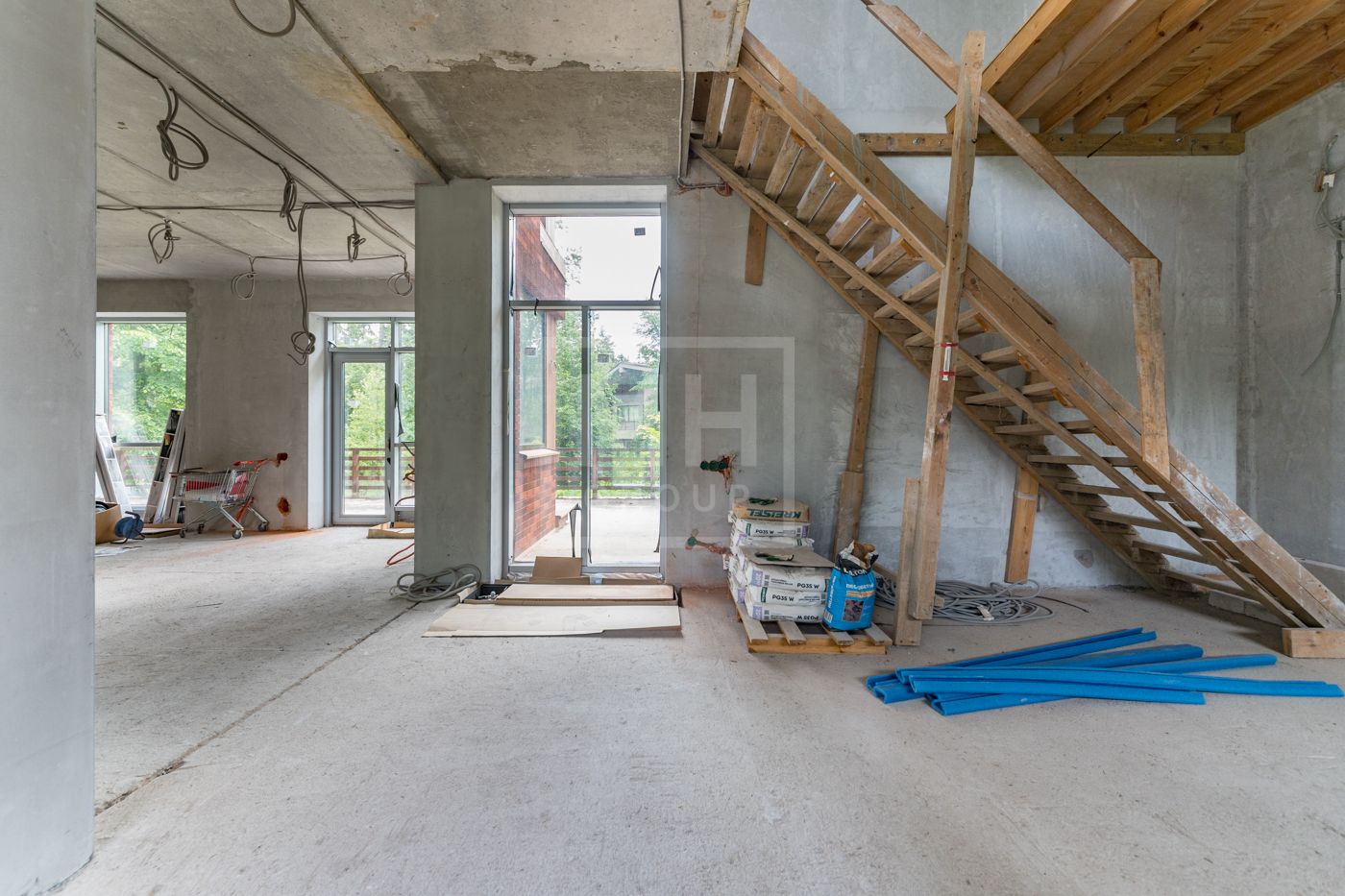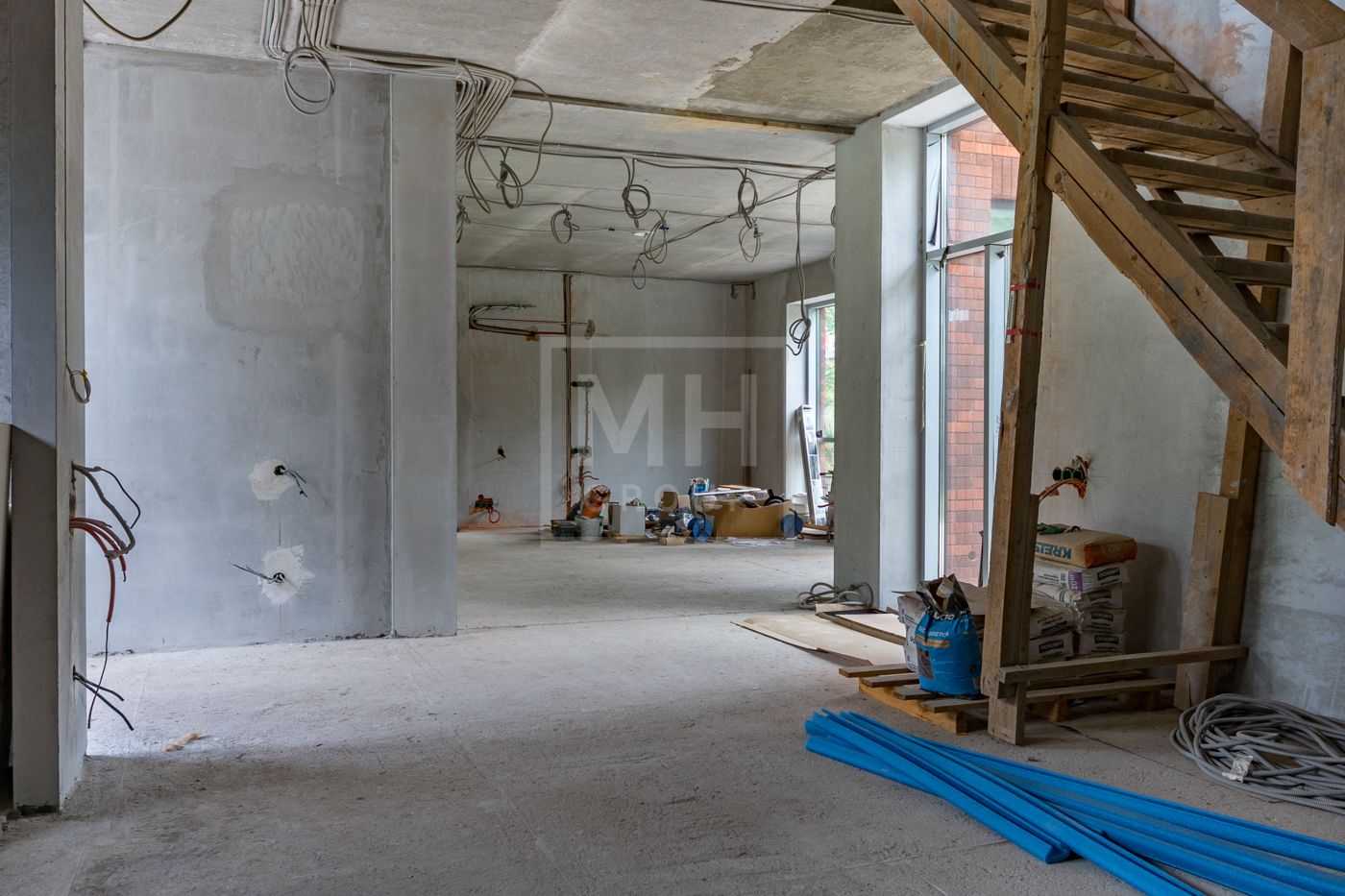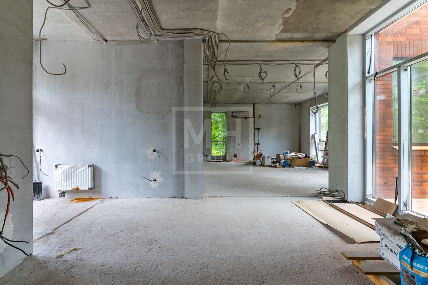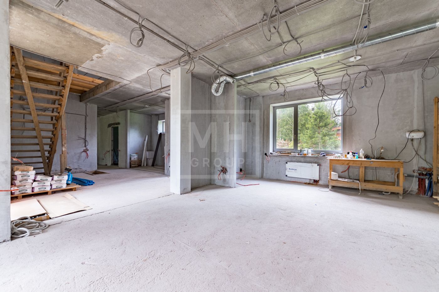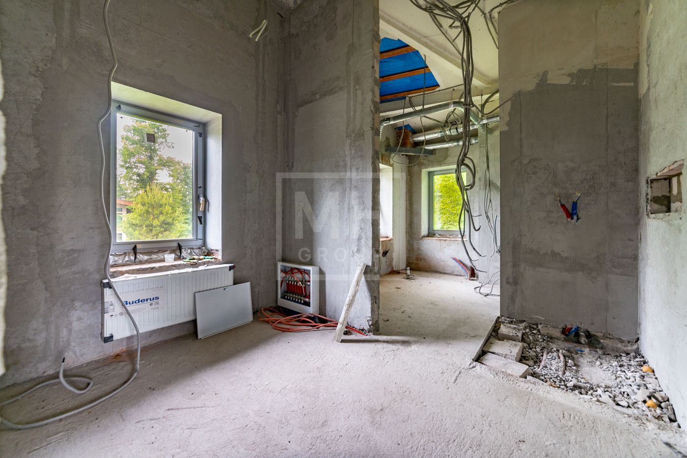 Дом приобретался у застройщика, в дальнейшем был сделан проект, в соответствии с которым выстроены перегородки, разведены и подключены сети (водоснабжение, канализация, электричество, газ, кондиционирование, слаботочные сети). Заменены окна на алюминиевые.