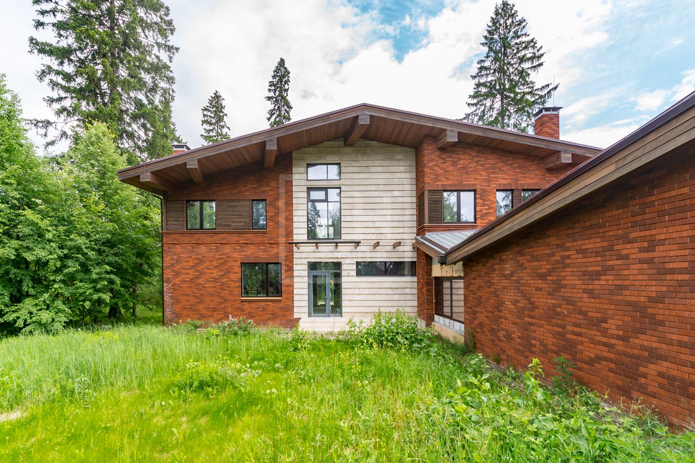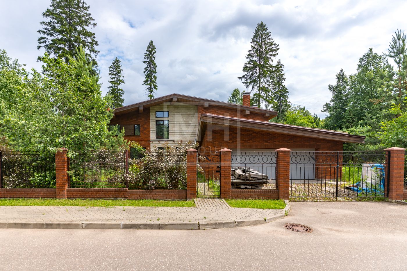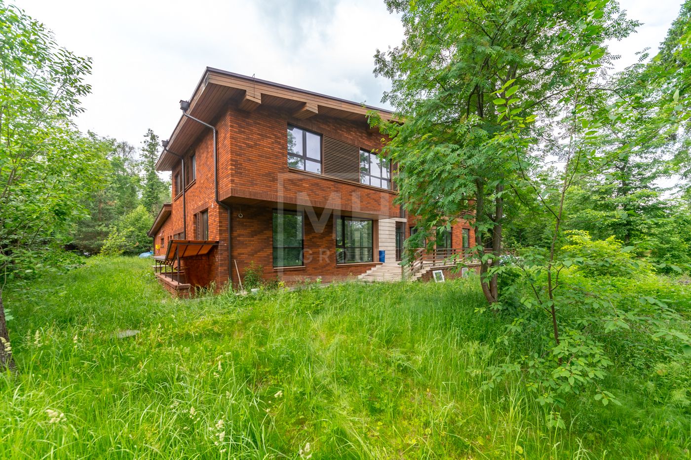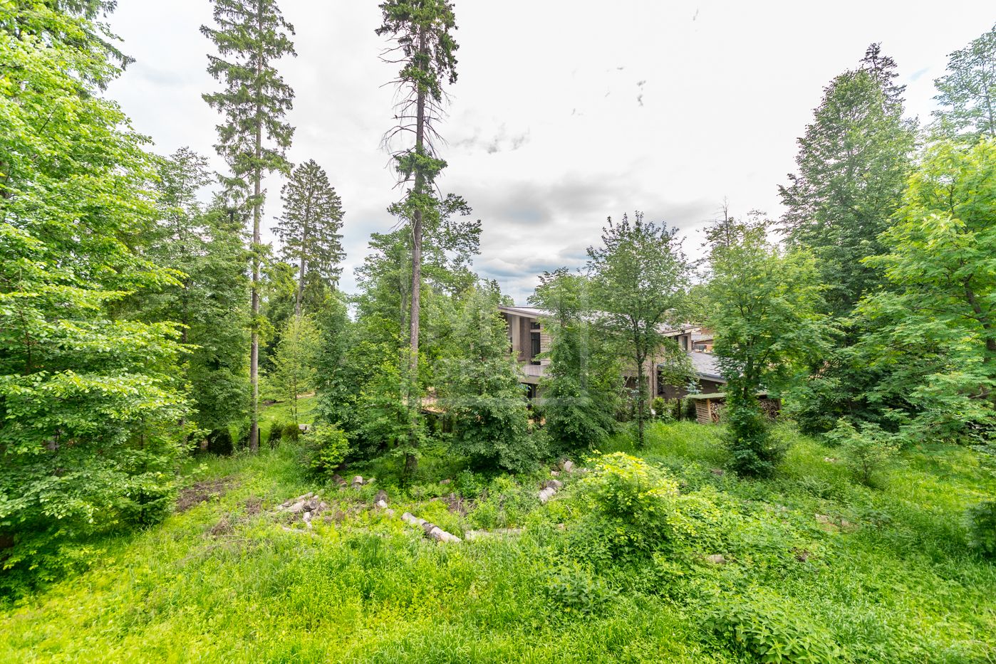 Дом площадью 630 м2 с отделкой White box на рельефном участке 28 соток с крупными лесными деревьями.Расположен в центральной части поселка.
