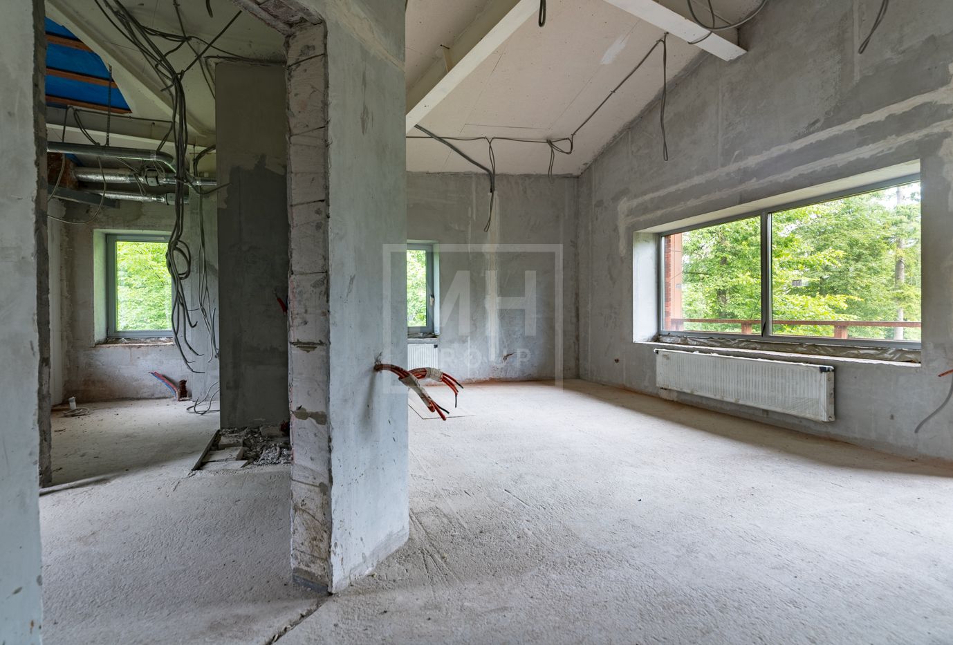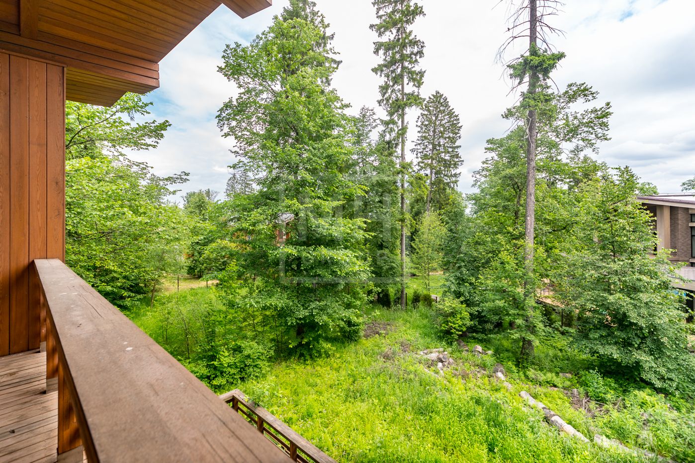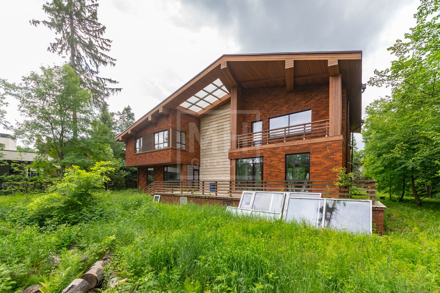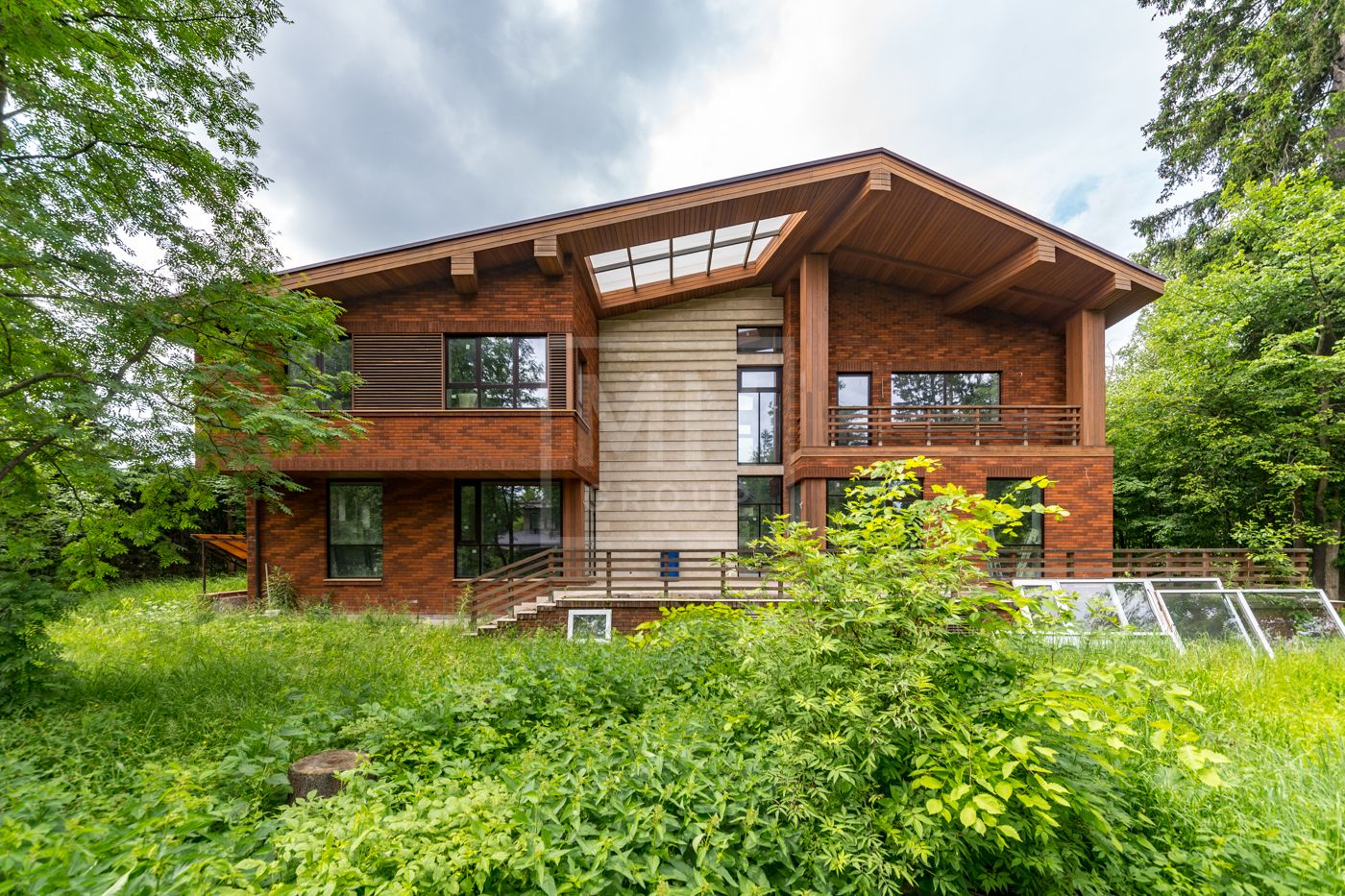 Дом площадью 630 м2 с отделкой White box на рельефном участке 28 соток с крупными лесными деревьями.Расположен в центральной части поселка.