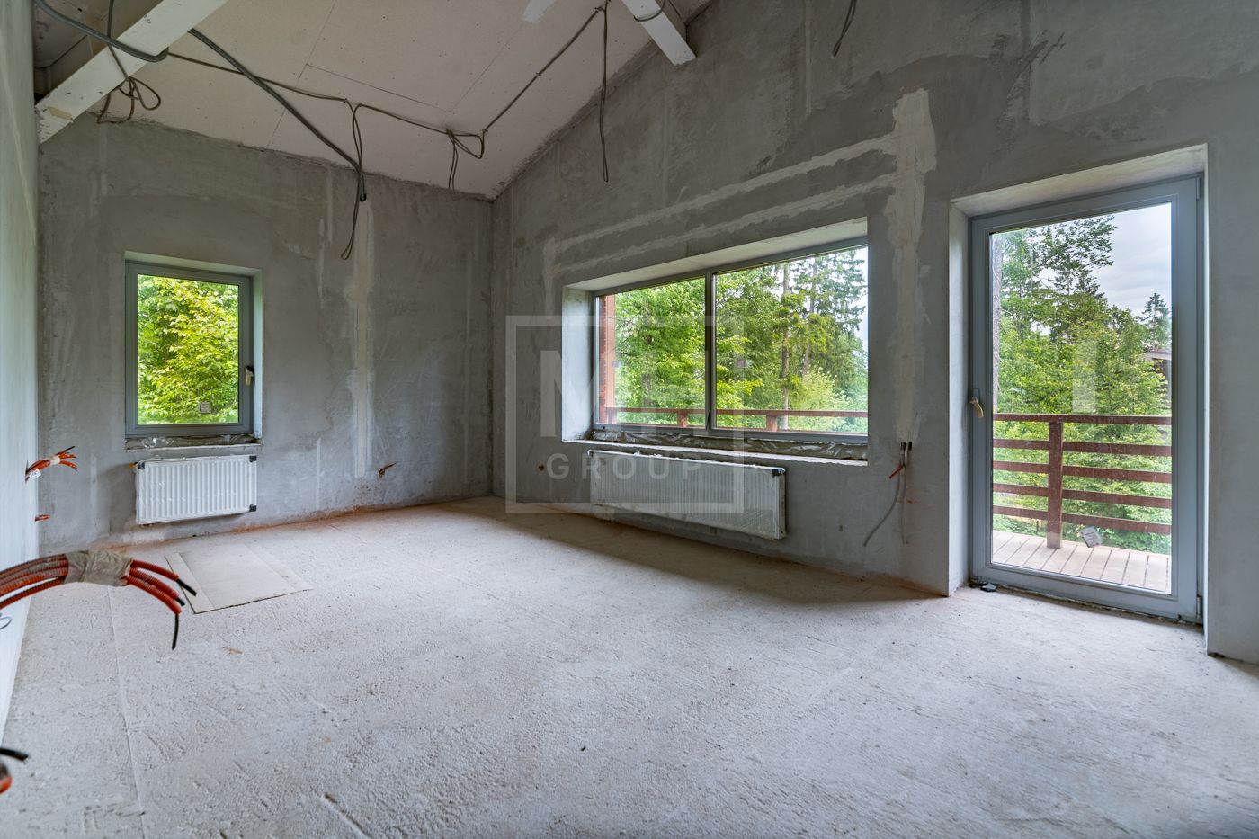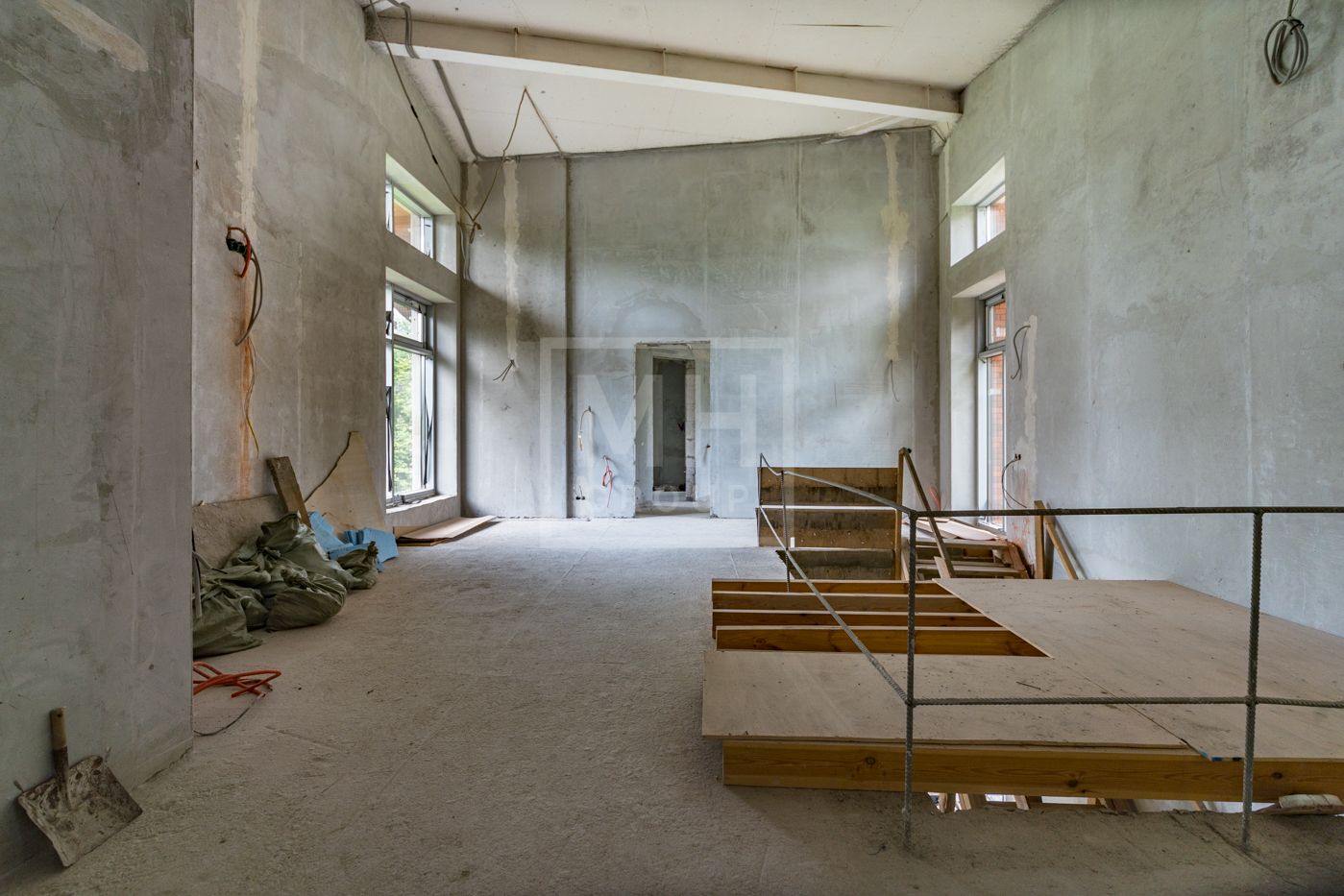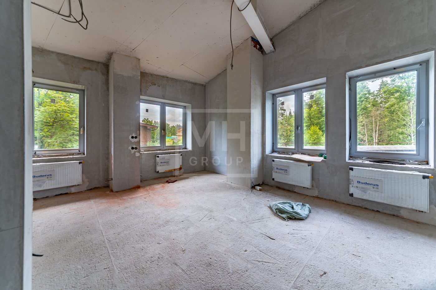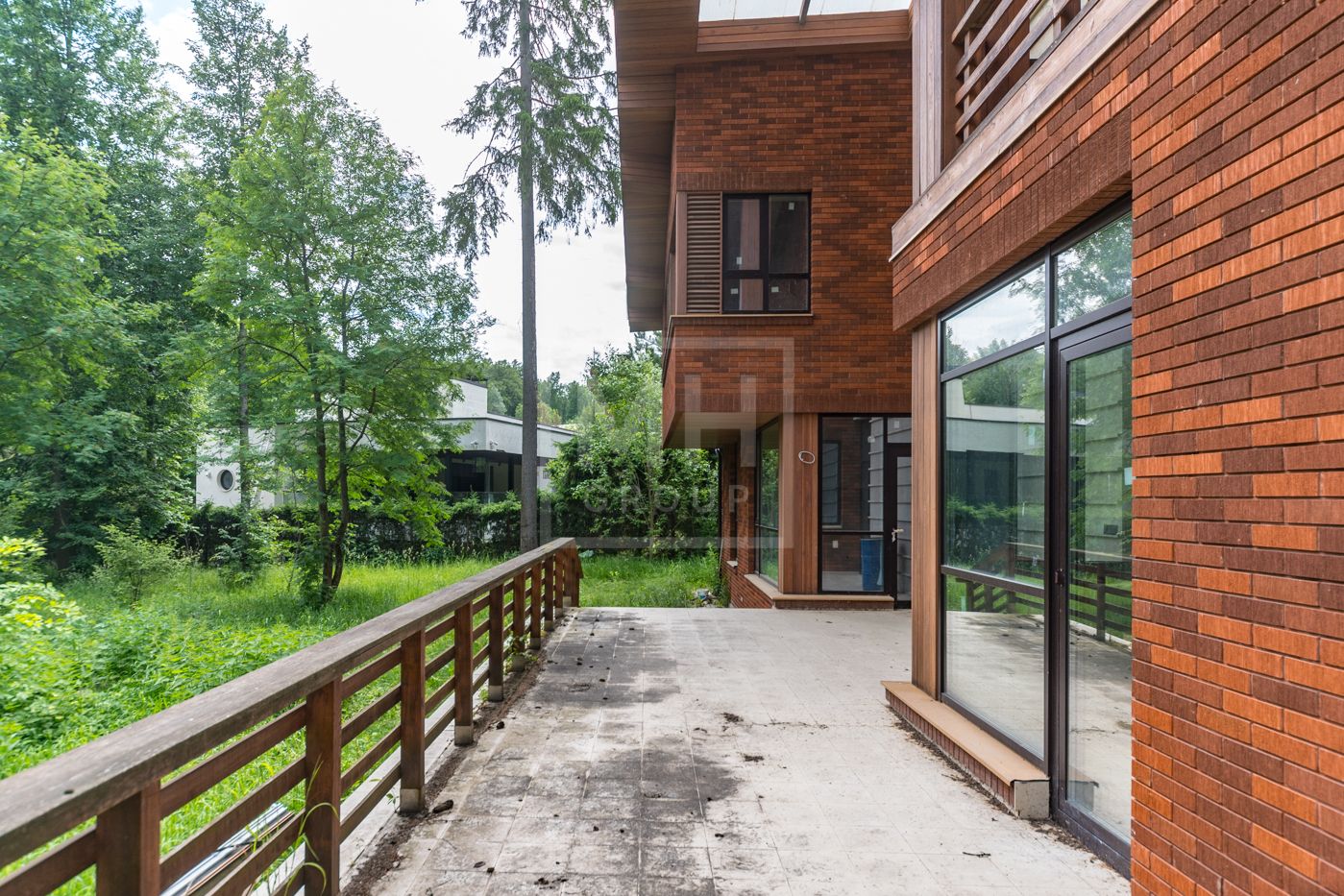 Дом площадью 630 м2 с отделкой White box на рельефном участке 28 соток с крупными лесными деревьями.Расположен в центральной части поселка.