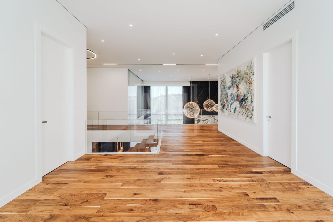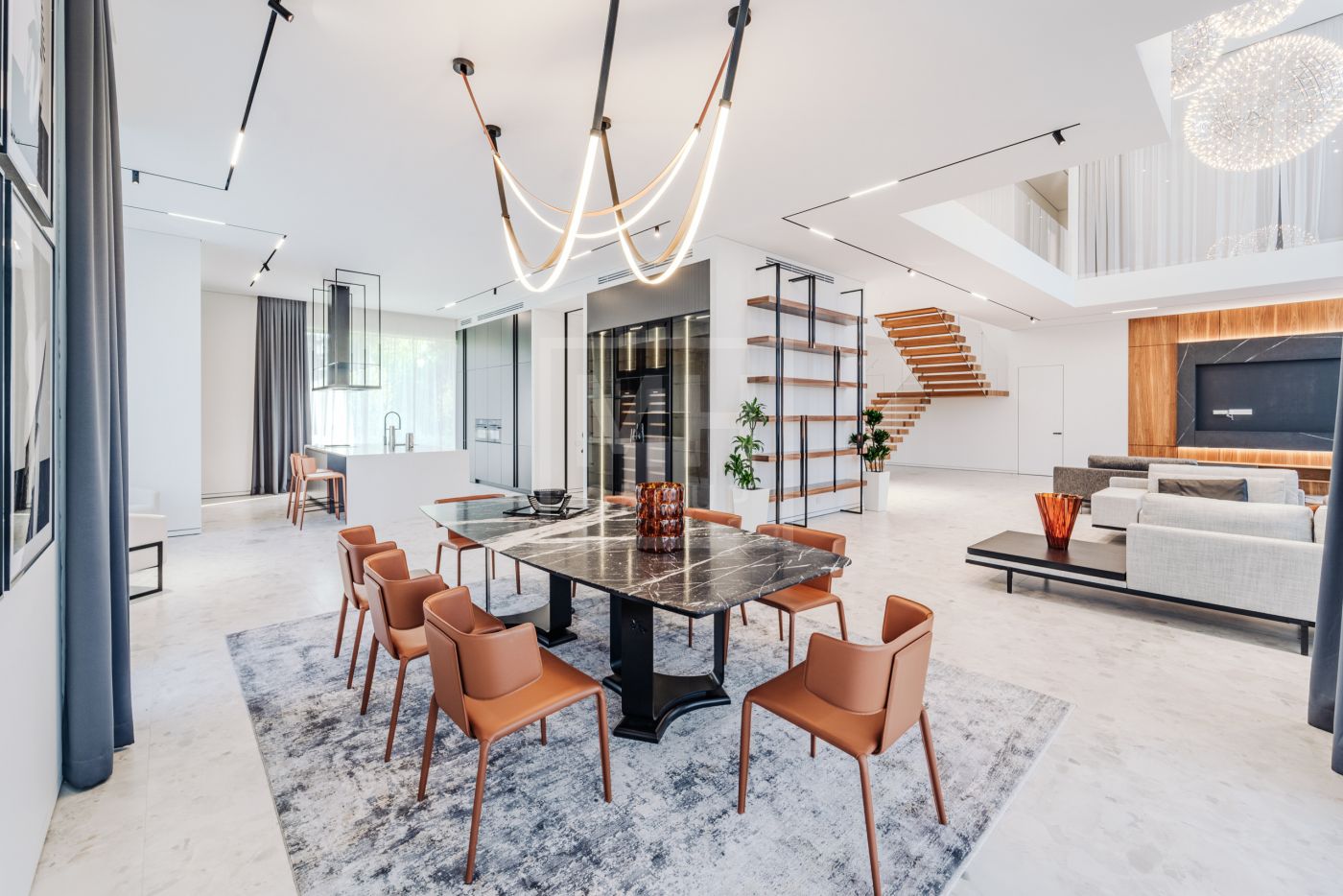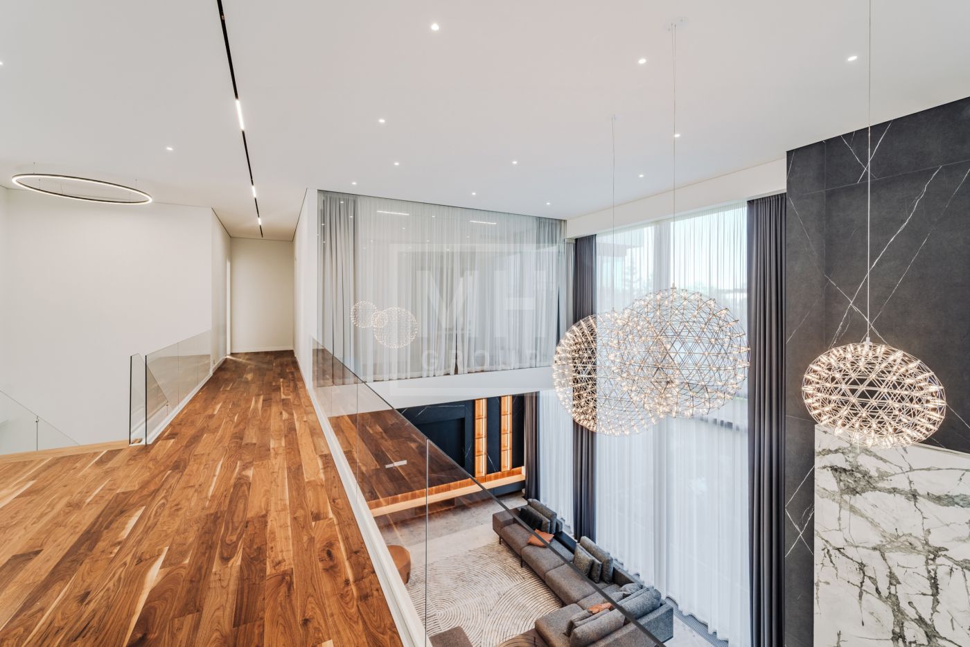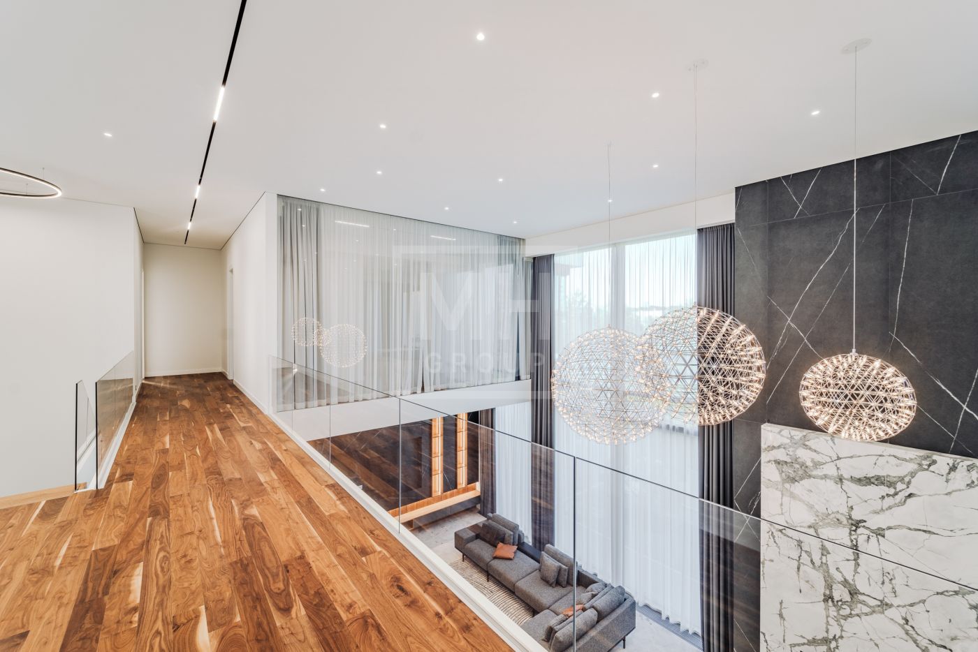 Этаж 2: Просторная мастер-спальня с санузлом, гардеробной и террасой, кабинет, три спальни с санузлами, гардеробными и террасами, гостевая спальня с санузлом.