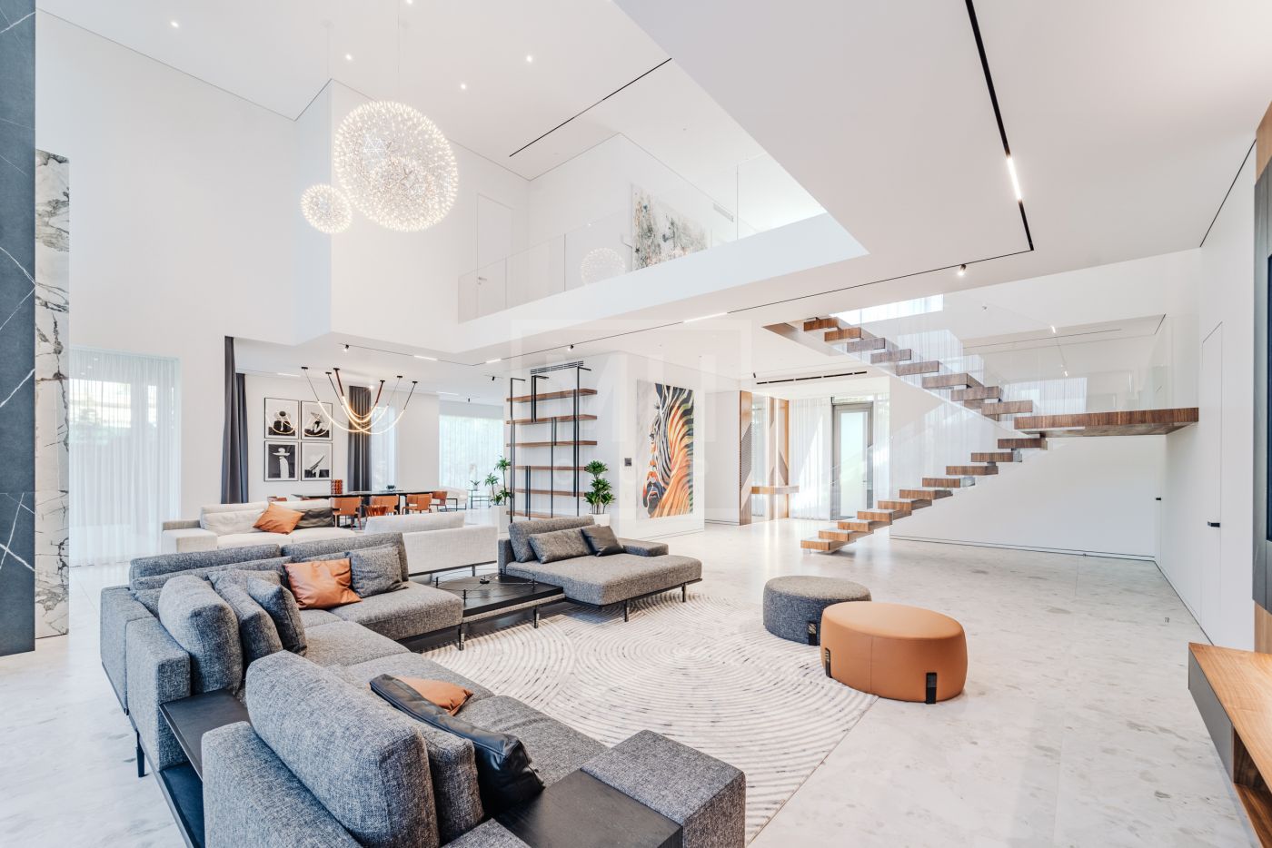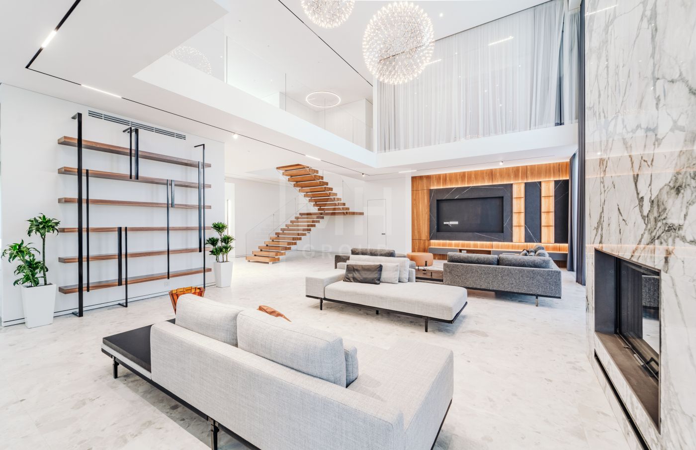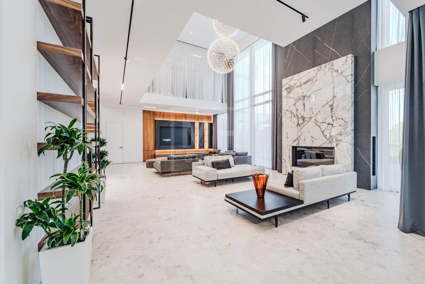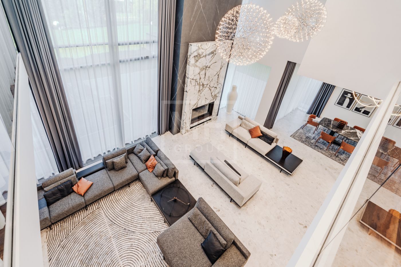 Этаж 2: Просторная мастер-спальня с санузлом, гардеробной и террасой, кабинет, три спальни с санузлами, гардеробными и террасами, гостевая спальня с санузлом.