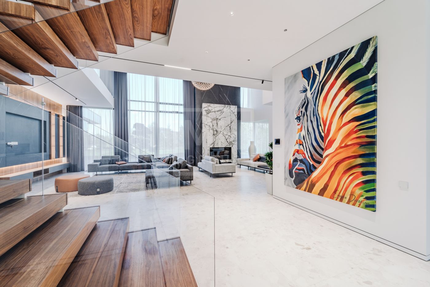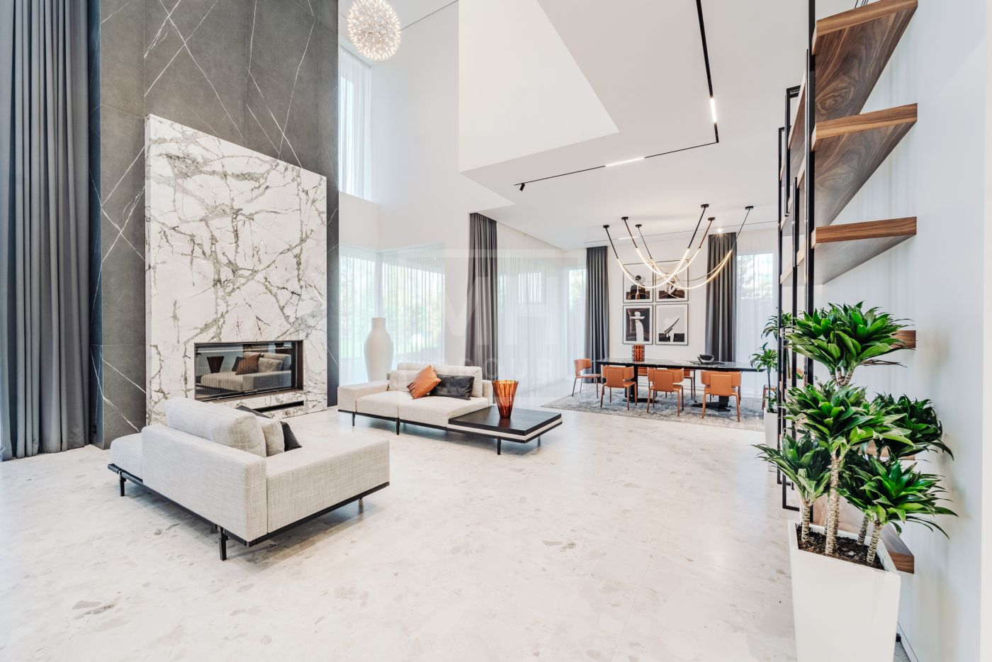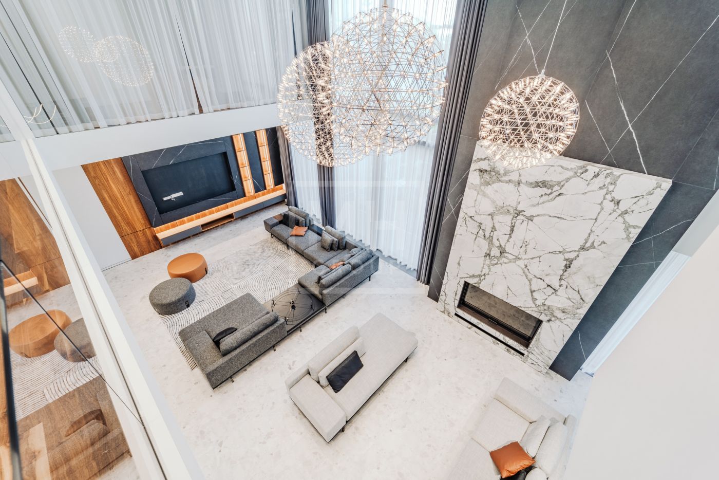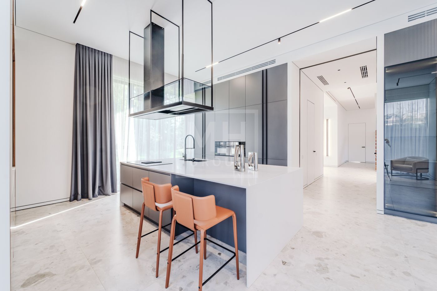 Этаж 2: Просторная мастер-спальня с санузлом, гардеробной и террасой, кабинет, три спальни с санузлами, гардеробными и террасами, гостевая спальня с санузлом.