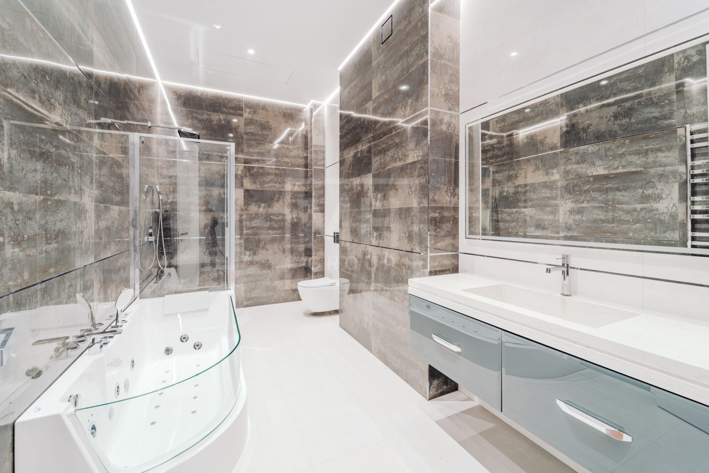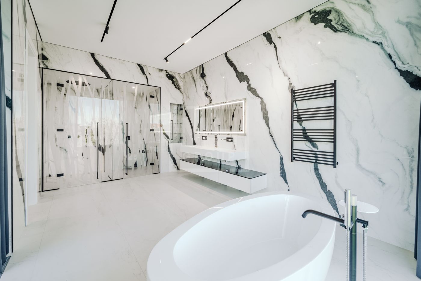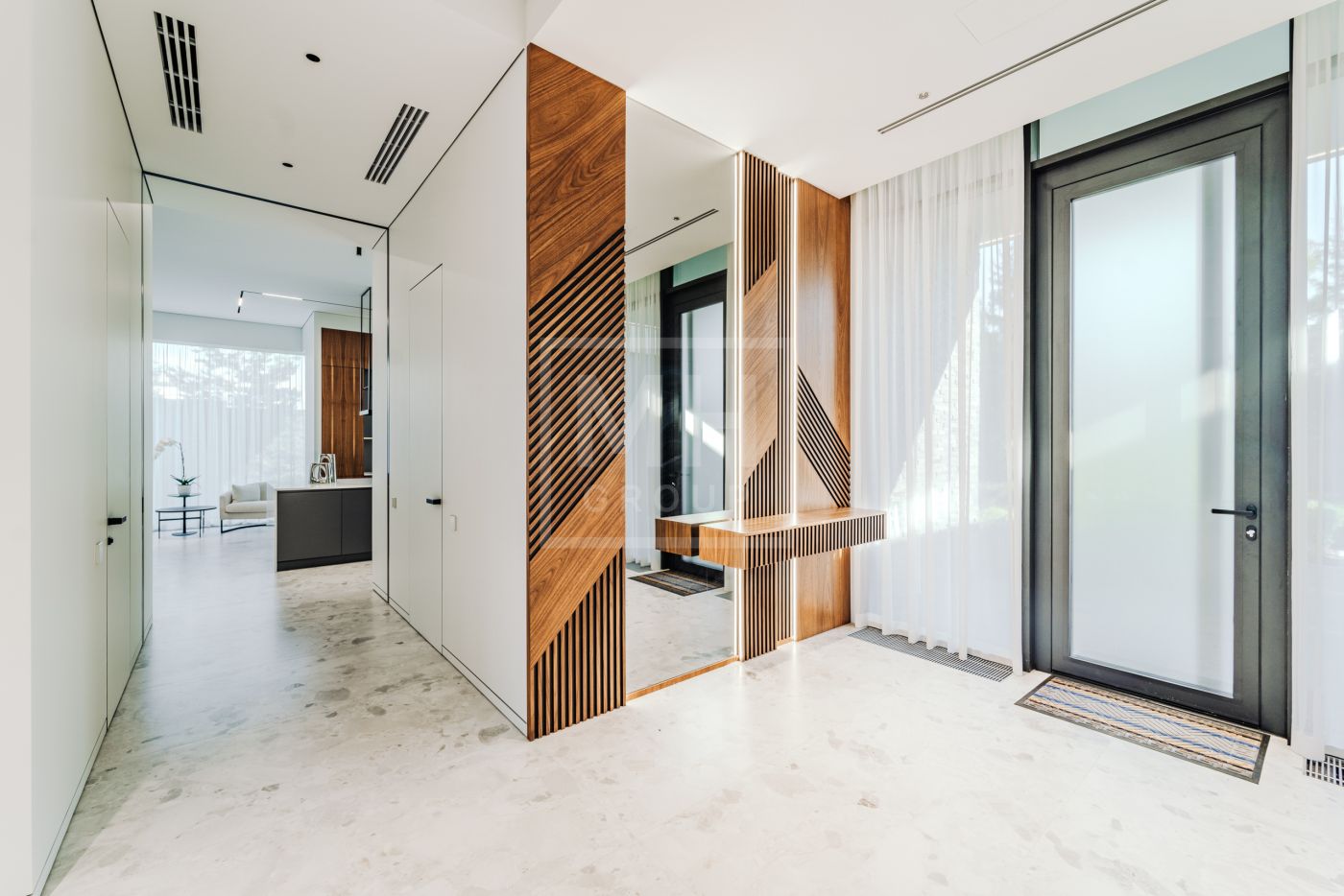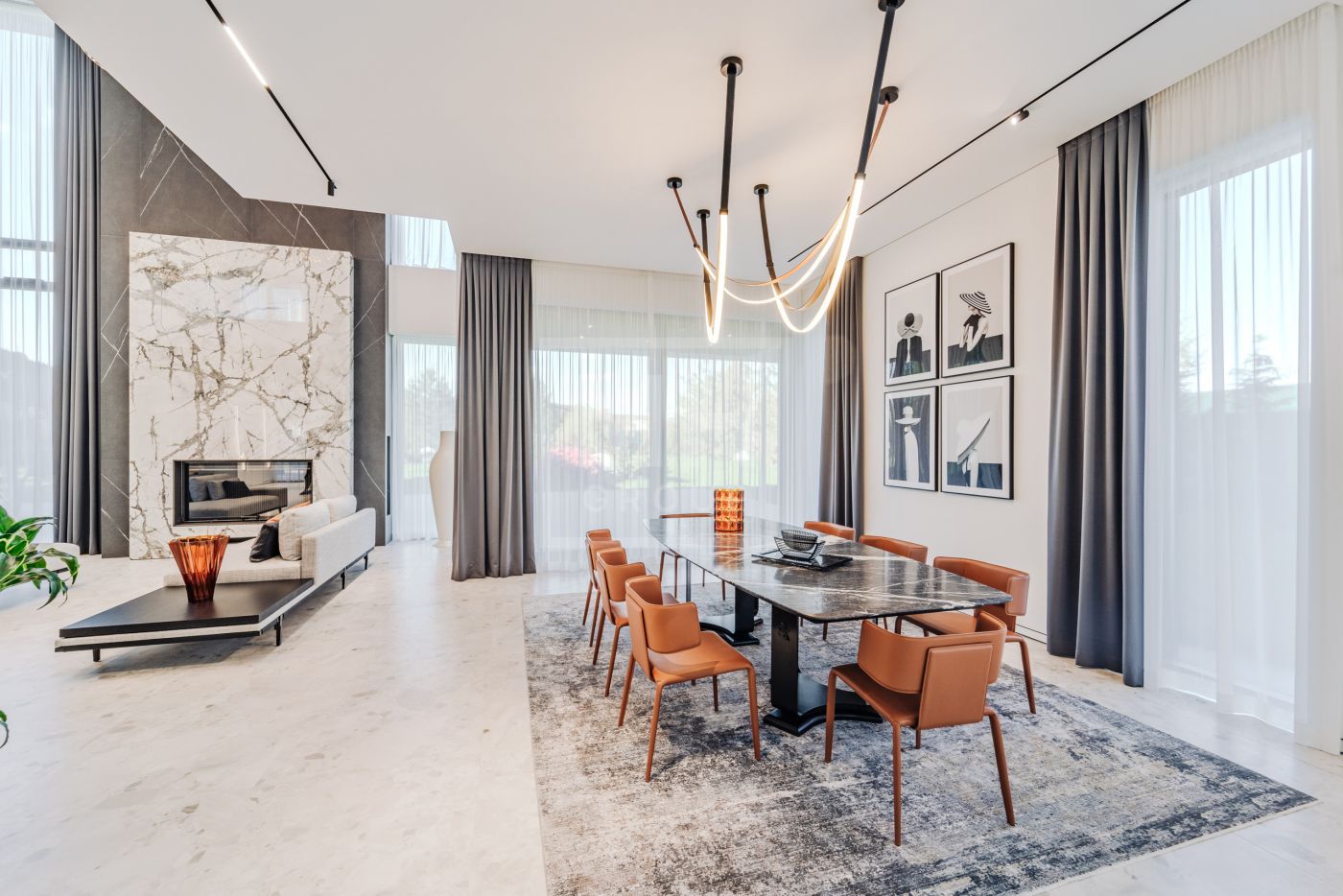 Этаж 2: Просторная мастер-спальня с санузлом, гардеробной и террасой, кабинет, три спальни с санузлами, гардеробными и террасами, гостевая спальня с санузлом.