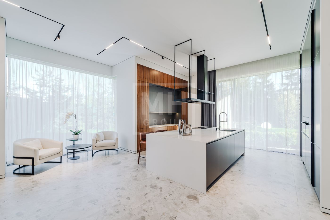 Коттедж по авторскому проекту, расположенный у двух озер в лучшем поселке на Новорижском шоссе.Внутренняя отделка выполнена по дизайнерскому проекту с применением высококачественных материалов. Интерьер оформлен в современном стиле в светлых тонах и дополнен акцентными деревянными элементами.