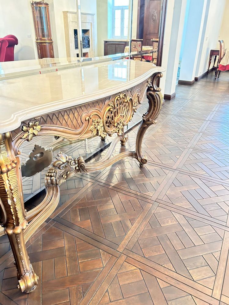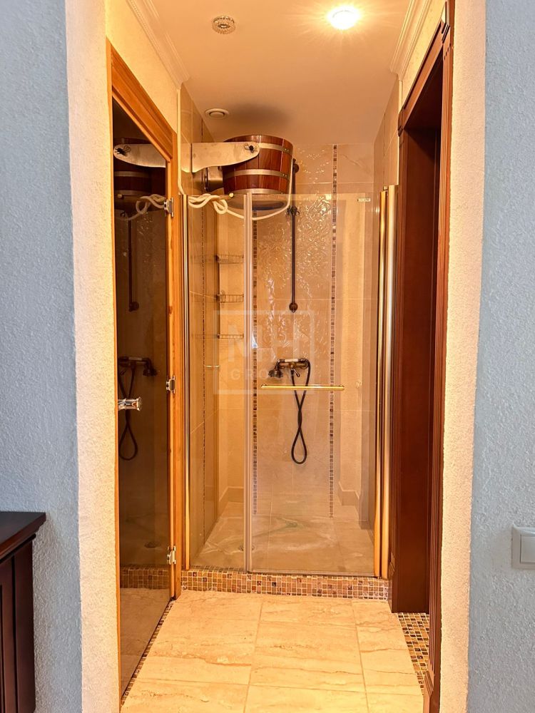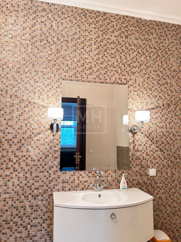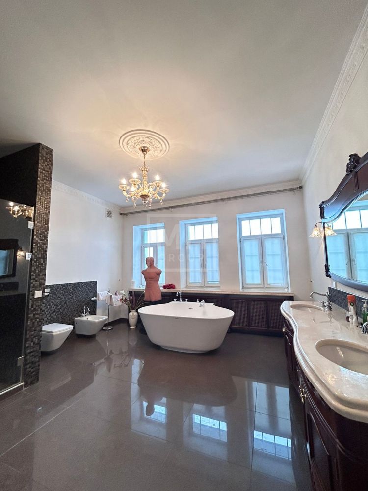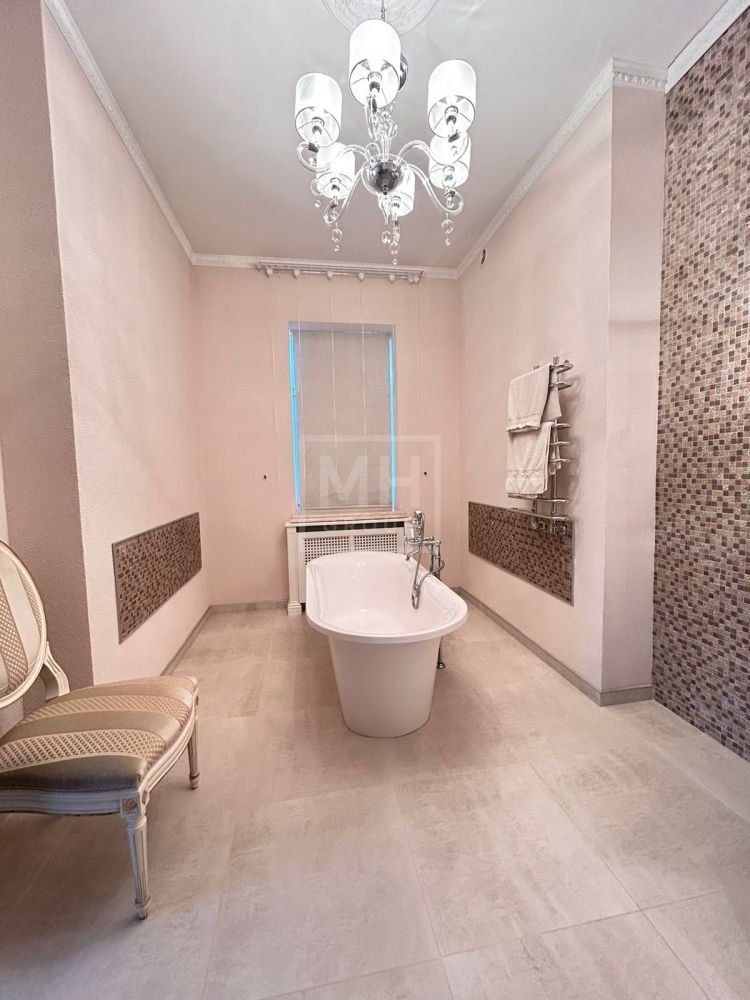Установлена итальянская кухня, оснащенная немецкой бытовой техникой. Ванные комнаты оборудованы итальянской сантехникой. Пол выполнен из массива дерева и натурального камня.