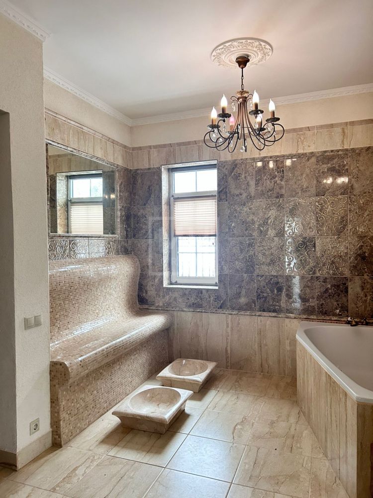 Уютный особняк площадью - 517 м2, в классическом стиле, расположен в премиальном КП "Гринфилд".Внутри дома 3 просторных спальни со своими гардеробными и санузлами, 120-метровая кухня-гостиная, с камином в мраморной облицовке.
