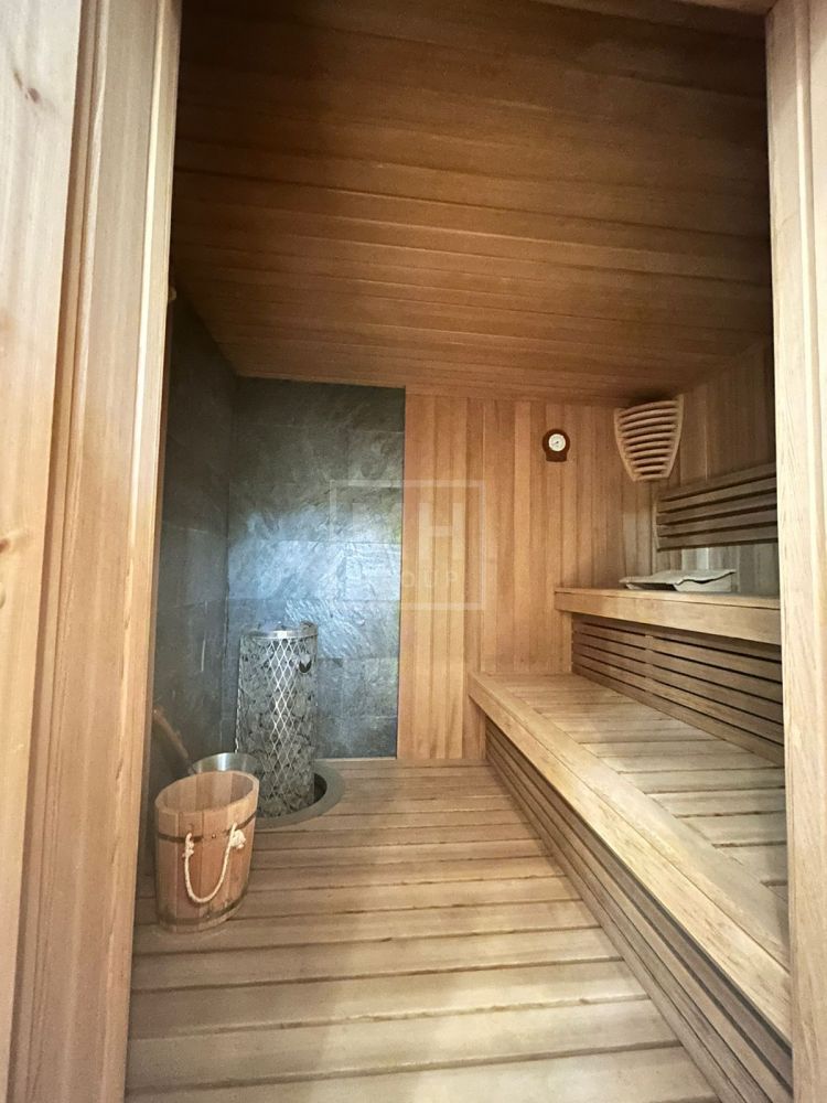 На участке отдельно расположен гостевой дом, площадью 300 м2, с тремя спальнями, прекрасной SPA зоной с финской сауной и гаражом на два машиноместа.